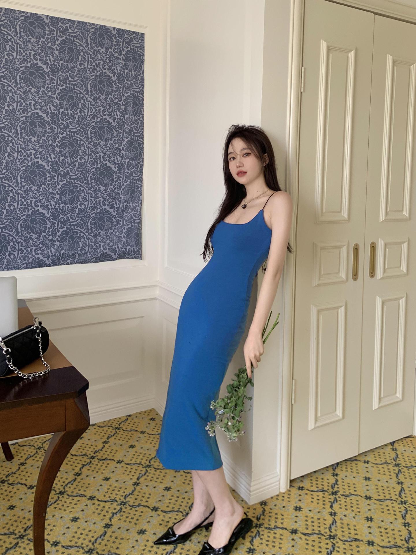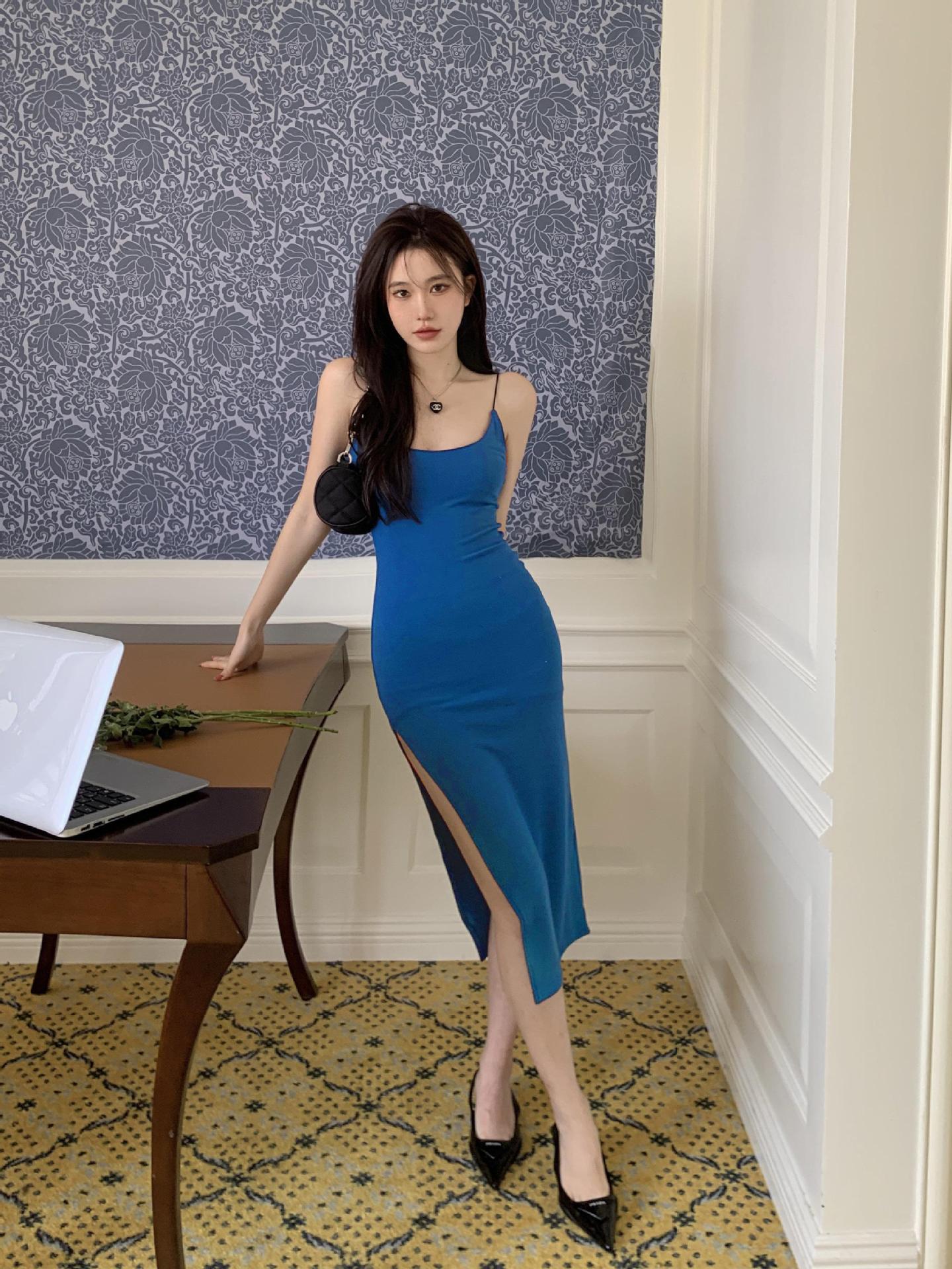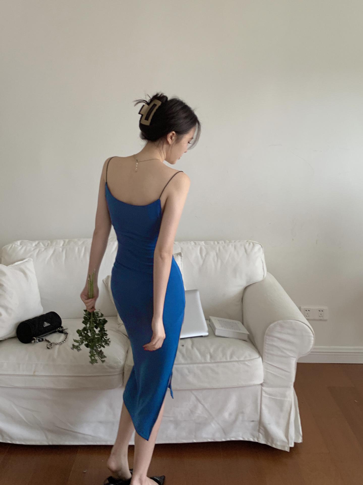 2025 Nuevo Vestido de Tirantes con Abertura para Chica Caliente Puro Deseo para Mujer Verano Falda Midi Negra Sexy Falda de Cadera