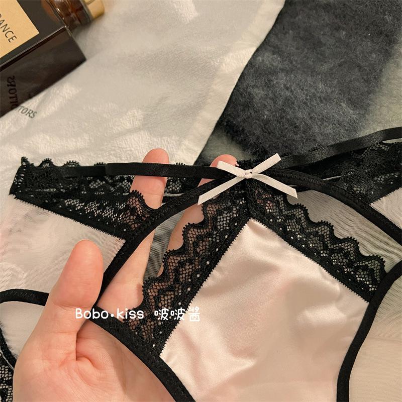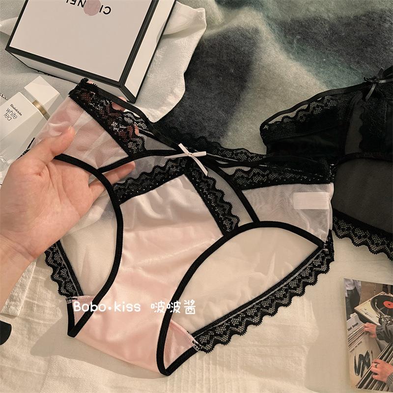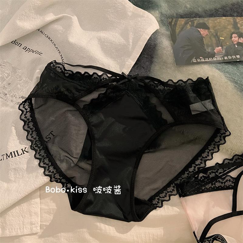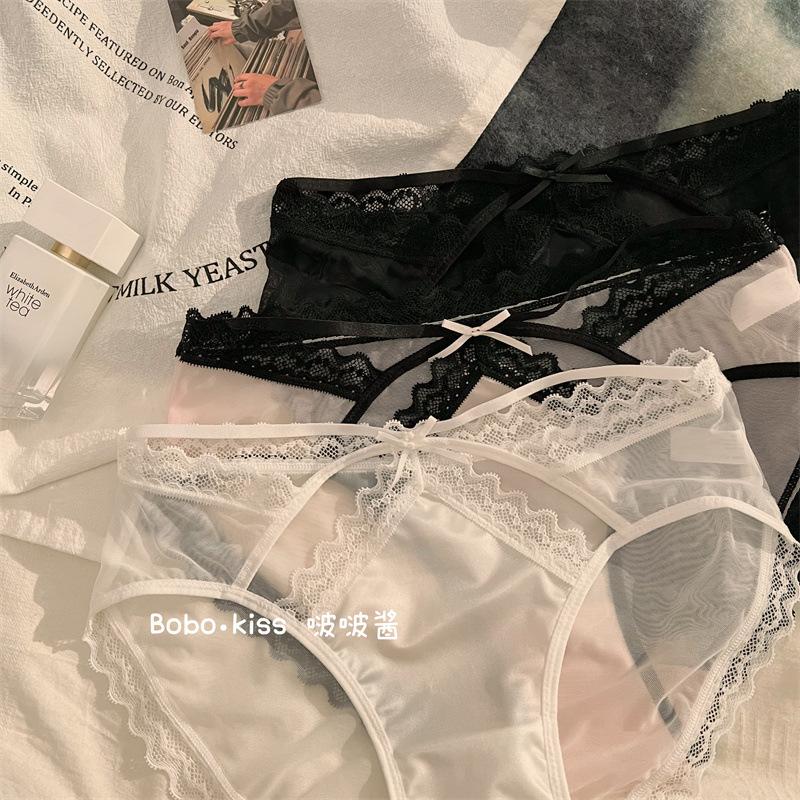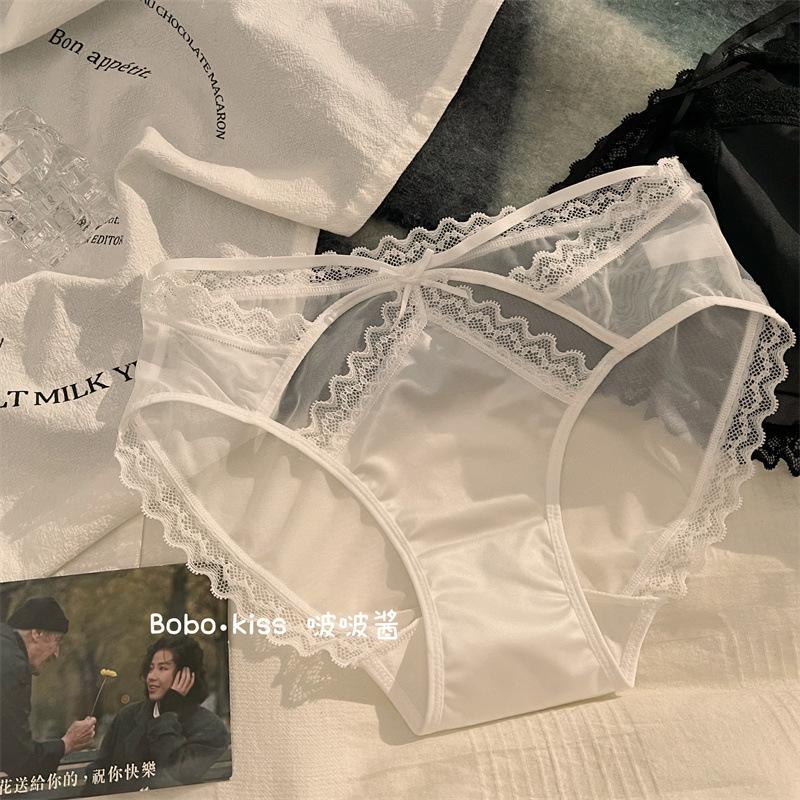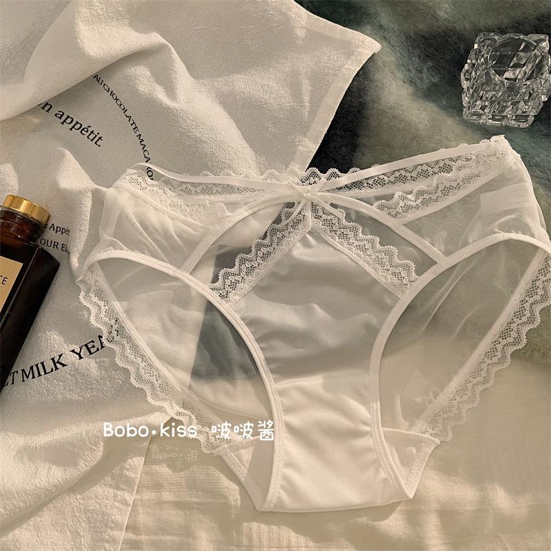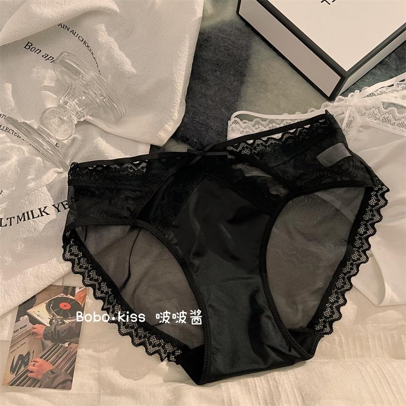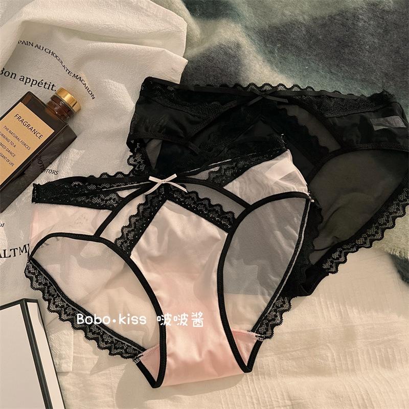 Ropa interior de encaje francés elegante, sexy, estilo puro deseo, para mujer, sin dejar rastro, seda de hielo, entrepierna de algodón fino, calzoncillos para niña (lote)