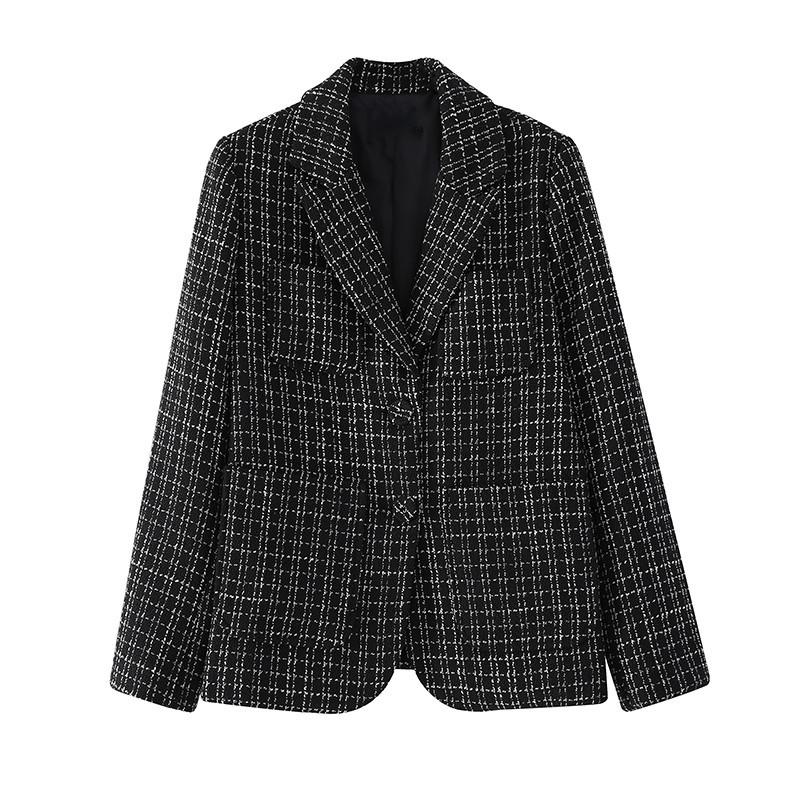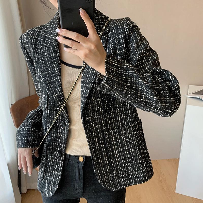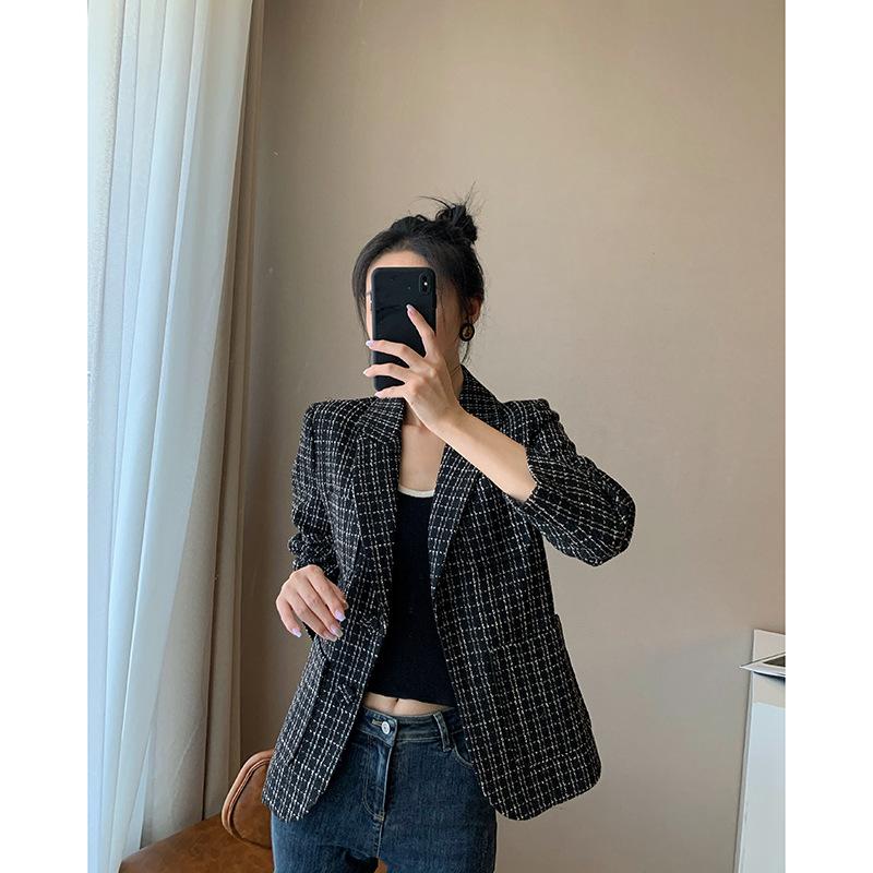 Chaqueta de traje a cuadros de tweed para mujer, corta, estilo coreano, estilo británico, popular en Internet, para primavera y otoño.