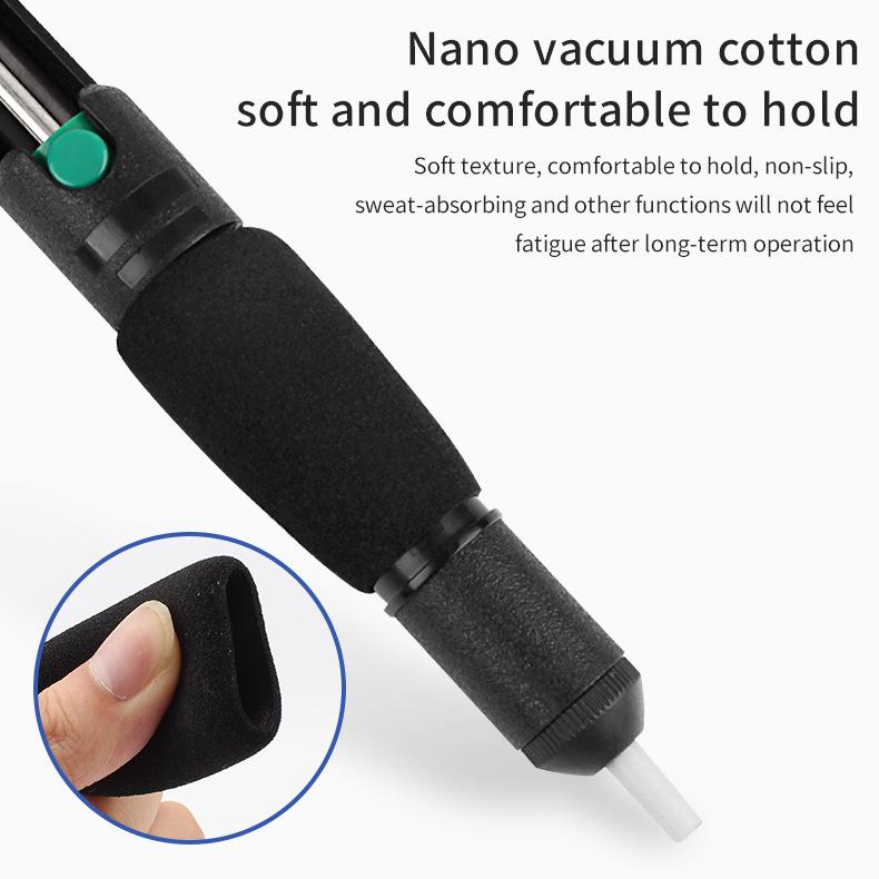 Recordatorio cálido: Clientes que compren al por mayor, tengan en cuenta que debido a que esta bomba desoldadora tiene una funda de esponja, parte de la esponja puede deformarse durante el transporte. Si esto le molesta, por favor no compre (o compre la que viene con embalaje).