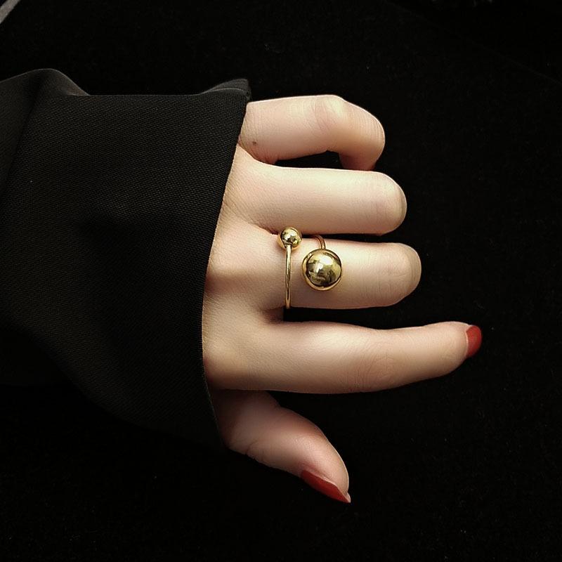 Anillo de Mujer de Acero Inoxidable con Bola de Apertura Ajustable Anillo de Mujer de Acero de Titanio Anillo Dorado Simple que Combina con Todo Anillo de Moda