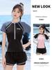 Traje de baño nuevo para mujer Estilo caliente Estilo deportivo casual Traje de baño conservador de manga corta Traje de baño estudiantil que cubre el vientre y adelgaza Traje de baño de vacaciones