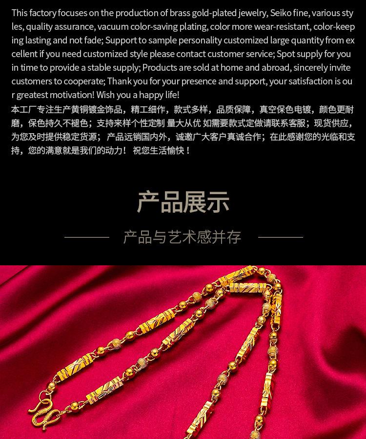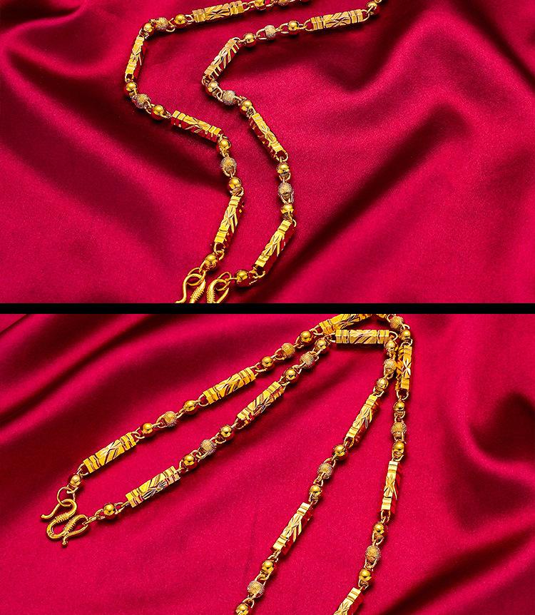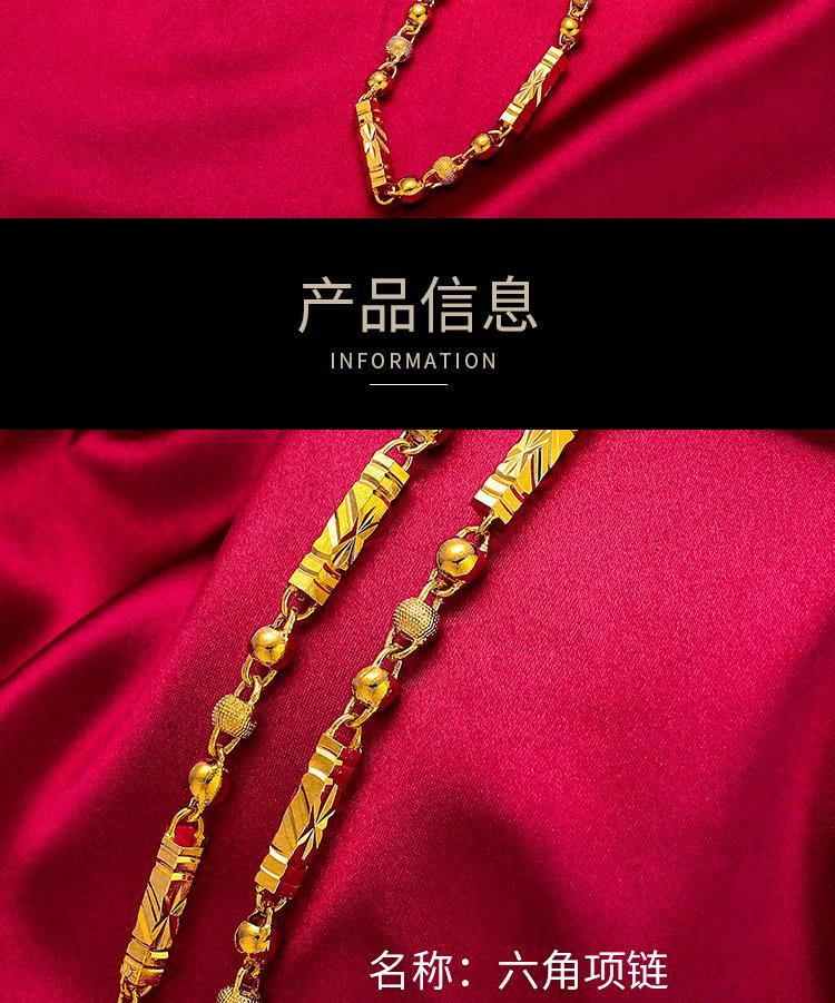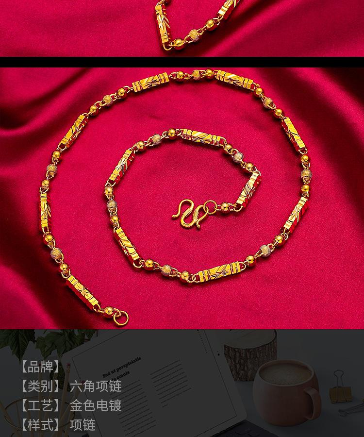 Collar sólido de cuentas hexagonales de oro de simulación al por mayor, chapado en oro para hombres, collar de bambú con columna hexagonal y arena vietnamita dorada.