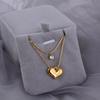 Collar de doble capa con forma de corazón de melocotón, de acero de titanio resistente a la decoloración, cadena de clavícula sencilla y moderna, colgante de amor femenino, collar ligero de lujo para viajeros.