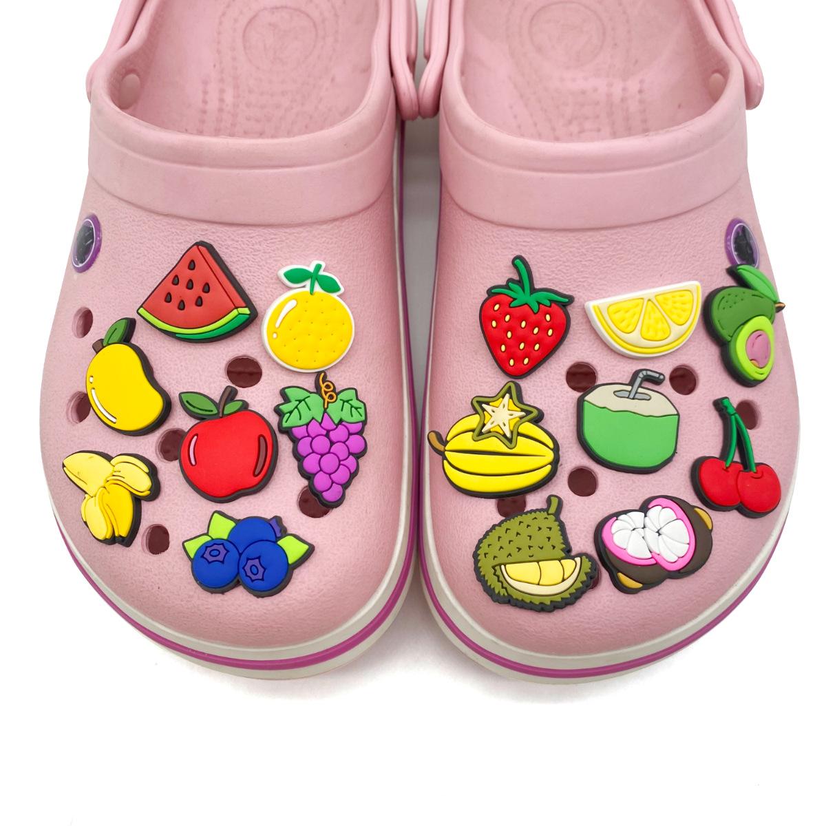 Nueva serie de frutas, zapatos con agujeros de dibujos animados, accesorios de flores, zapatos de goma suave de PVC, accesorios para zapatos con agujeros, accesorios para zapatos