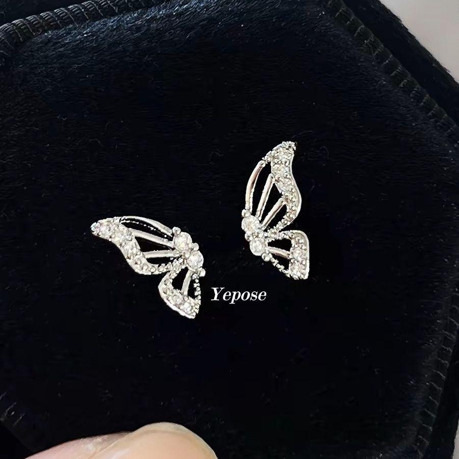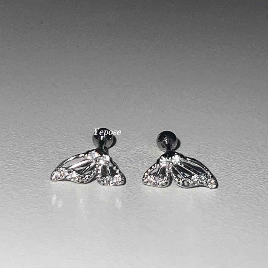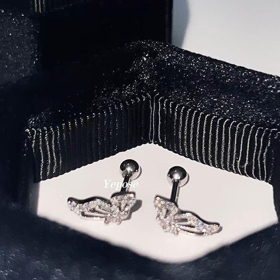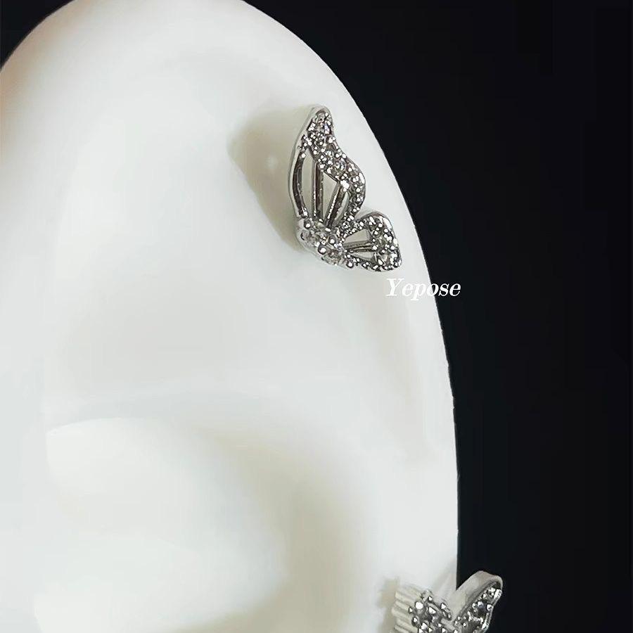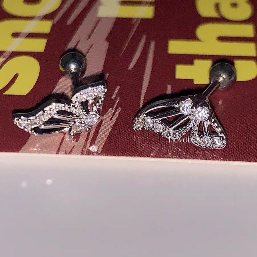 Clavo de hueso de oreja asimétrico con alas de mariposa de diamante hueco con doble orificio para oreja, nuevo clavo de gusano de oreja de tornillo de alta calidad con sentido de selección libre