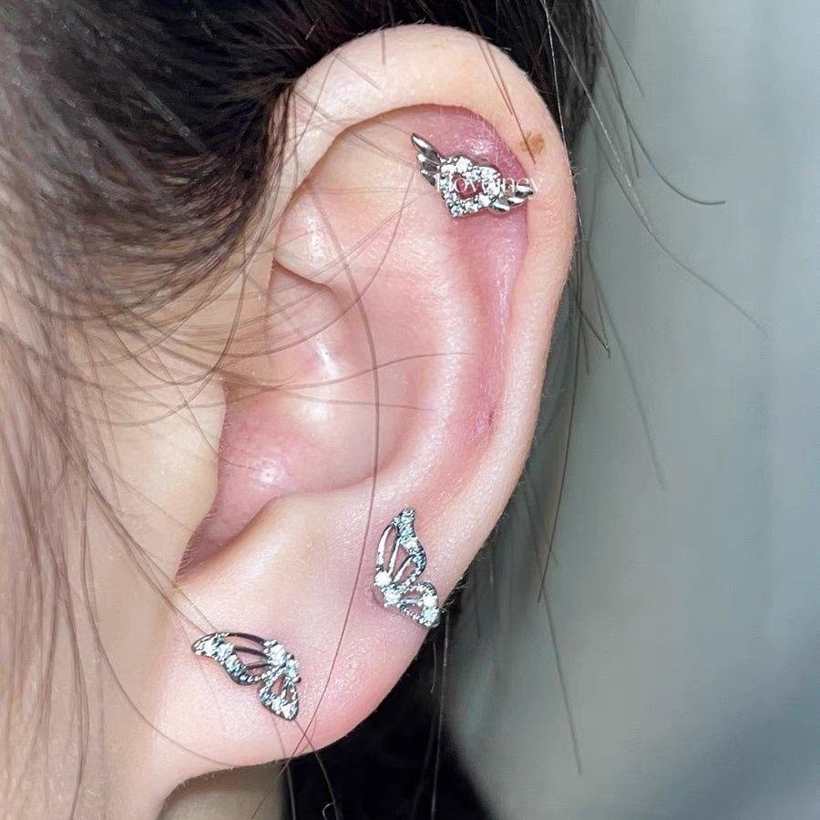 Wings hollow ear bone nail single (left ear), Wings hollow ear bone nail single (right ear), A pair of wings h...
