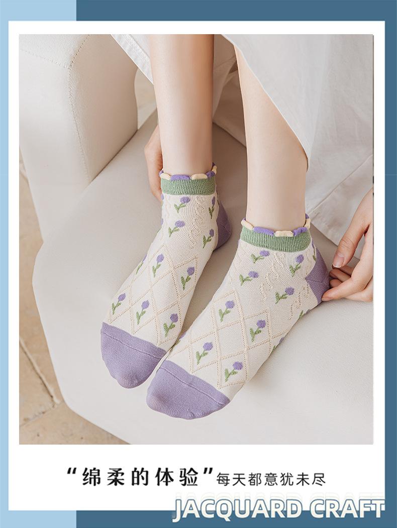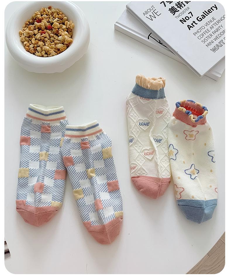 Calcetines Cortos de Mujer Primavera y Verano Calcetines de Barco Finos Dulces y Lindos Calcetines de Cuadros de Hongo Moda Trendy Calcetines de Mujer al Mayoreo