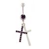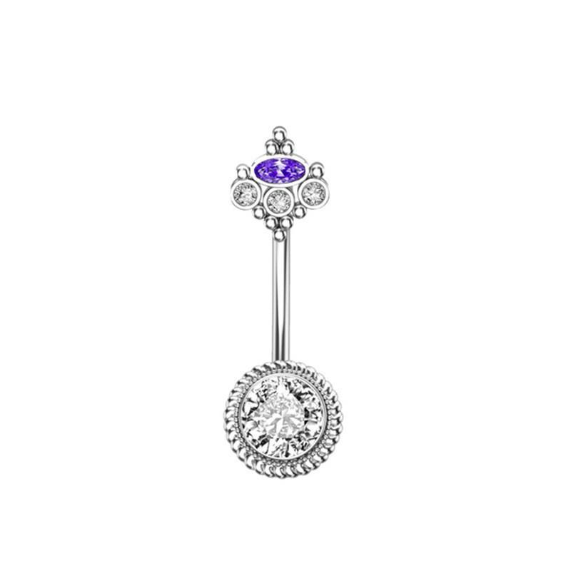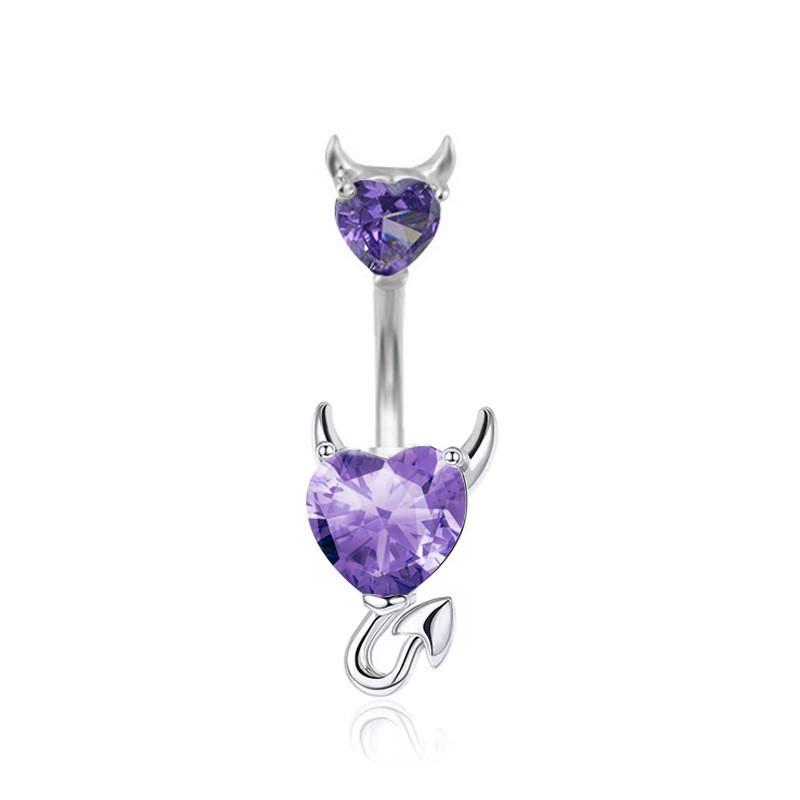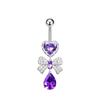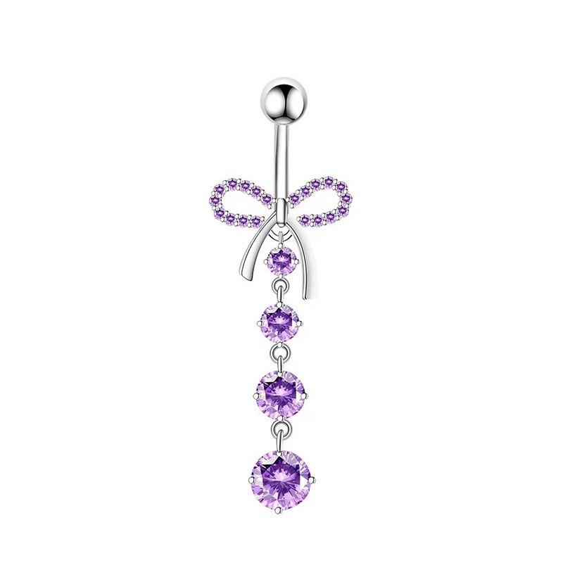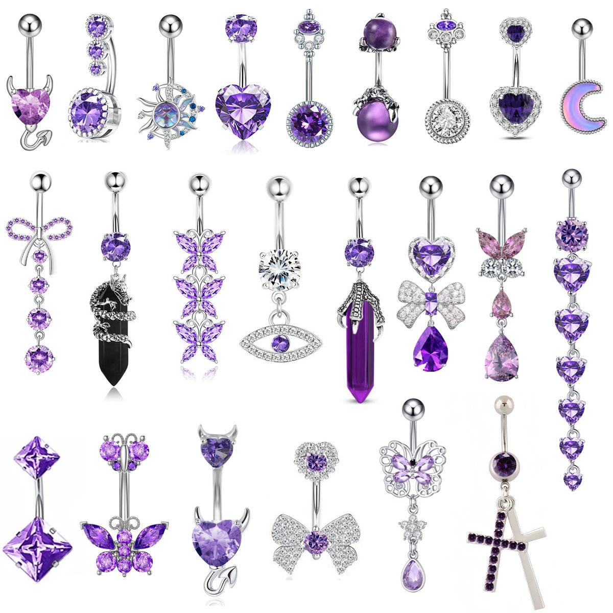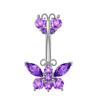 Ombliguera Serie Morada Europea y Americana Venta al por Mayor Acero Inoxidable Corazón de Durazno Zircón Mariposa Larga Anillo para el Ombligo Joyería para Perforación