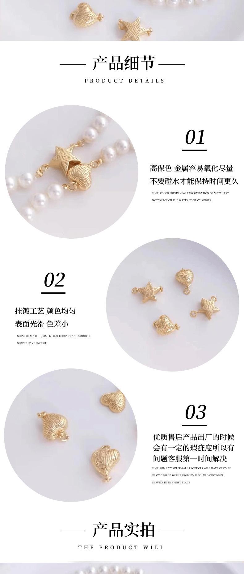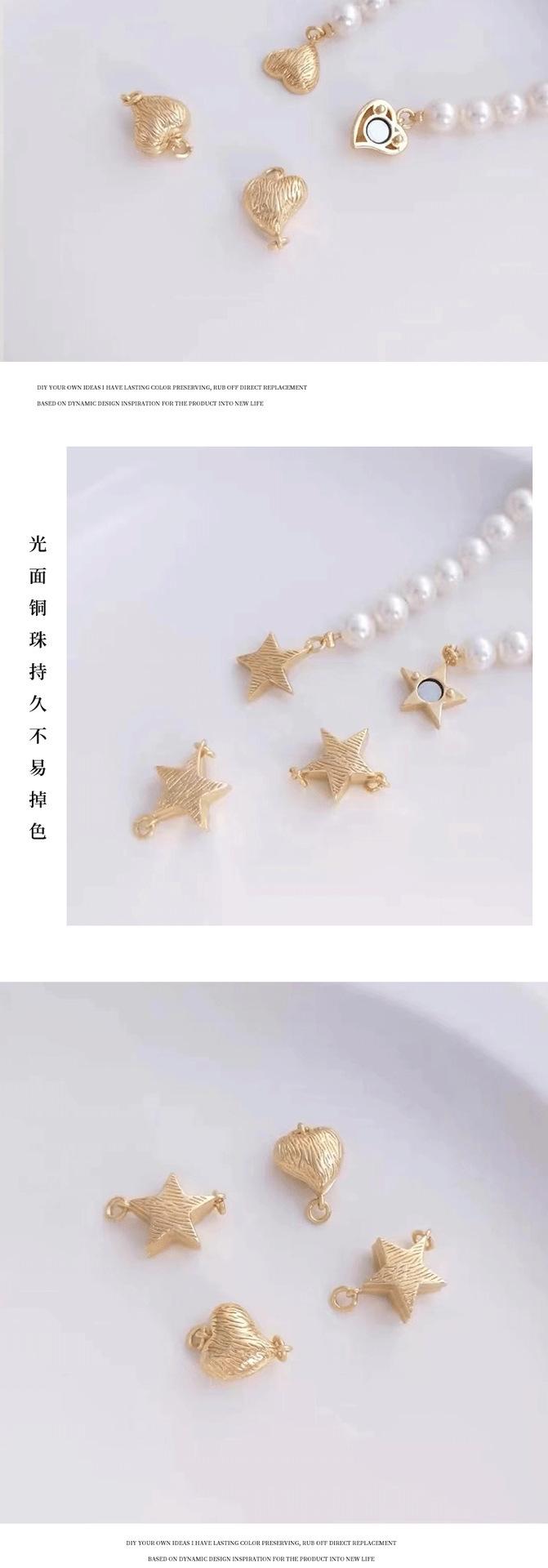 Hebilla magnética de retención de color, envuelta en oro de 14 quilates, con forma de corazón y estrella de cinco puntas, hecha a mano, cierre de pulsera, accesorios con hebilla magnética