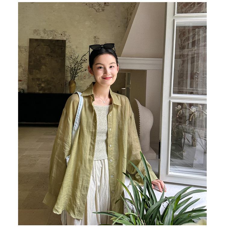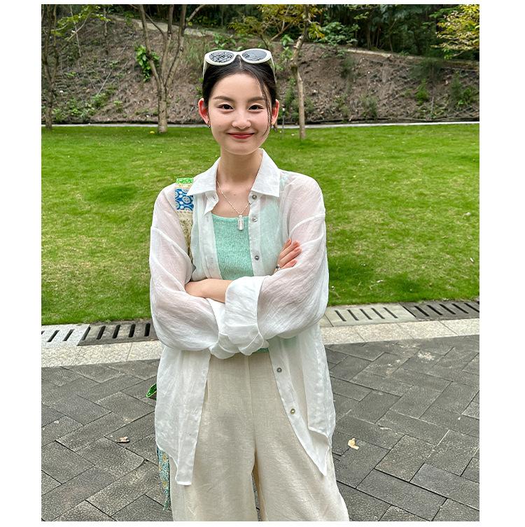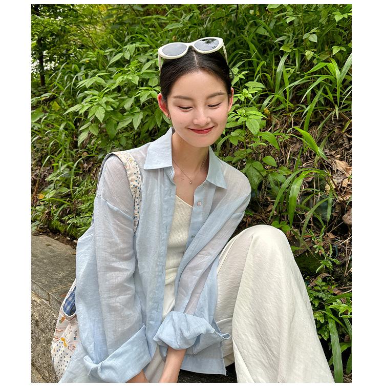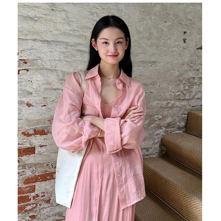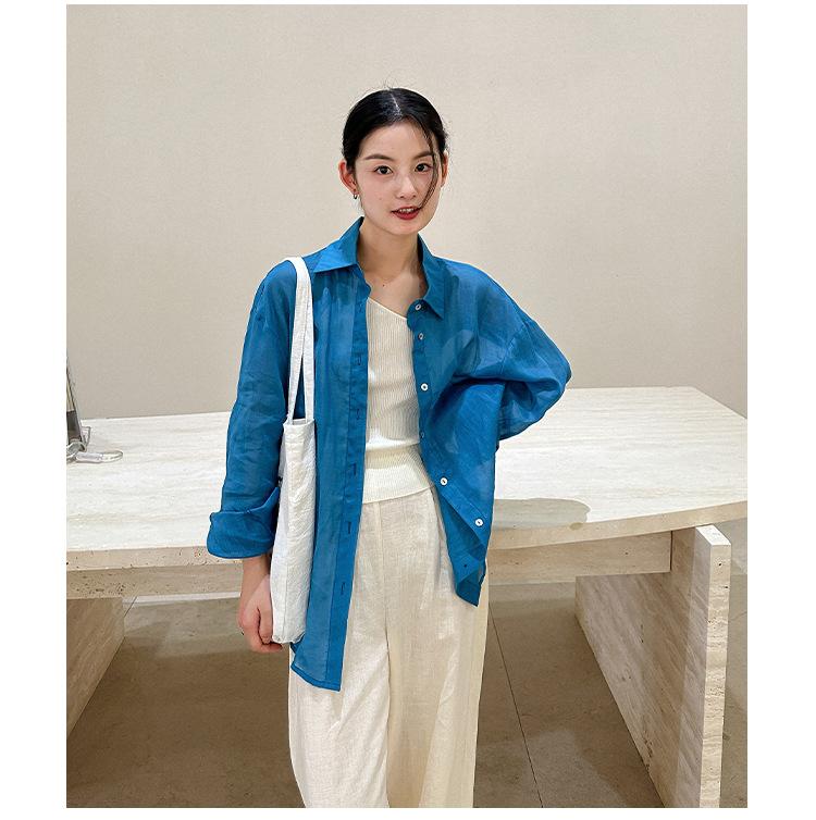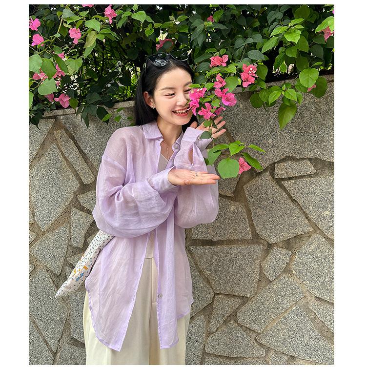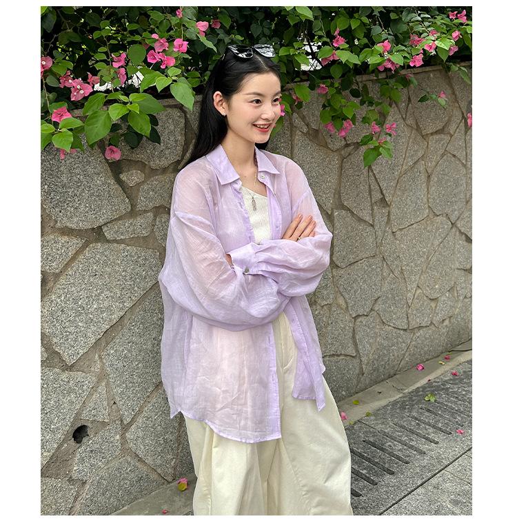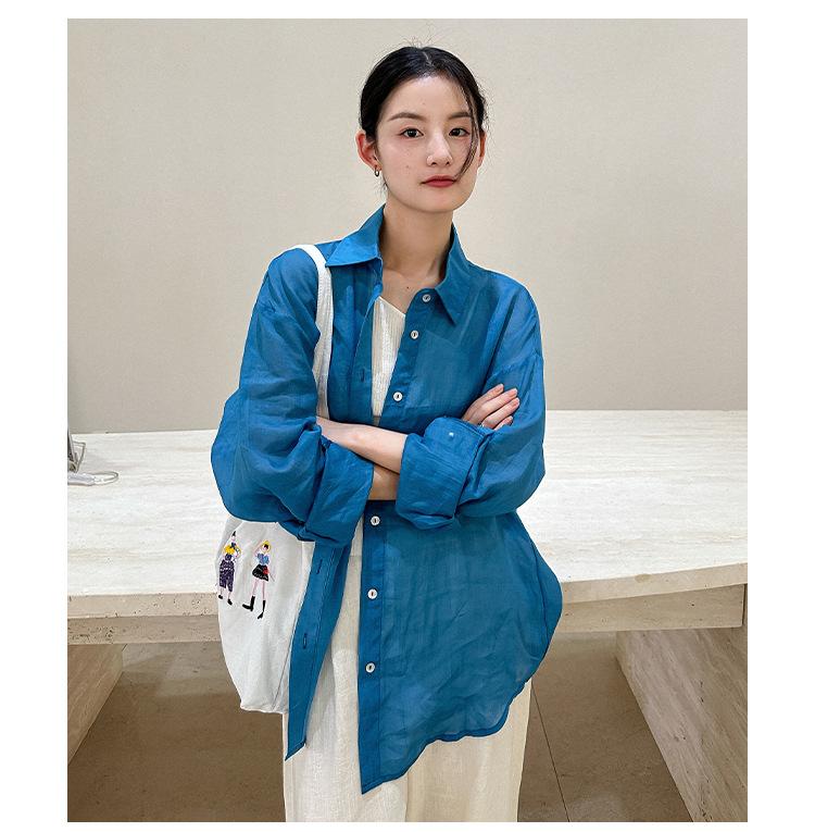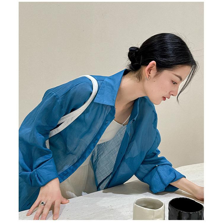 Procesamiento Personalizado | Cárdigan de Protección Solar Digm Dopamina Tencel Ramio Ligeramente Transparente Camisa de Manga Larga para Mujer 76016-1