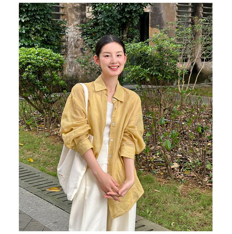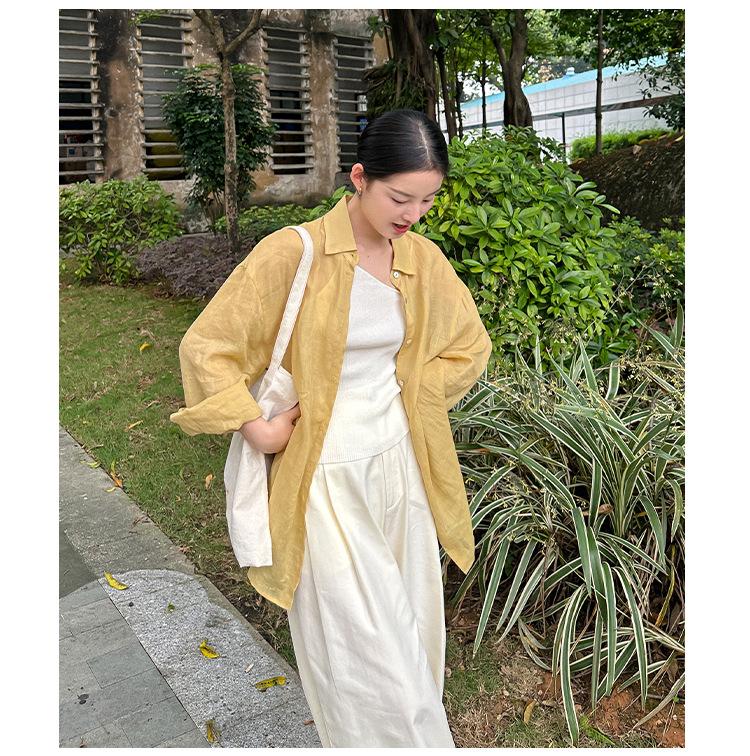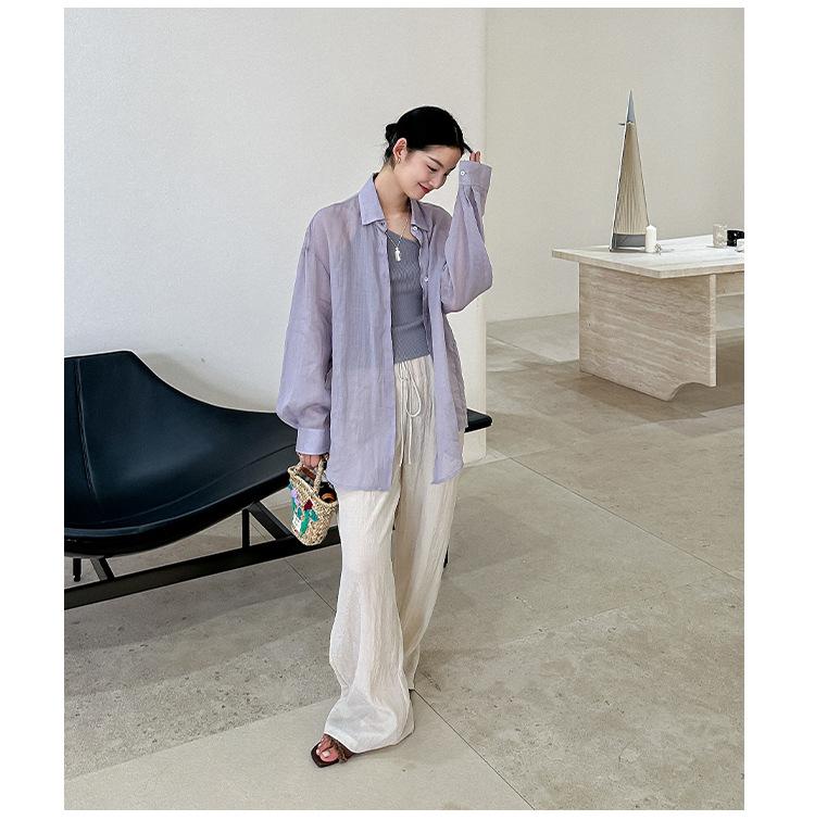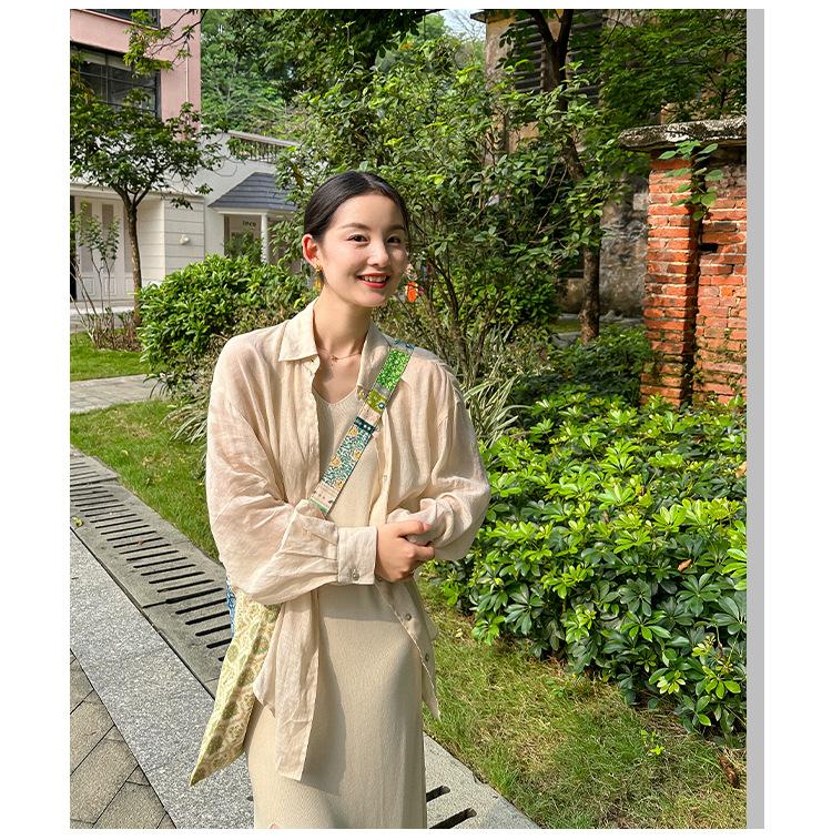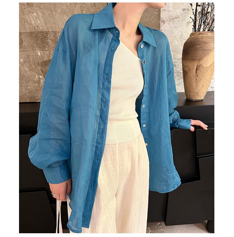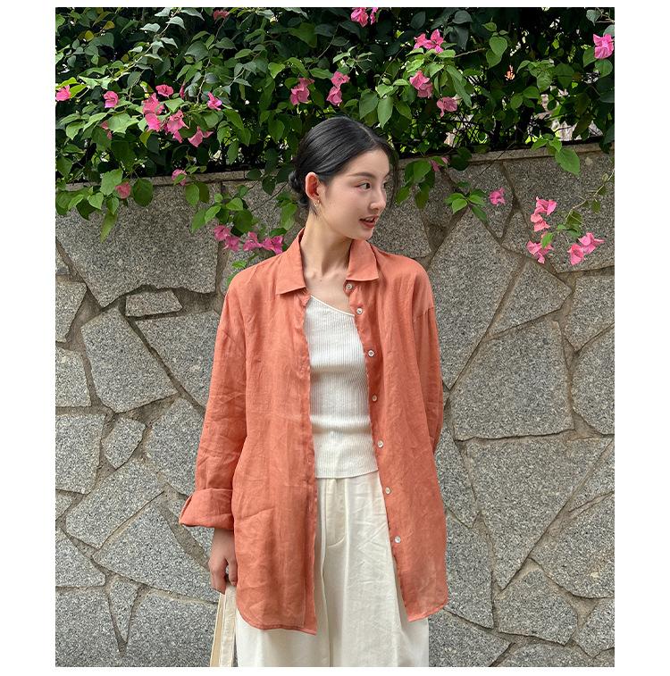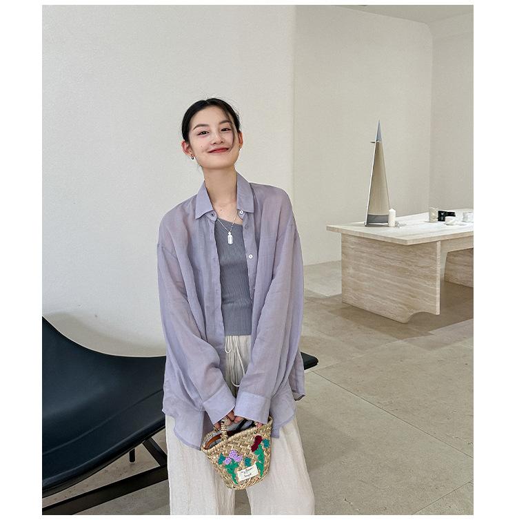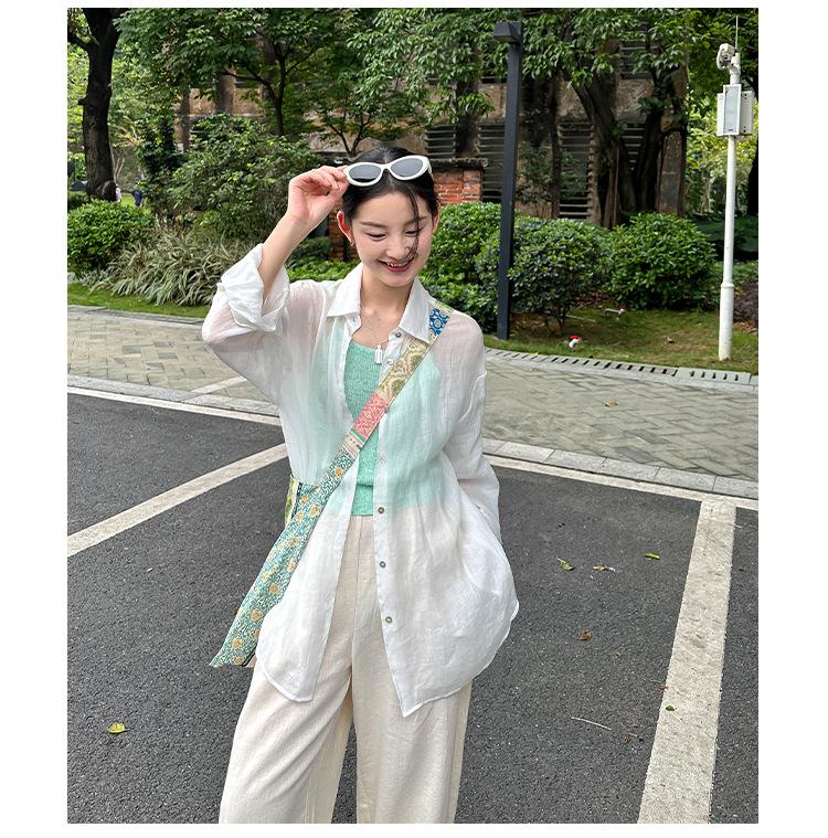 Procesamiento Personalizado | Cárdigan de Protección Solar Digm Dopamina Tencel Ramio Ligeramente Transparente Camisa de Manga Larga para Mujer 76016-1