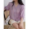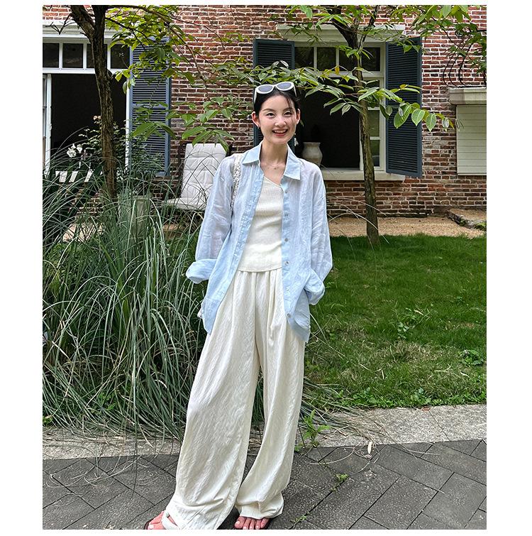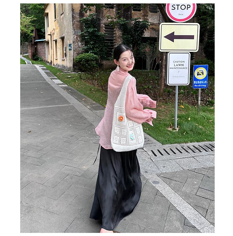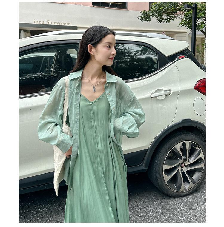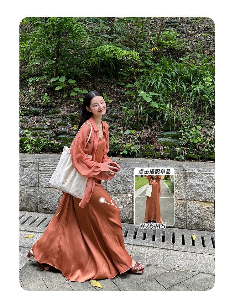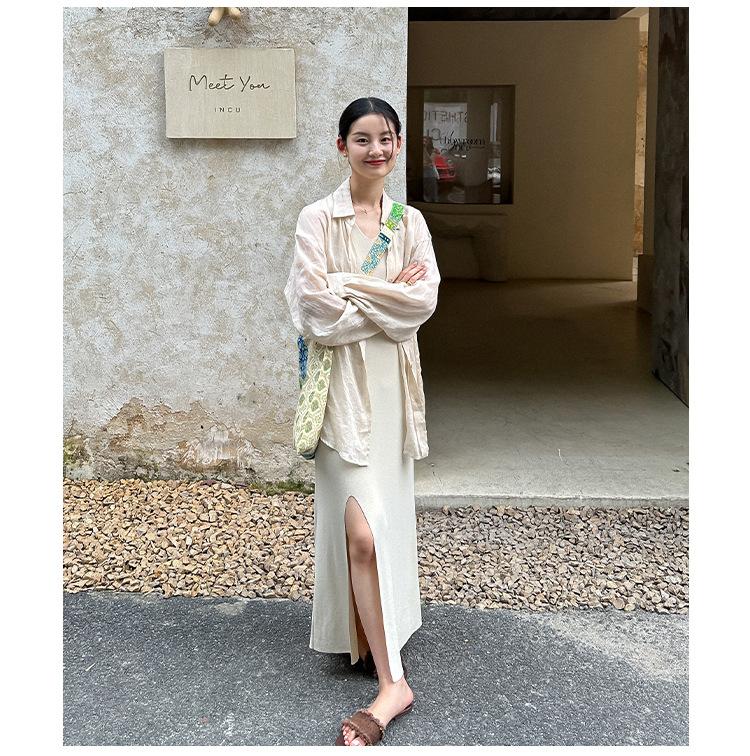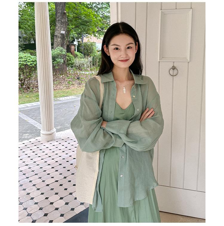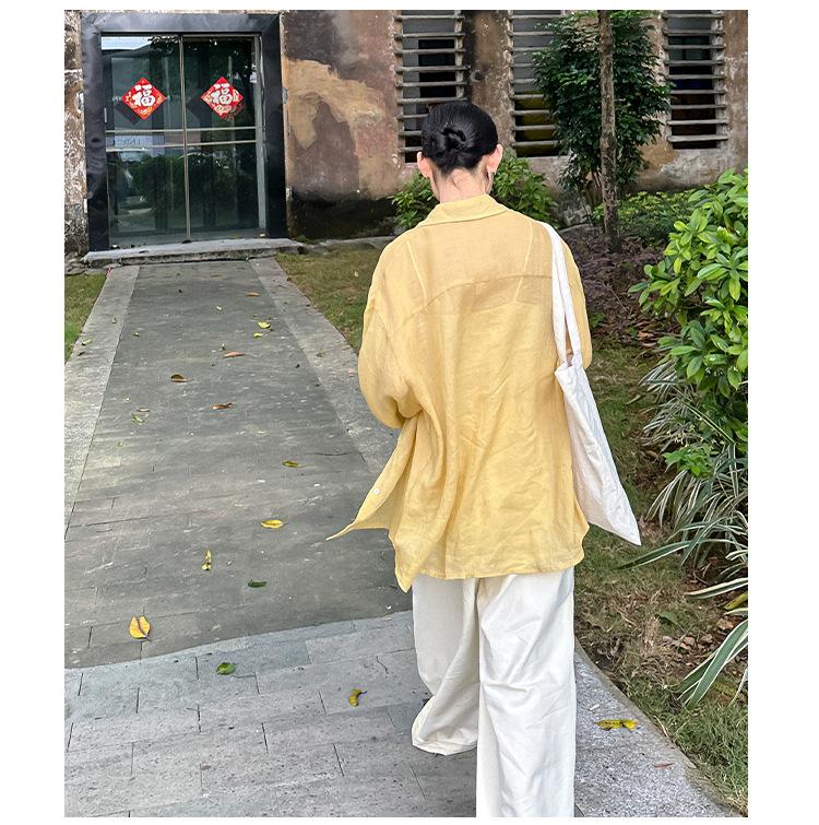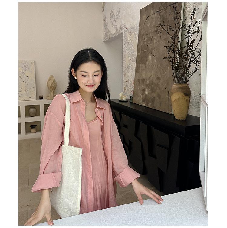 Procesamiento Personalizado | Cárdigan de Protección Solar Digm Dopamina Tencel Ramio Ligeramente Transparente Camisa de Manga Larga para Mujer 76016-1