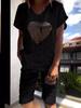 2024 Nuevo Algodón y Lino Transfronterizo Europeo y Americano Ropa Casual Holgada para Mujer Traje Decorativo de Lentejuelas en Forma de Corazón Algodón y Lino Shorts Holgados