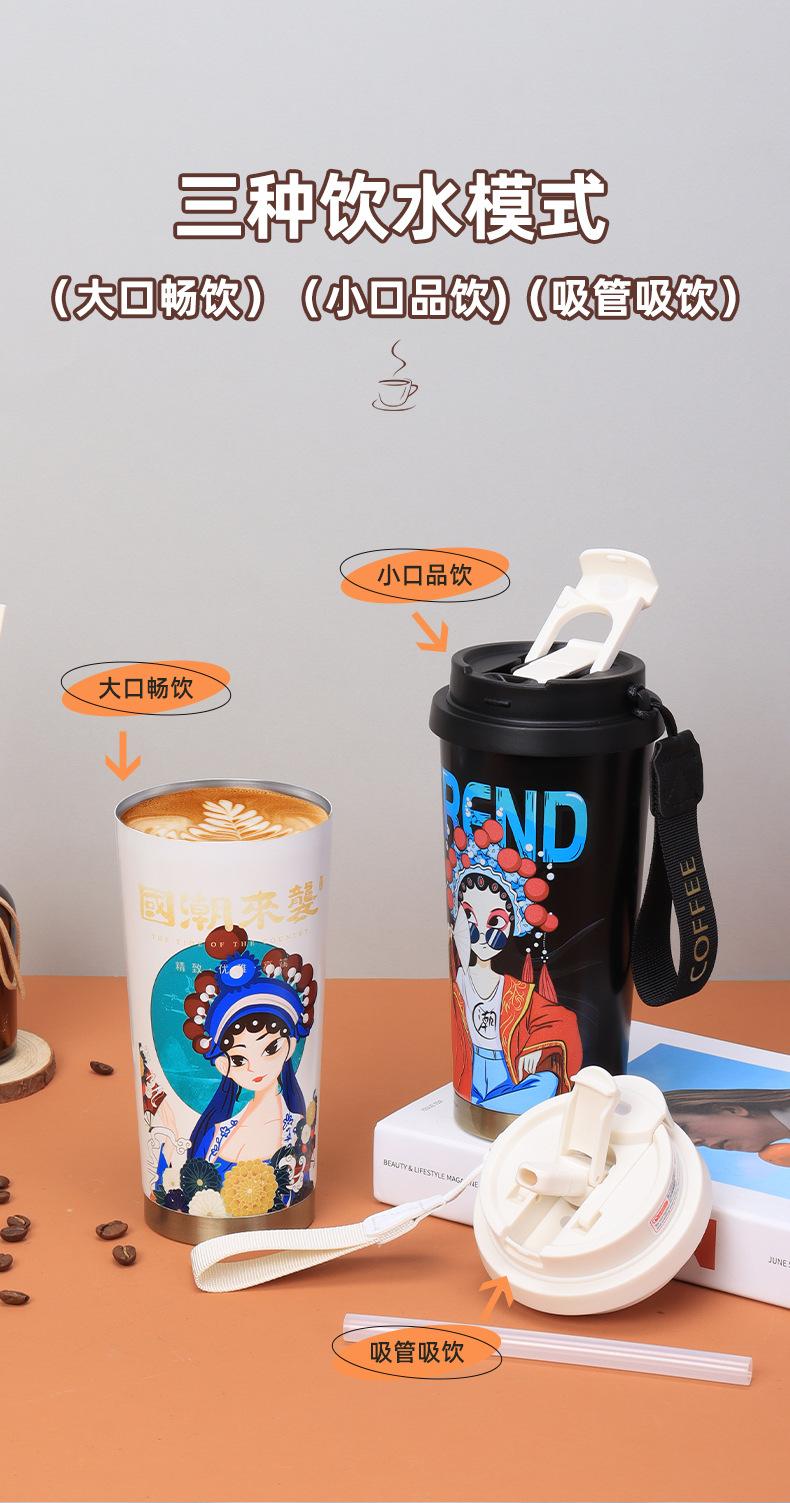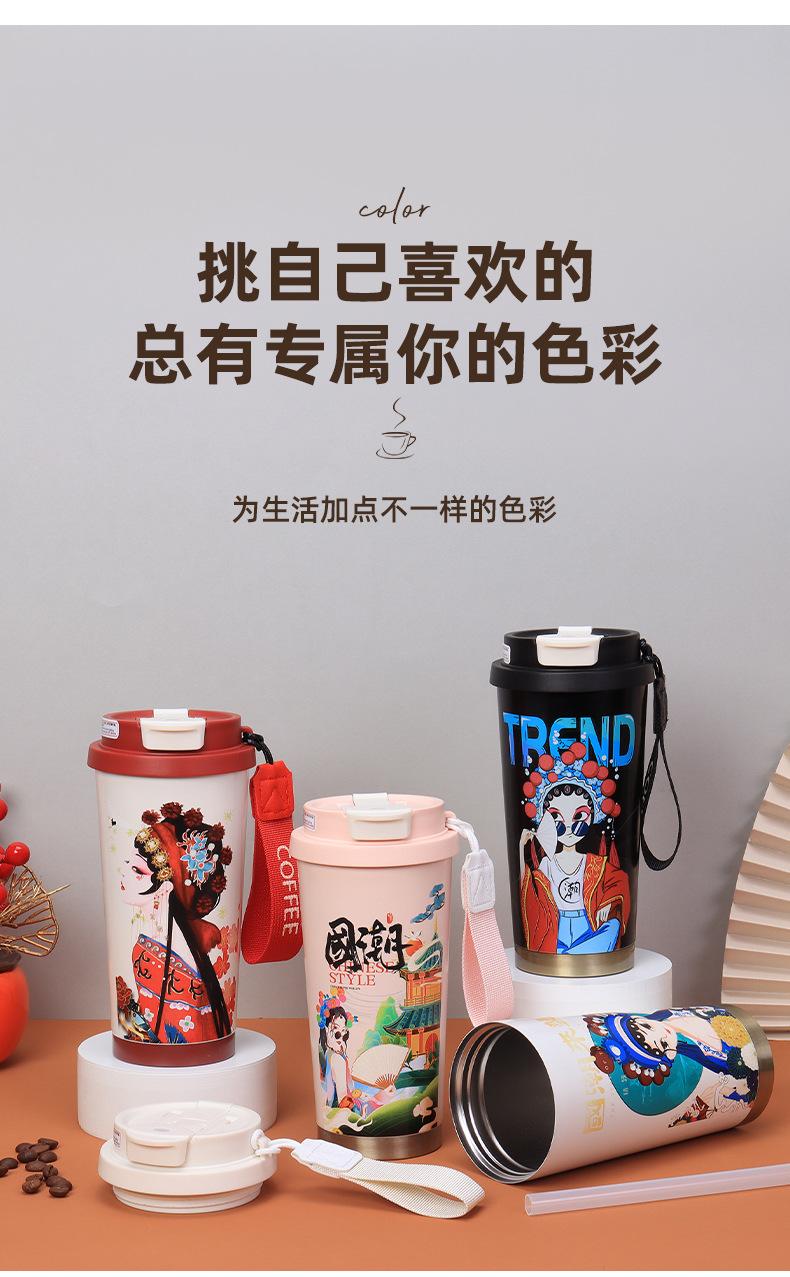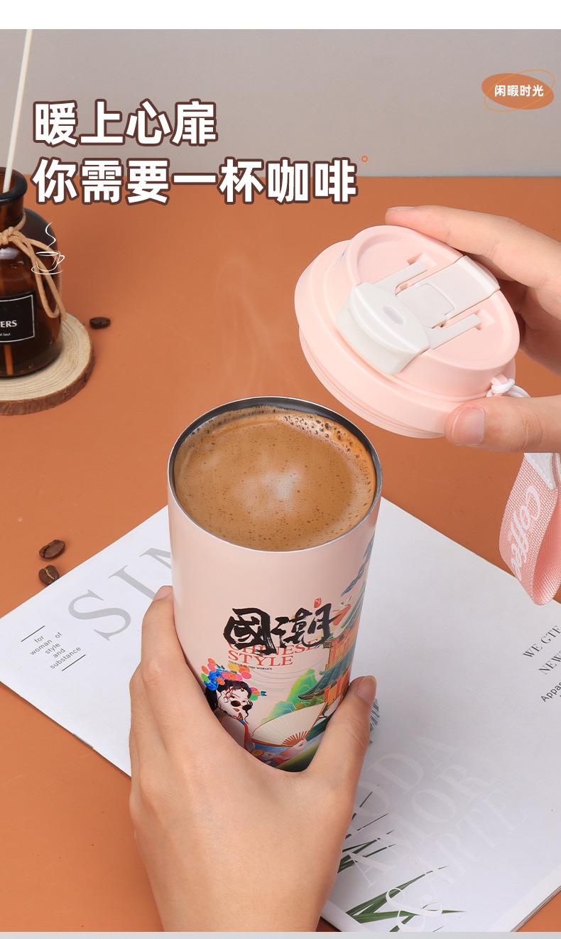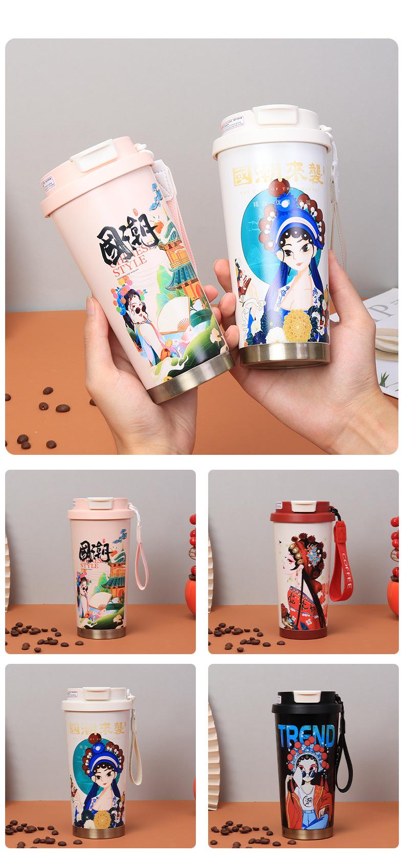 Taza de Café Nueva, Taza de Viaje de Estilo Chino Nuevo, Taza Aislada Portátil para Beber Directamente, Vaso de Agua para Estudiantes Montado en Coche, Regalo
