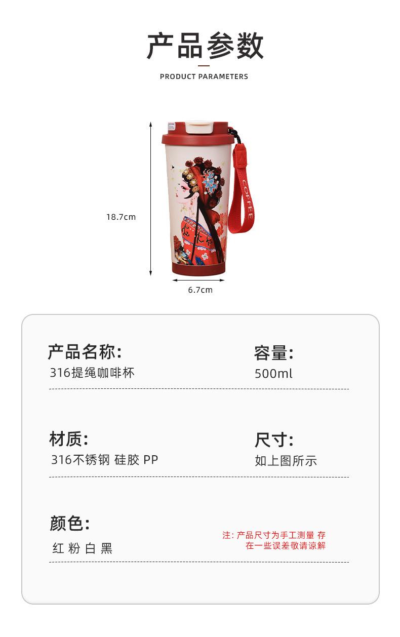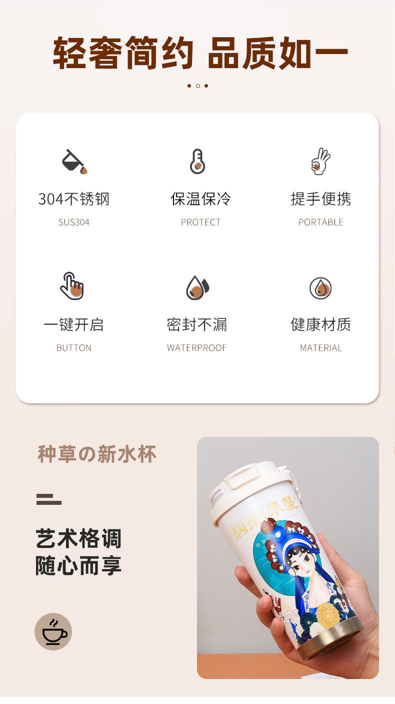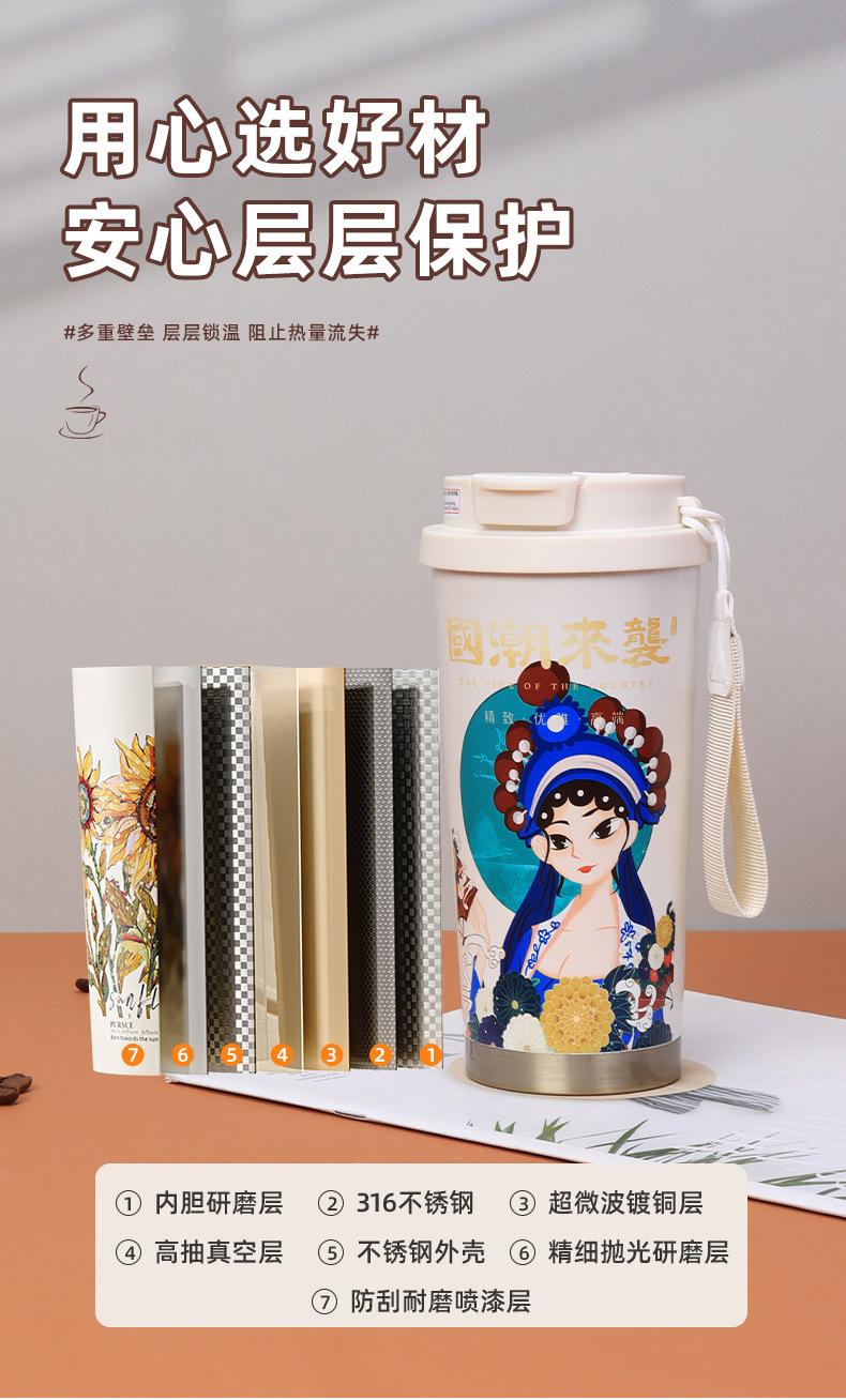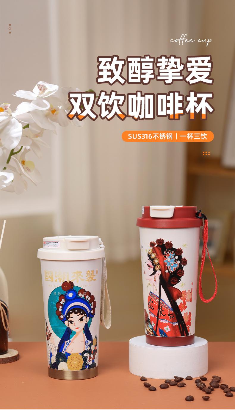 Taza de Café Nueva, Taza de Viaje de Estilo Chino Nuevo, Taza Aislada Portátil para Beber Directamente, Vaso de Agua para Estudiantes Montado en Coche, Regalo