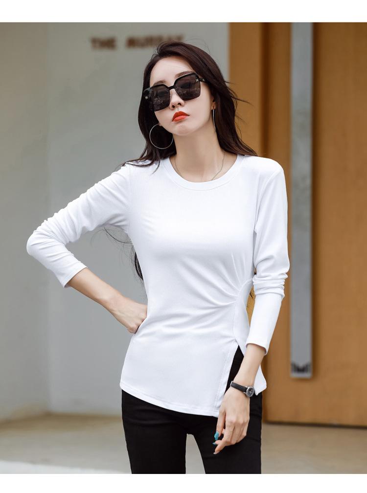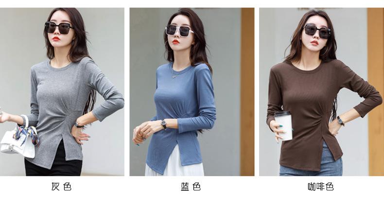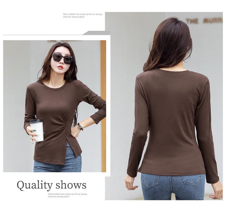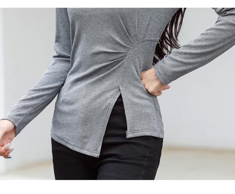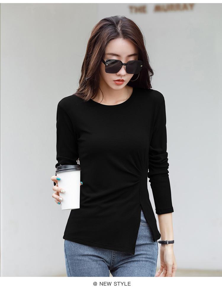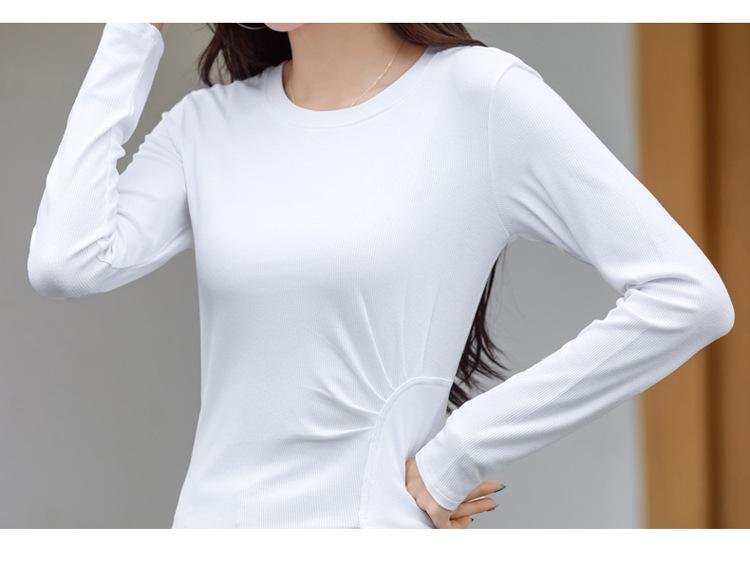 Playera Plisada para Mujer, Capa Interior de Manga Larga, Camiseta Base, Top Irregular de Otoño e Invierno 2023, Tejido Modal Suave a la Moda