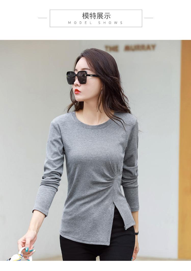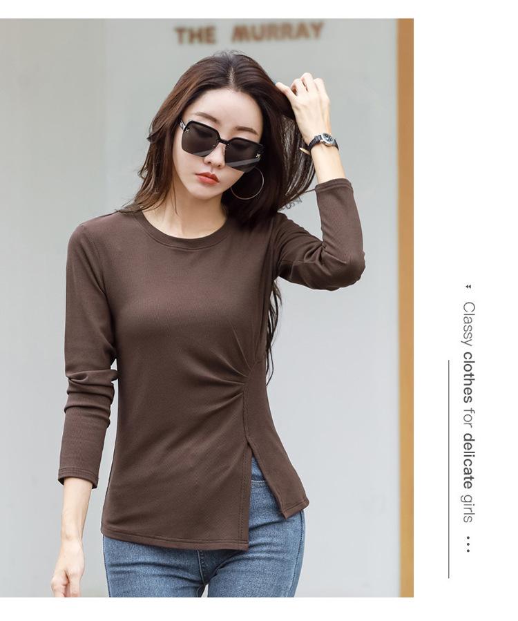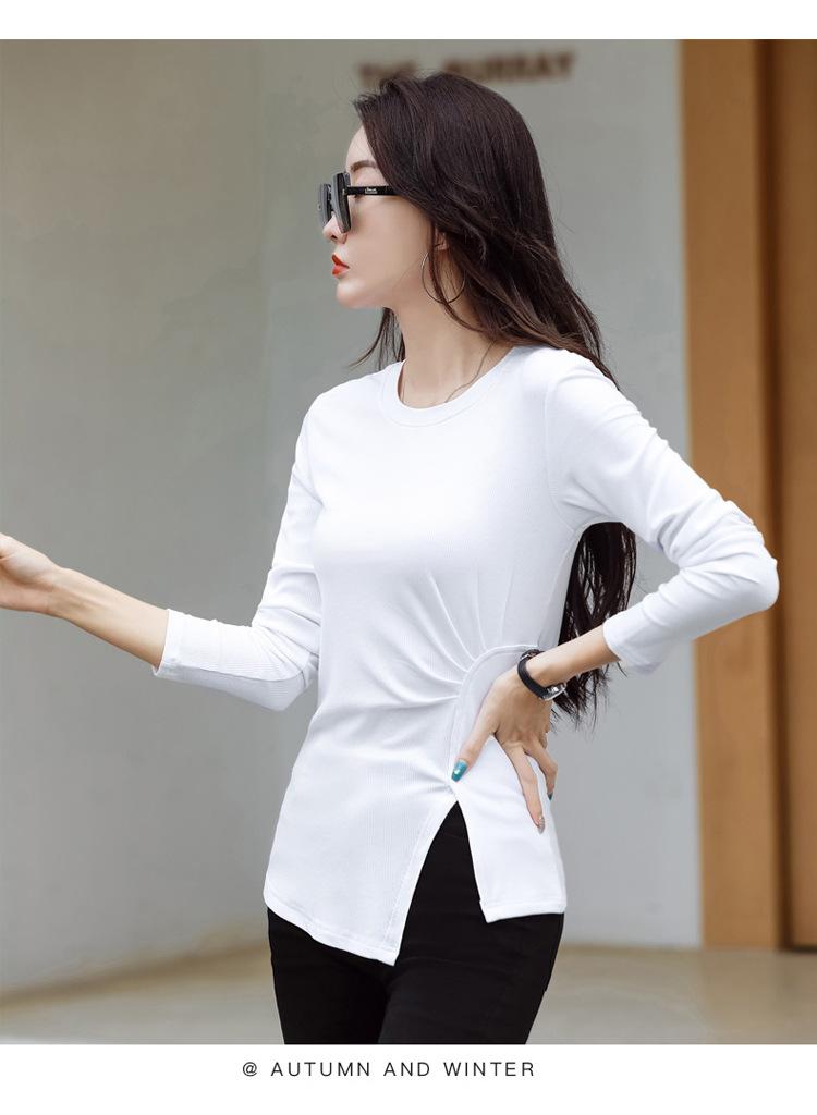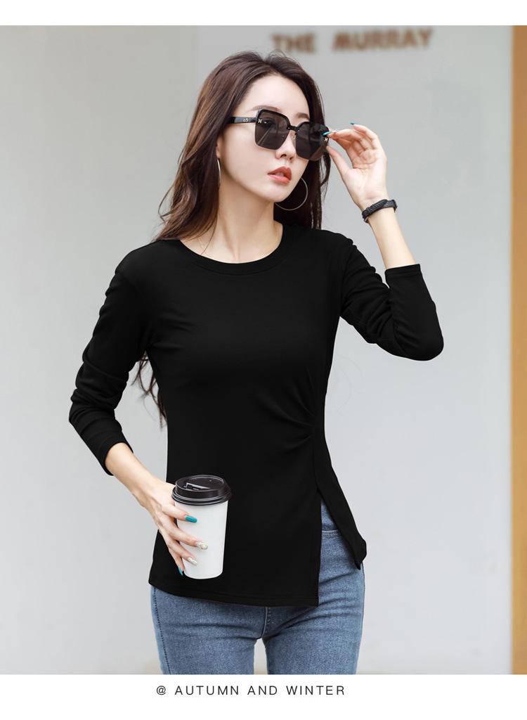 Playera Plisada para Mujer, Capa Interior de Manga Larga, Camiseta Base, Top Irregular de Otoño e Invierno 2023, Tejido Modal Suave a la Moda