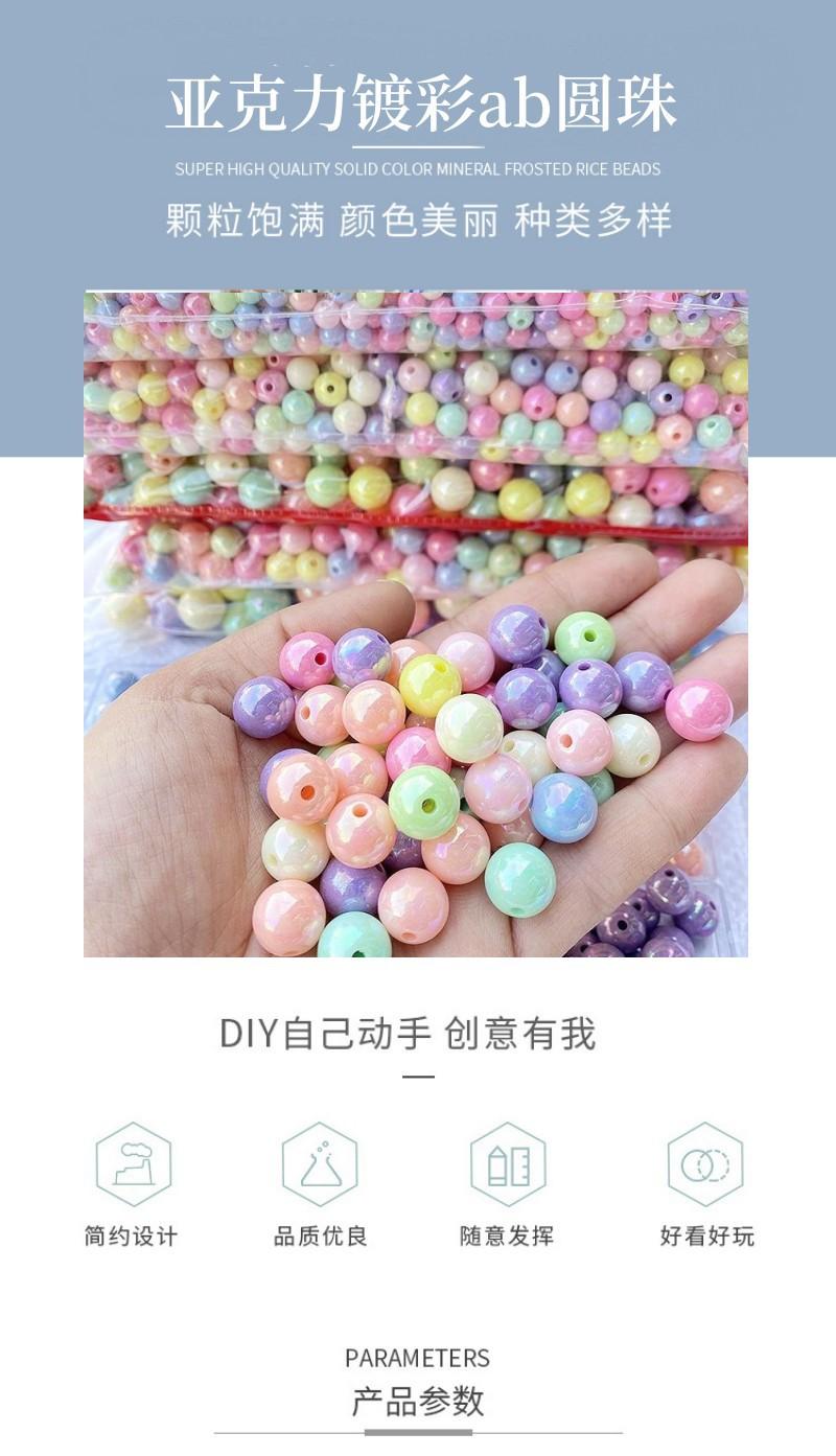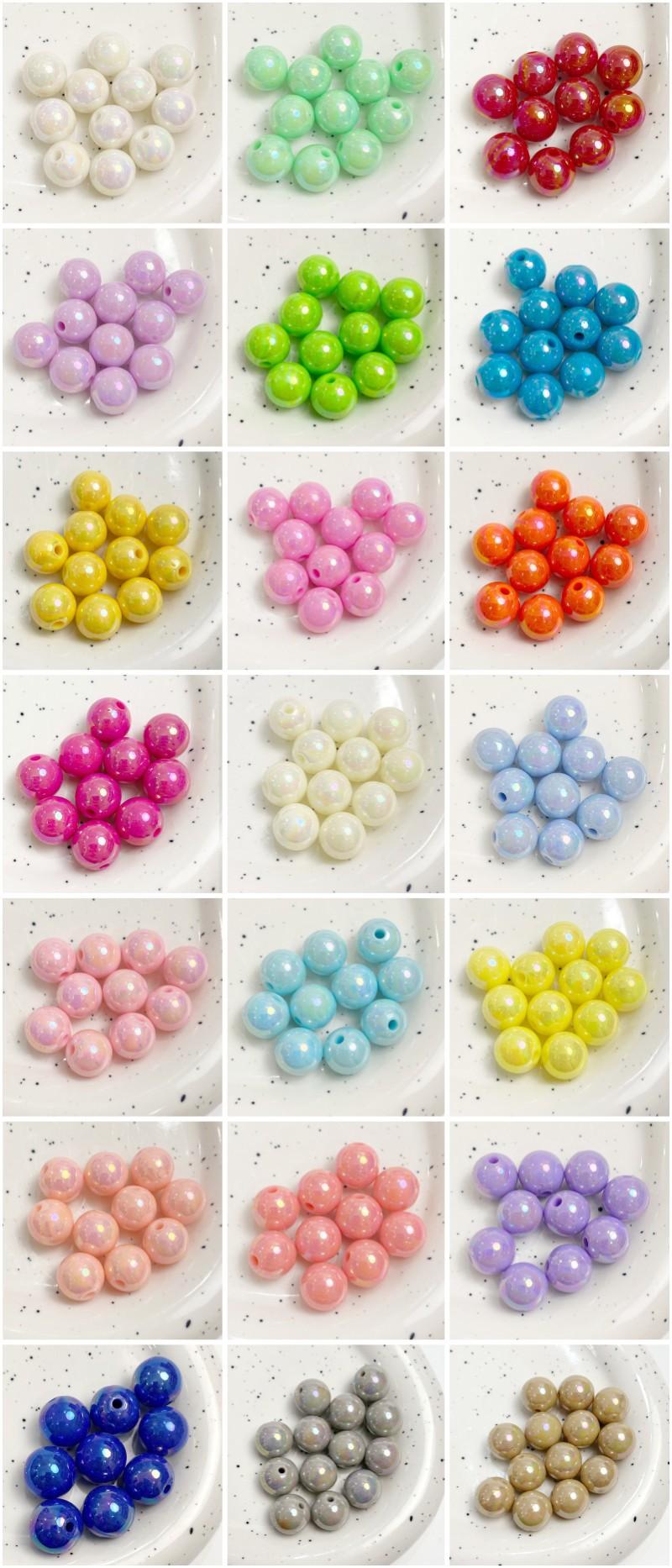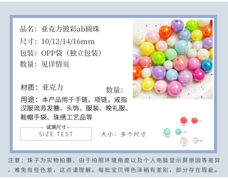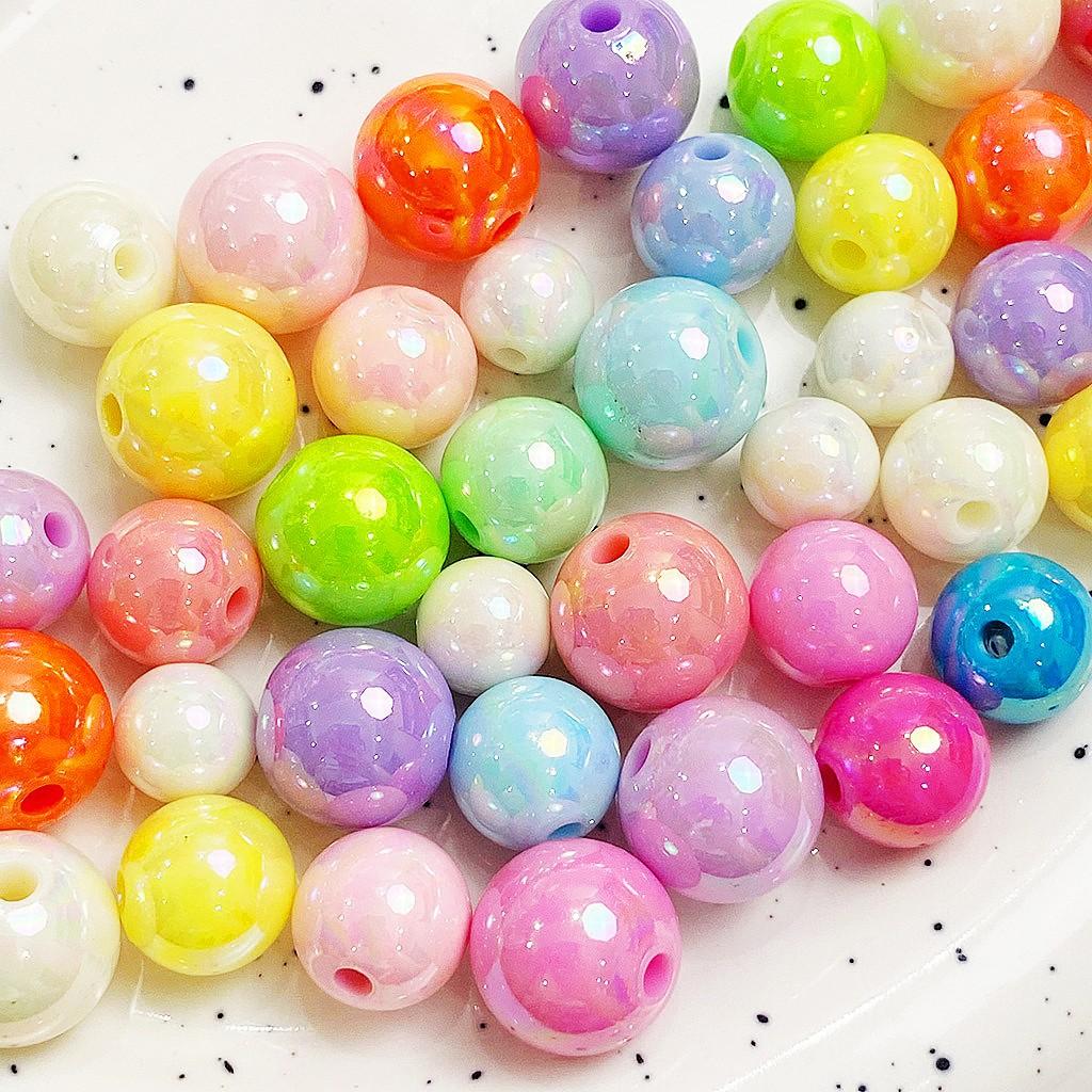 Cuentas redondas AB chapadas en color acrílico, accesorios para cadena de teléfono móvil, pulsera de hilo, material de joyería, cuentas sueltas de color