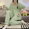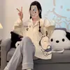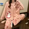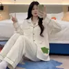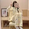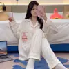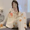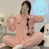 Pijama para Mujer Verano Cárdigan Pantalones de Manga Larga Traje Verano Damas 2024 Nuevo Dibujo Animado Primavera Otoño Invierno Jia Beiqin