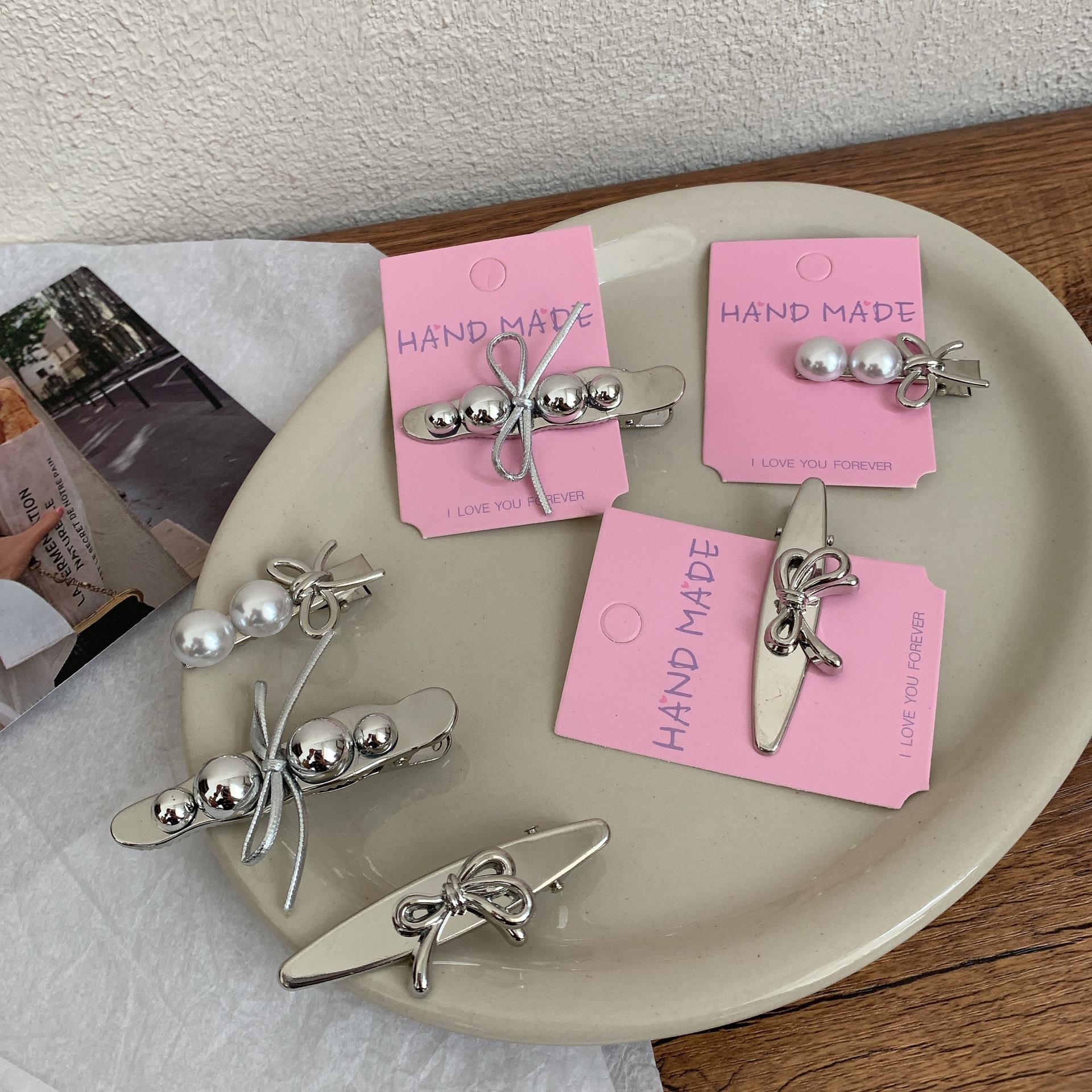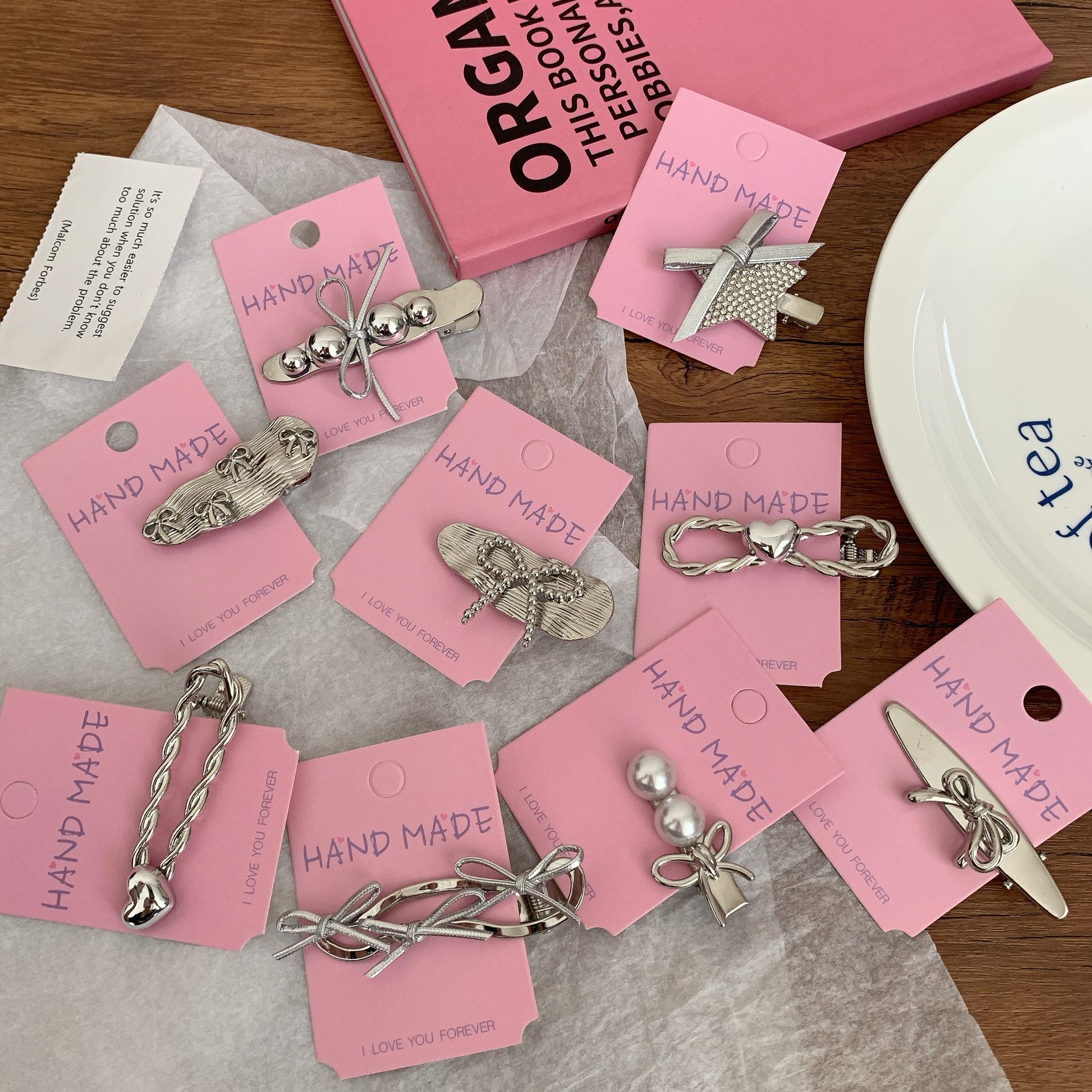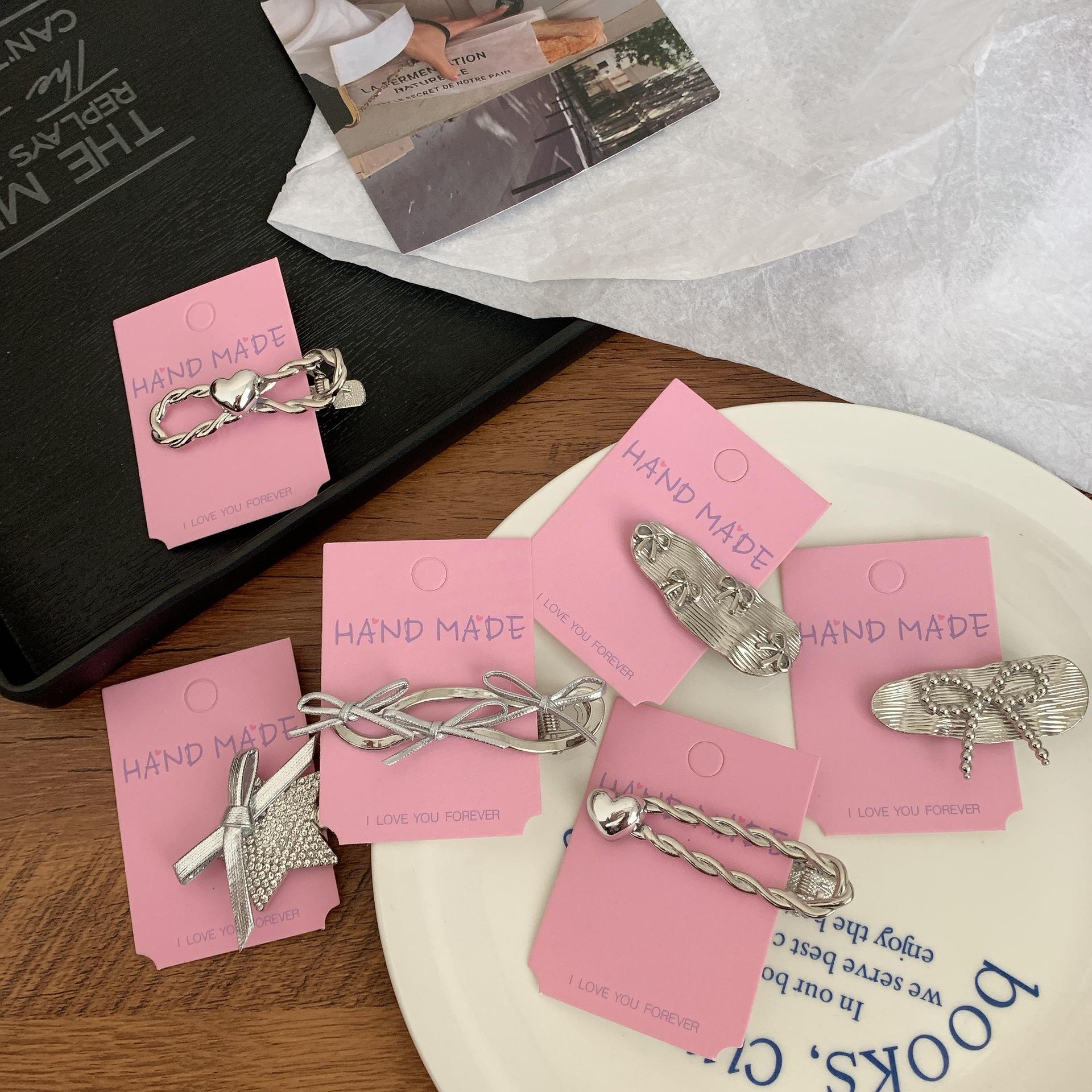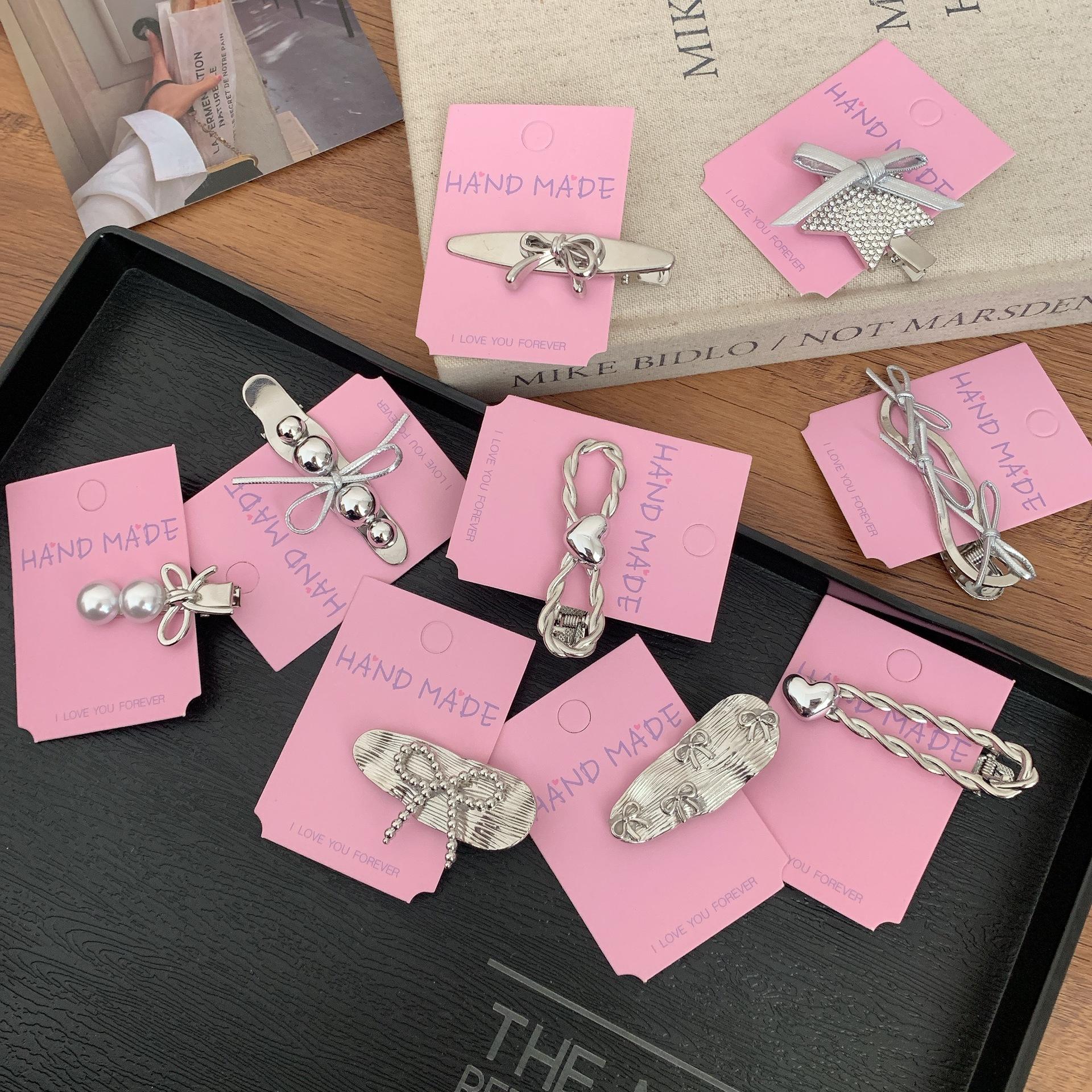 Pasador de Pelo de Lazo de Metal Plateado Sentido Avanzado Pasador de Pelo Líquido Clip Lateral Clip para Flequillo de Cabello Roto Clip de Pico de Pato Accesorios para el Cabello