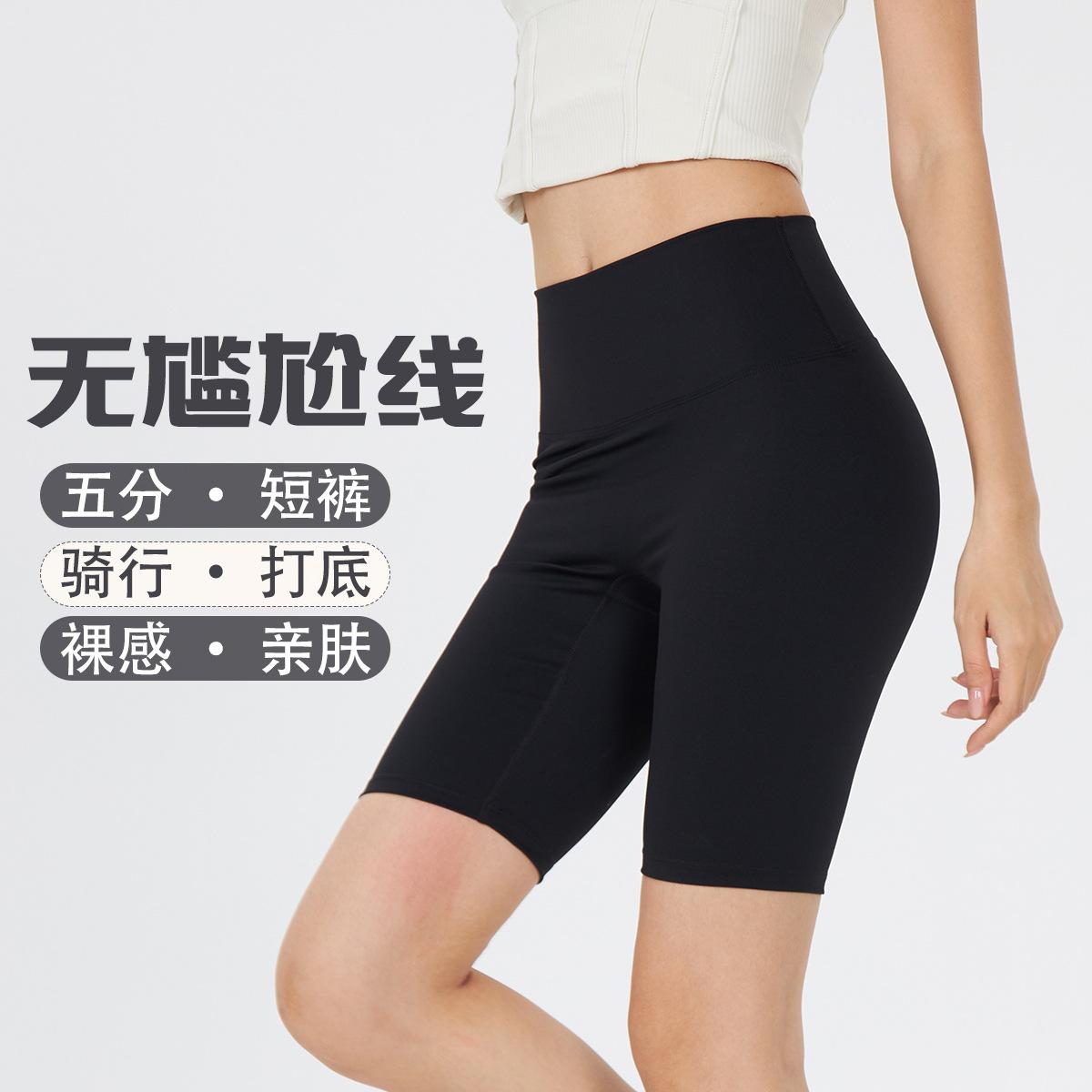 Shorts Deportivos de Verano Yoga Fitness para Mujer 9 pulgadas Cintura Alta Cepillados Levantamiento de Cadera Shorts Trasero Melocotón Leggings Sin Costuras