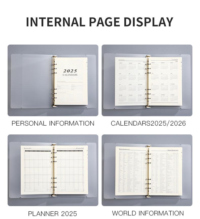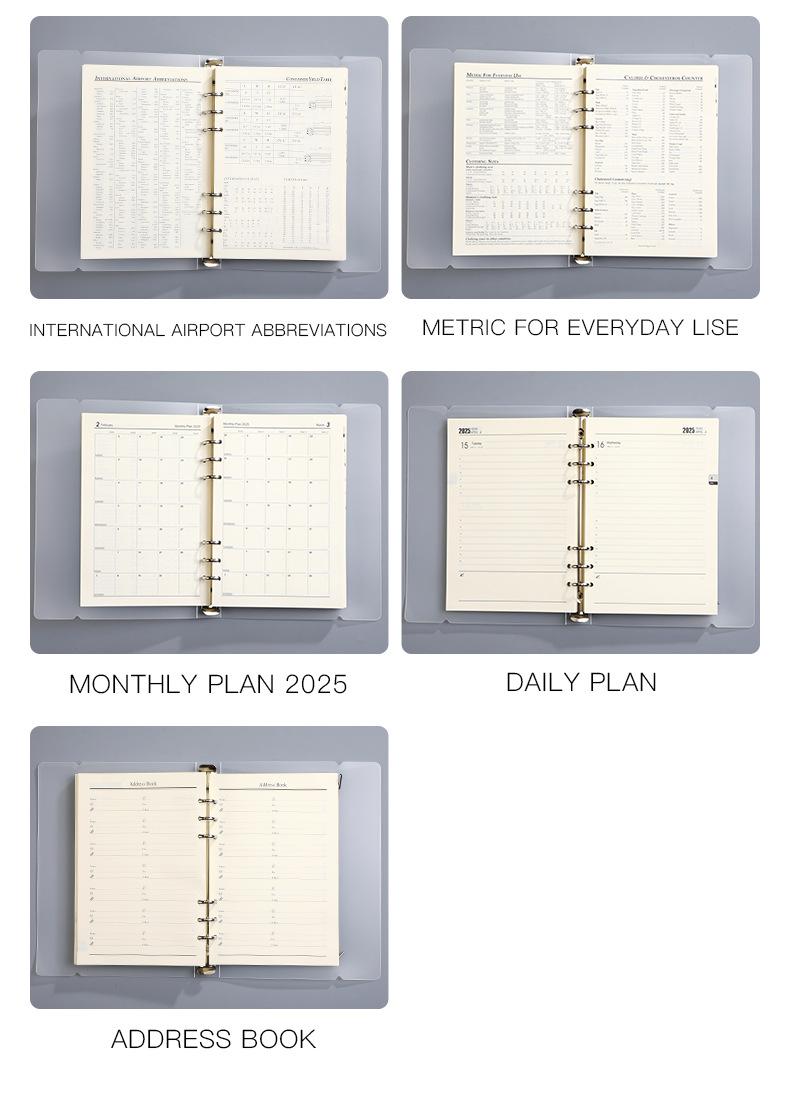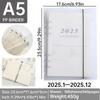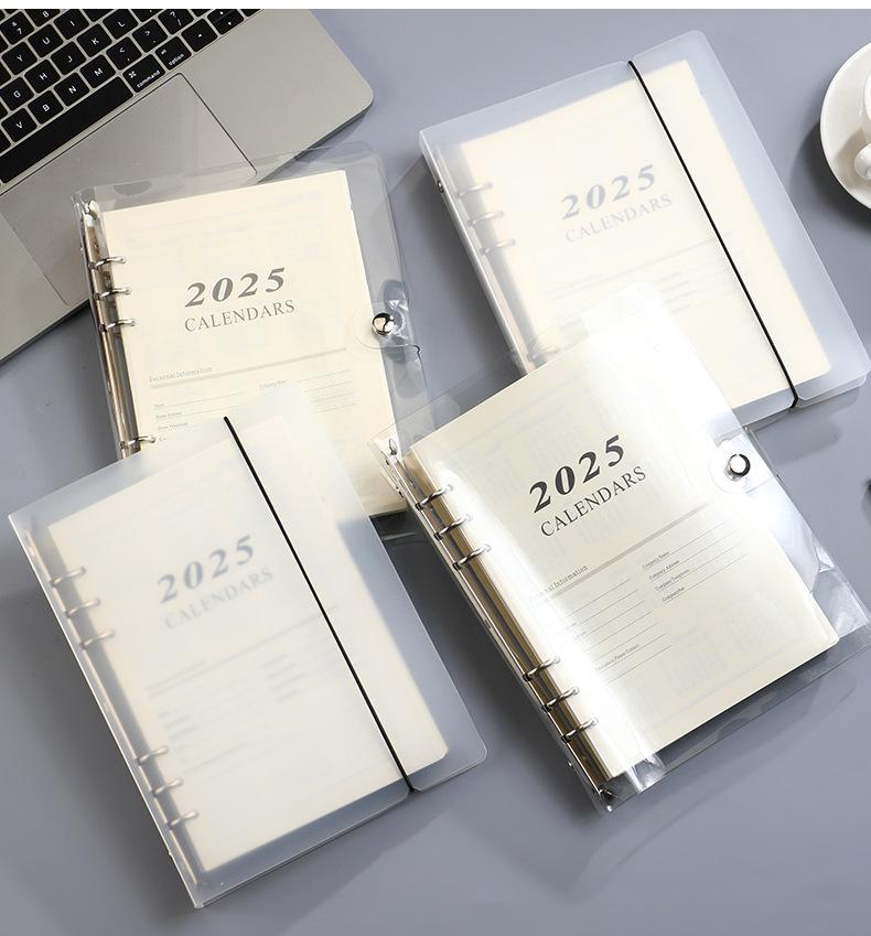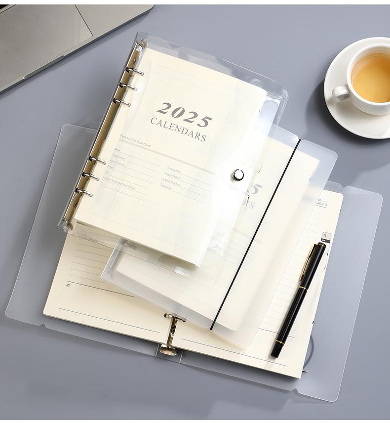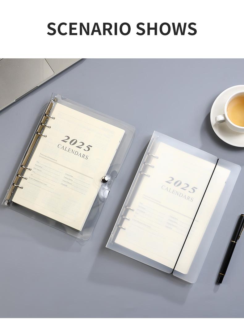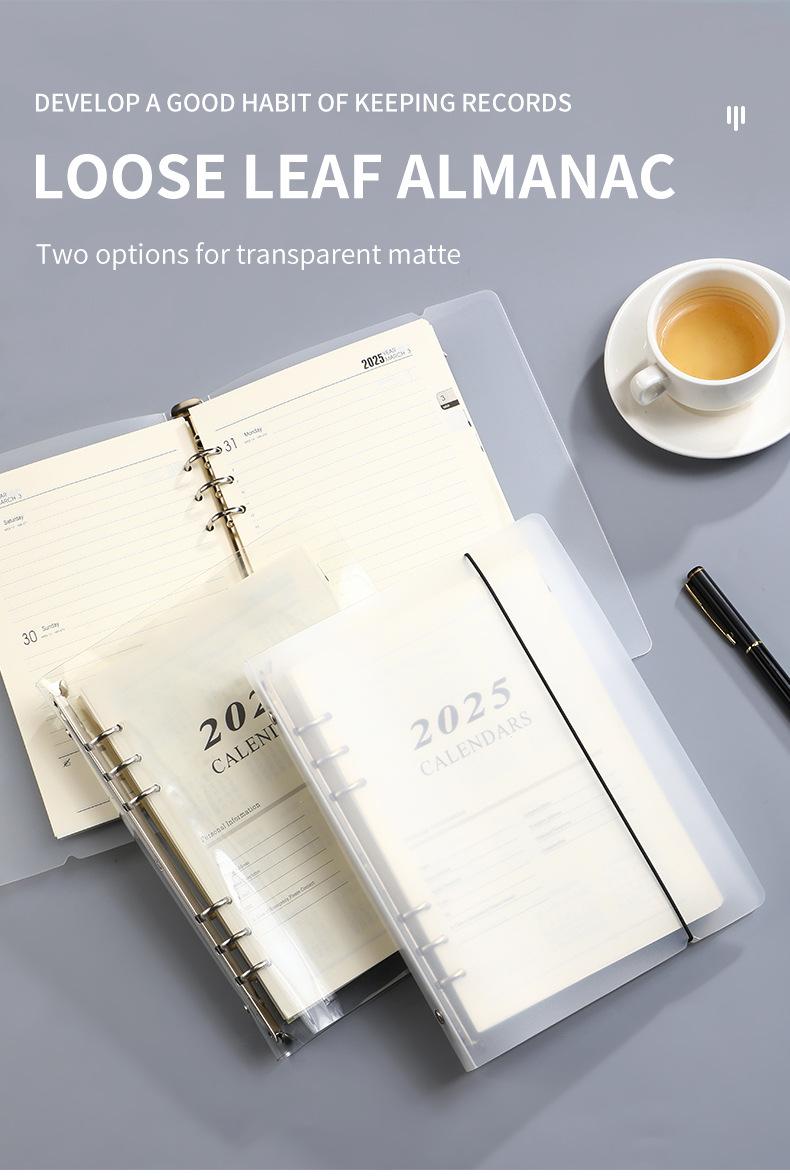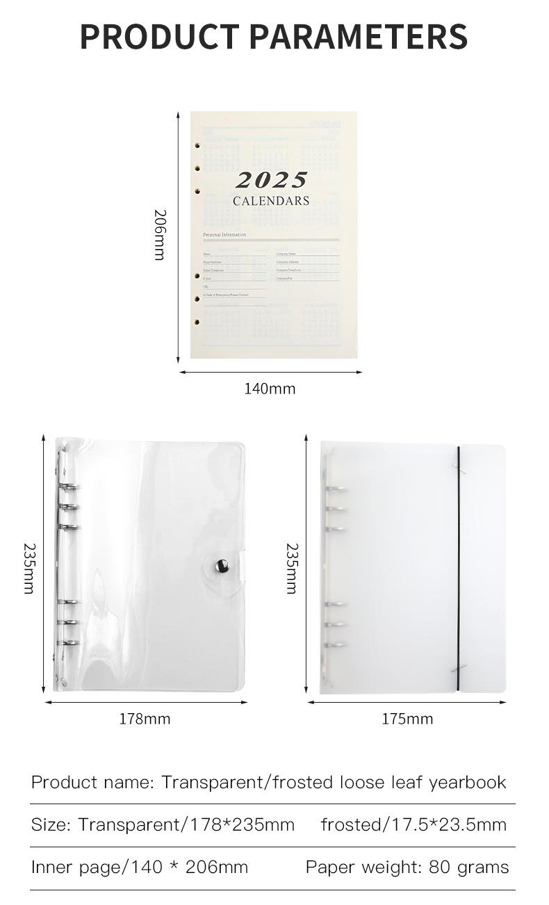Cuaderno de hojas sueltas A5 con diseño transfronterizo 2025, en inglés, con estuche de PP esmerilado, cuaderno diario, cuaderno de hojas sueltas de PVC transparente.