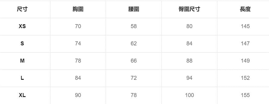 XS, S, M, L, XL