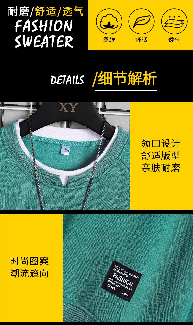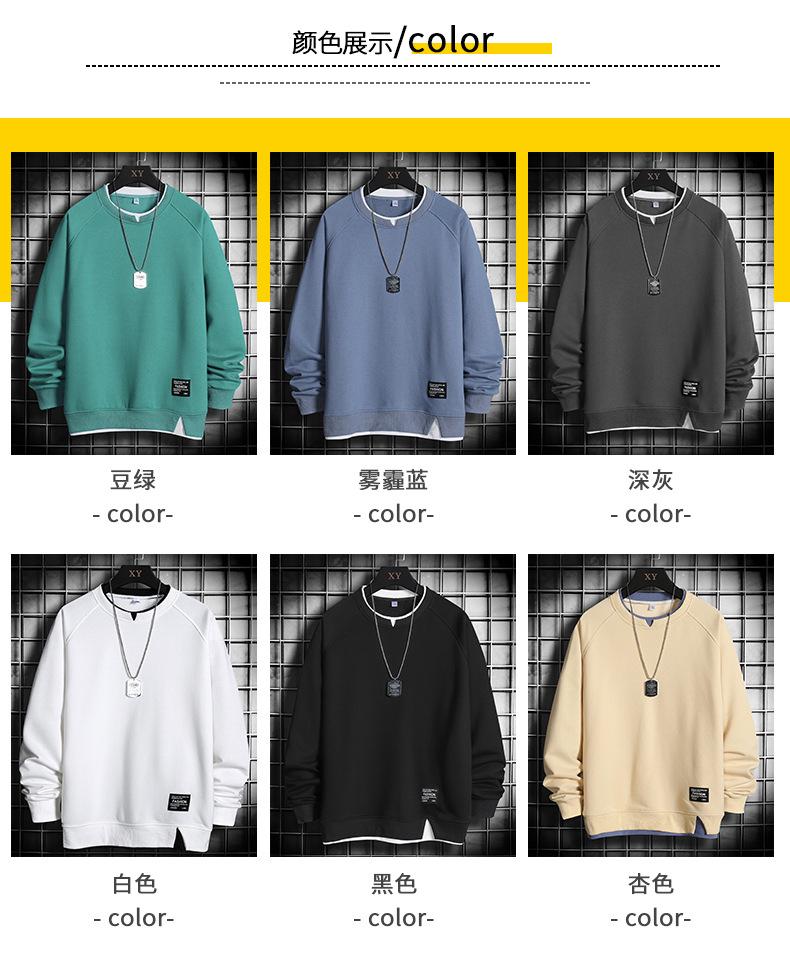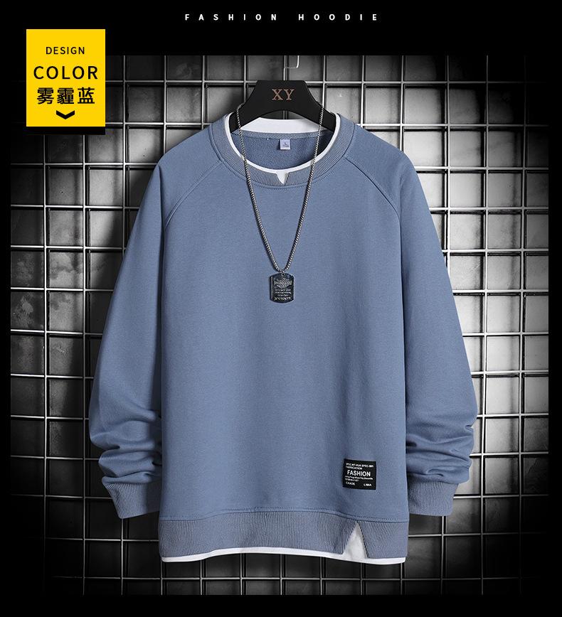 Sudadera de Talla Grande Primavera y Otoño 2021 Nueva Ropa de Moda ins Suelta Color Sólido Cuello Redondo Bordado Top Falso de Dos Piezas