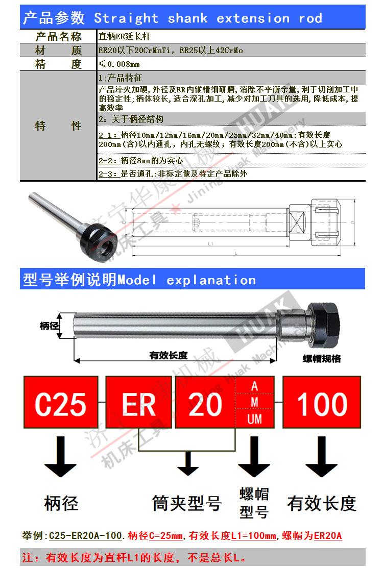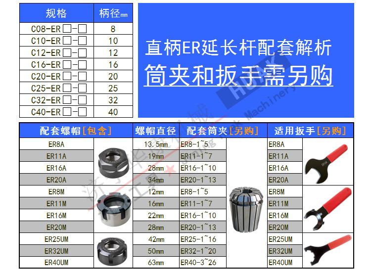 ◇ ExtensiónlargoVara:C12/16/20/25/32/40-ERBiela,B-ERSerie, varillas de extensión de pequeño diámetro y alta precisión.
