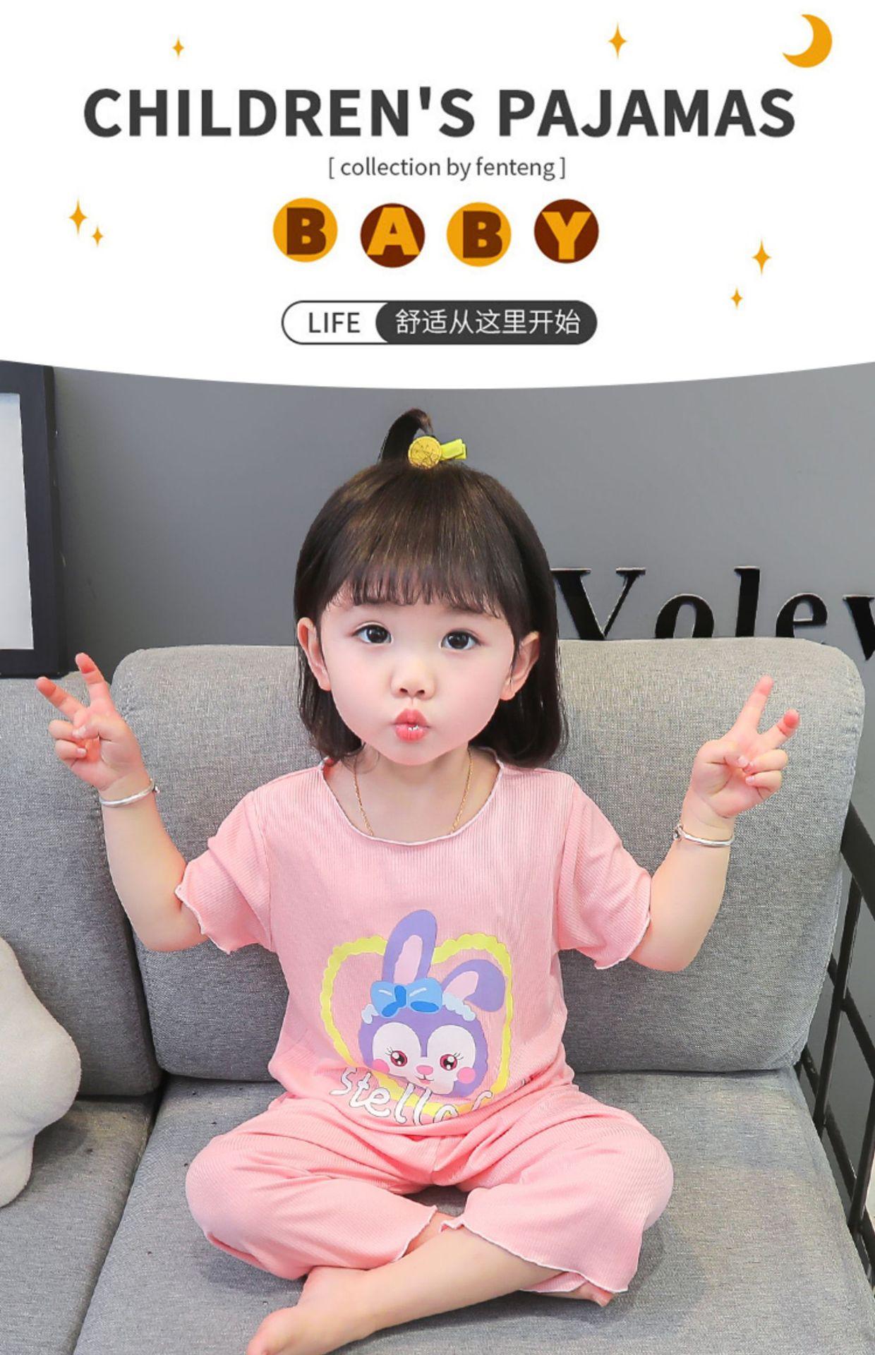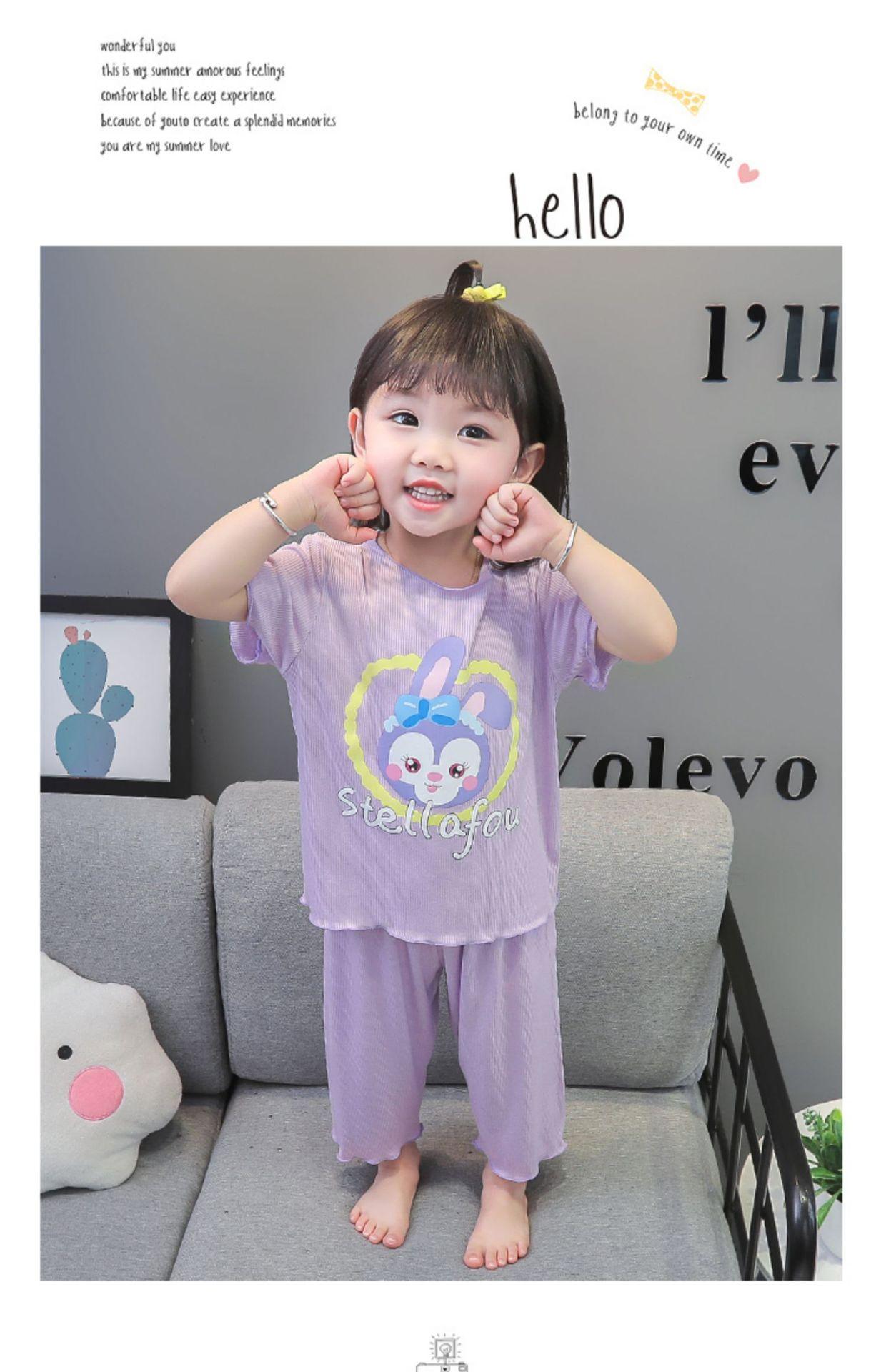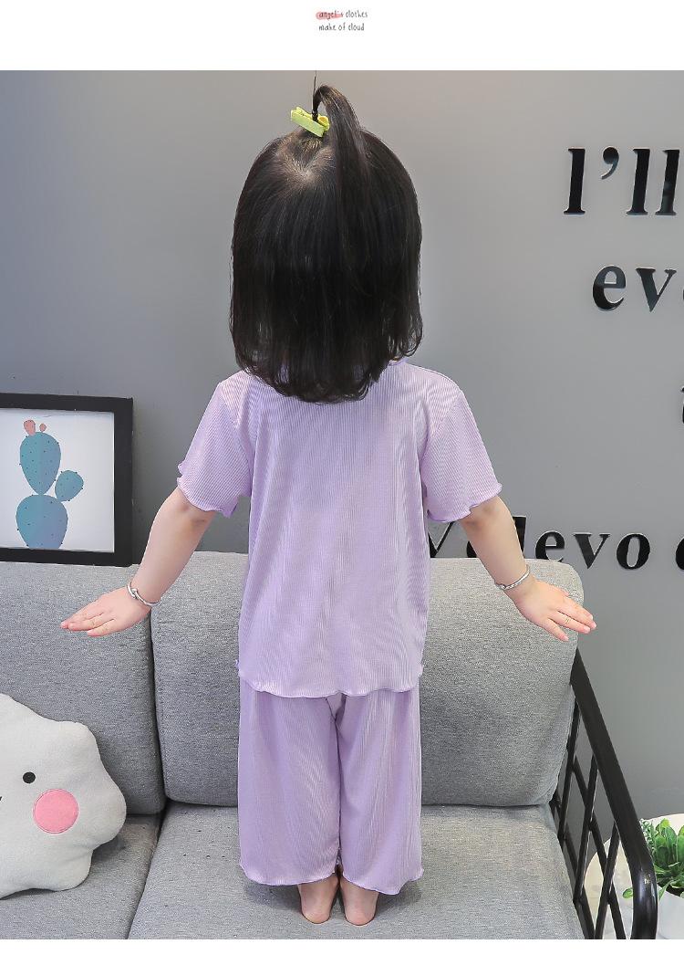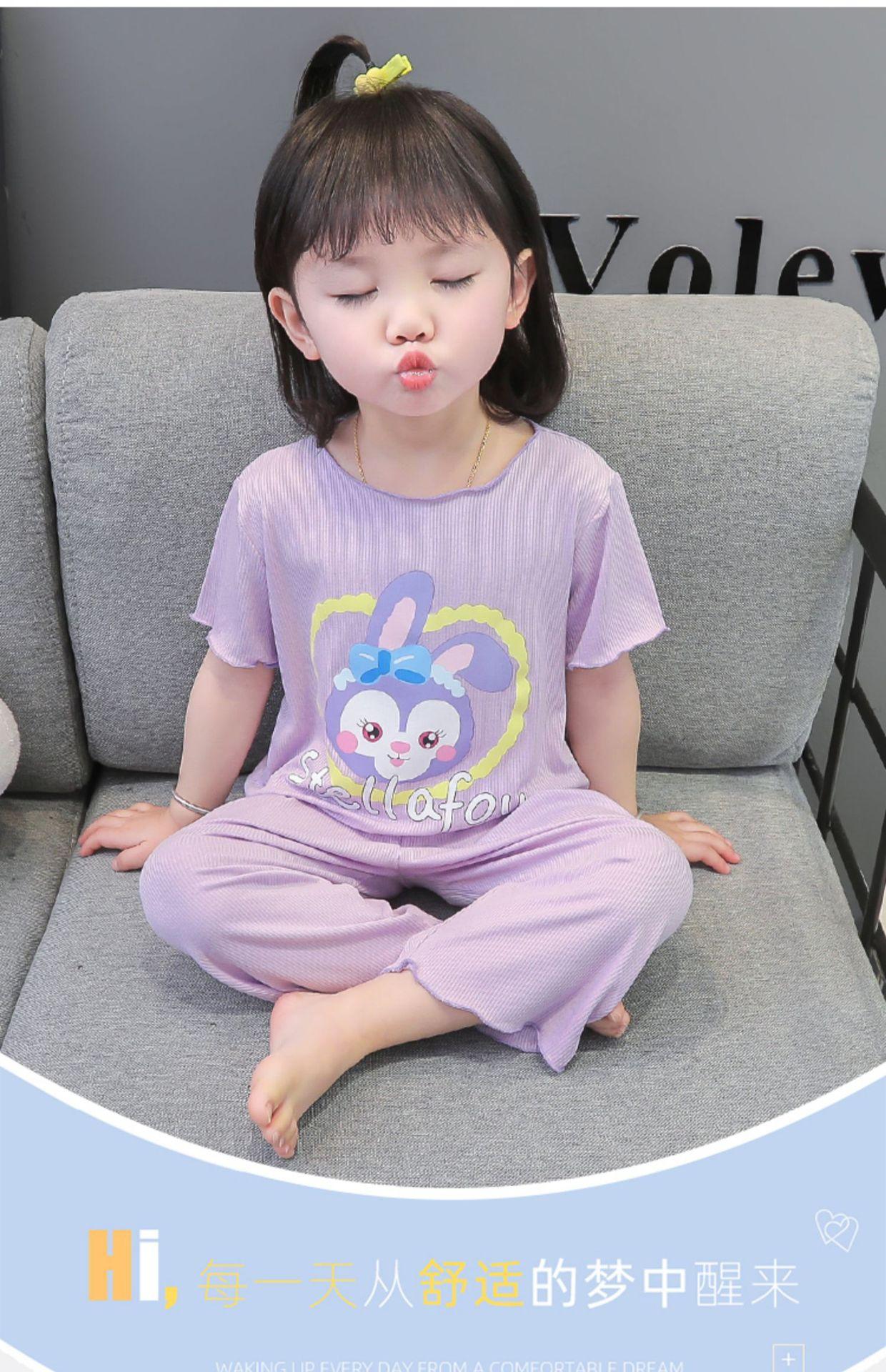 Verano Nuevo Seda de Hielo Delgada Transpirable Ropa de Casa para Niñas Pijama Conjunto Cousy Star Dailou Conjunto de Dos Piezas para Niños