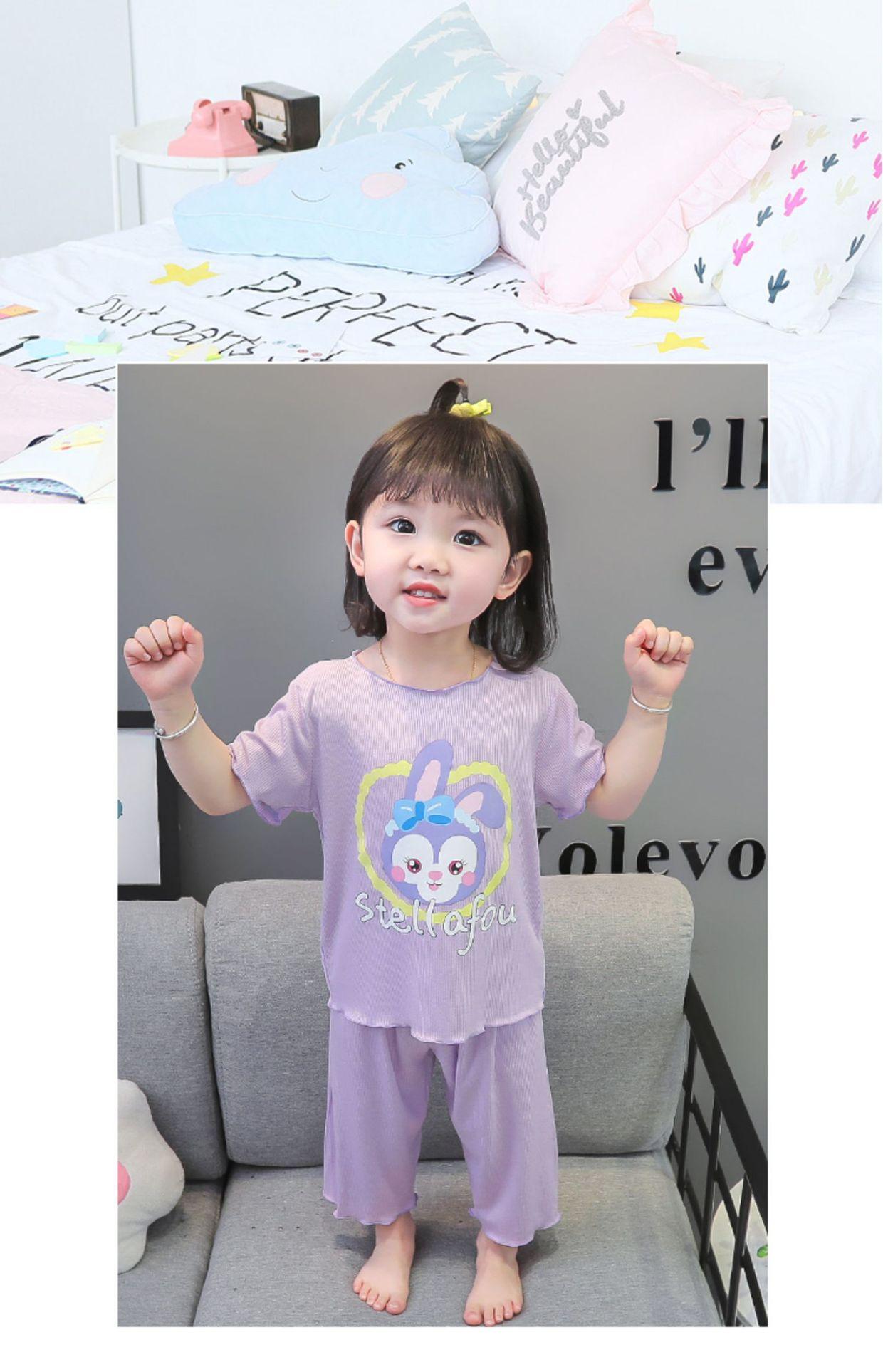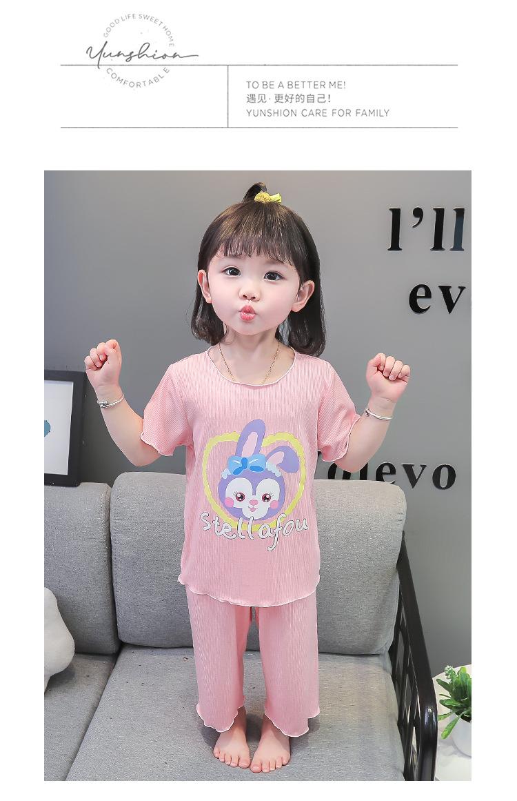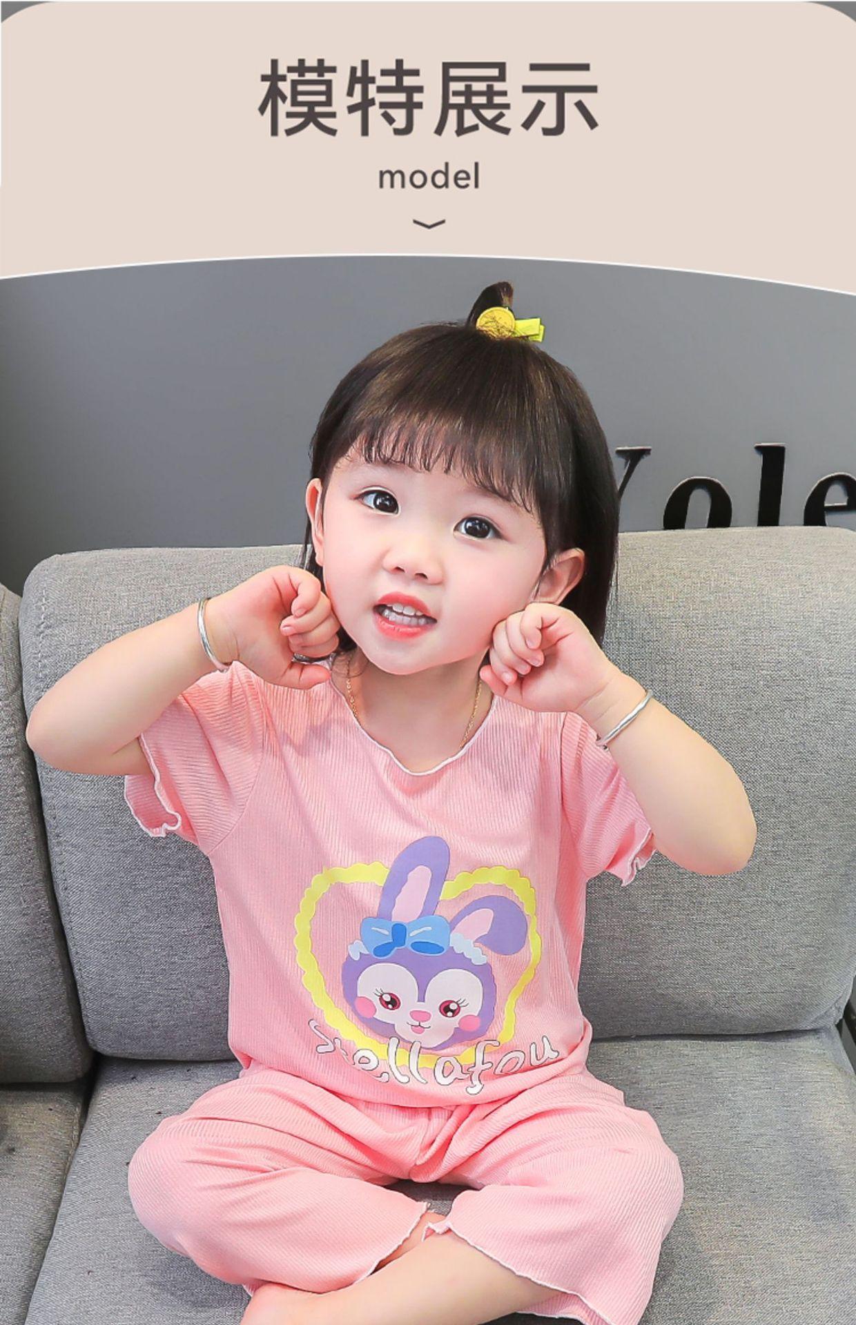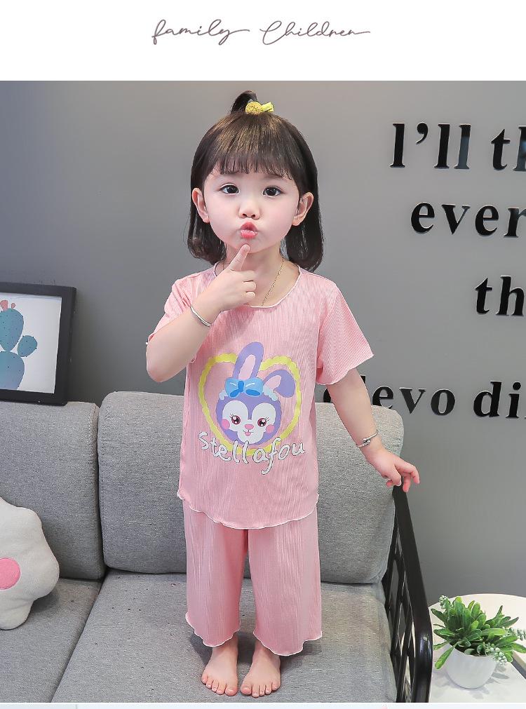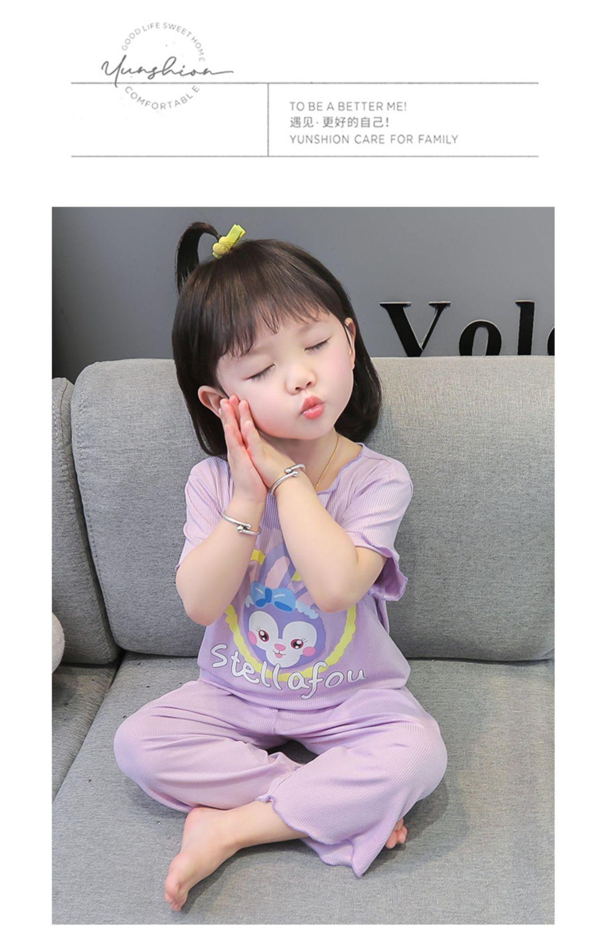 Verano Nuevo Seda de Hielo Delgada Transpirable Ropa de Casa para Niñas Pijama Conjunto Cousy Star Dailou Conjunto de Dos Piezas para Niños