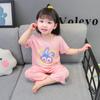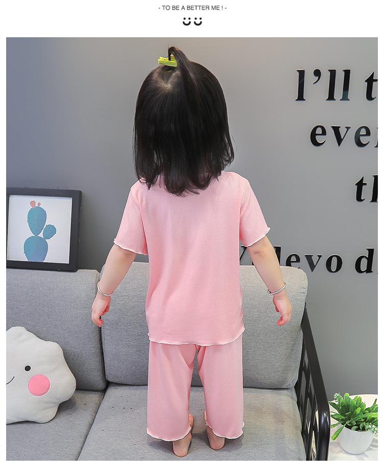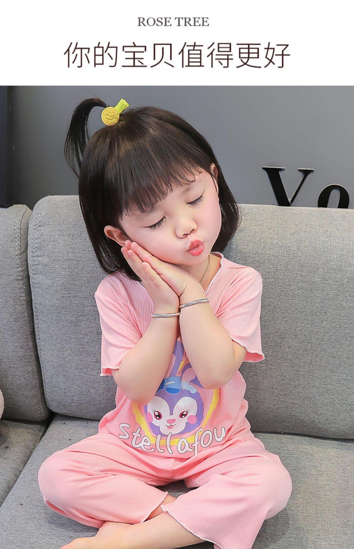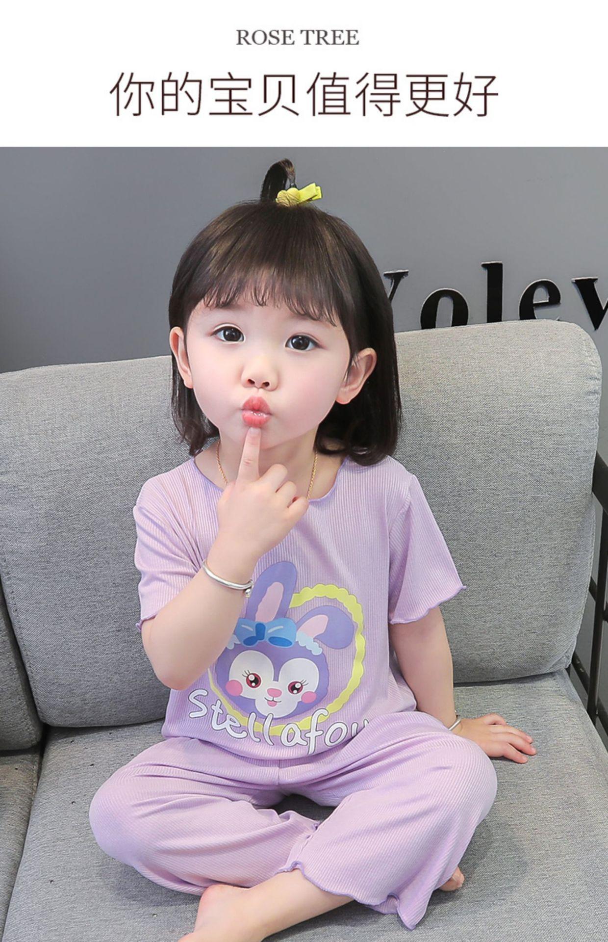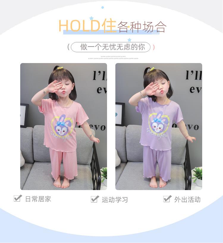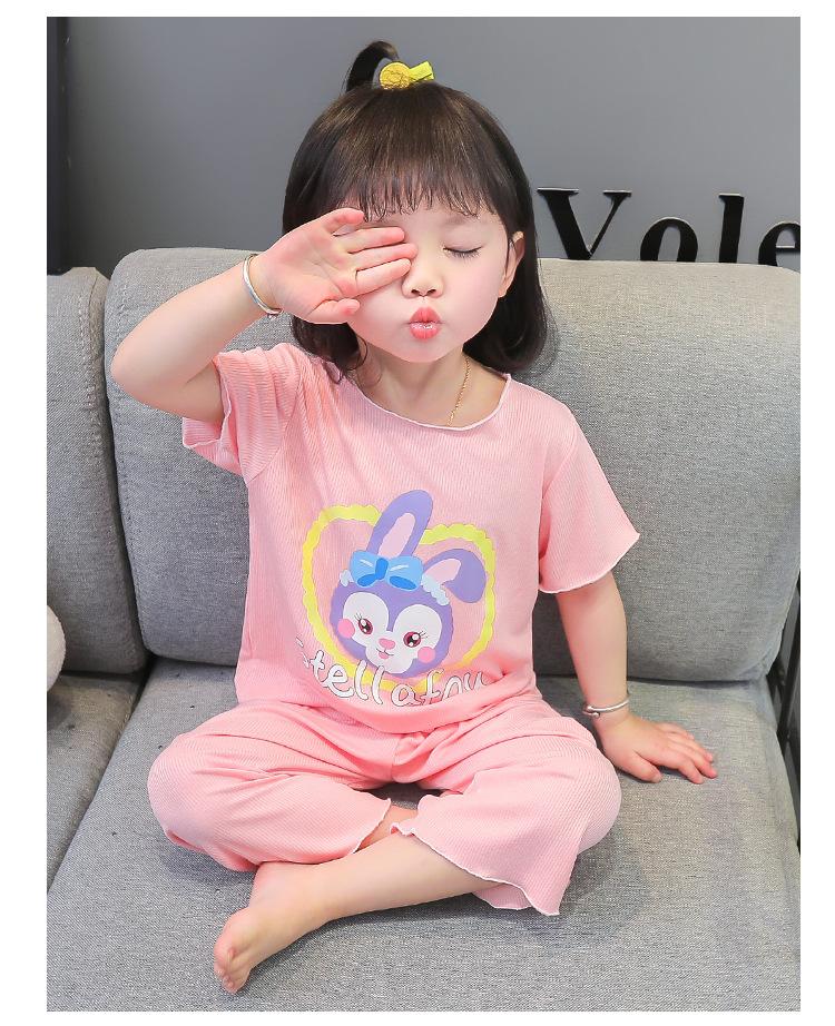 Verano Nuevo Seda de Hielo Delgada Transpirable Ropa de Casa para Niñas Pijama Conjunto Cousy Star Dailou Conjunto de Dos Piezas para Niños