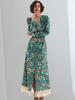 Comercio exterior transfronterizo para mujer 2024 nuevo estilo festivo temperamento diseño sentido cuello en V estampado manga larga vestido de cintura