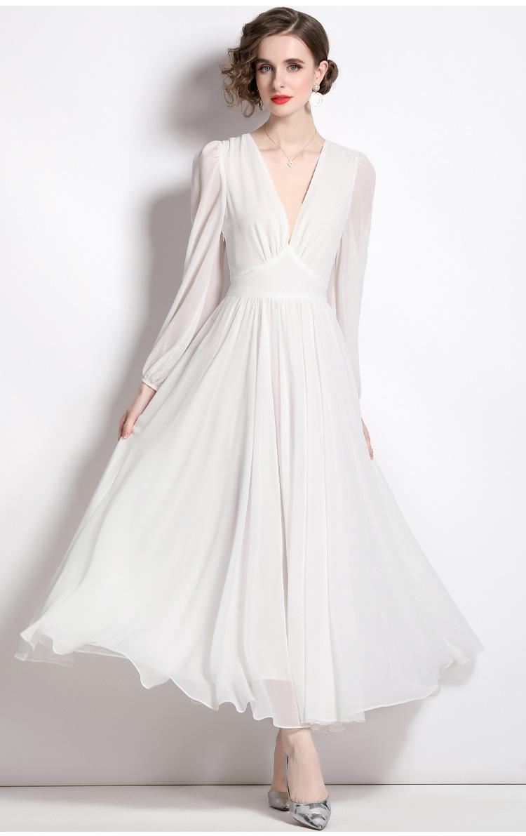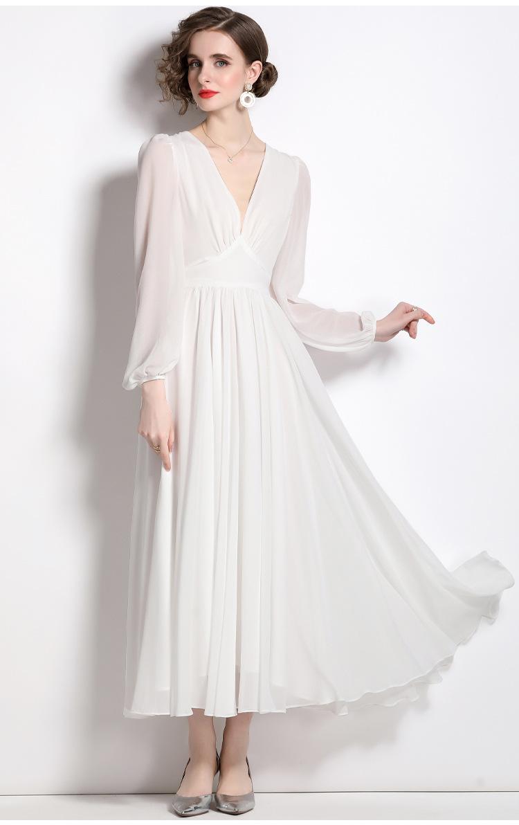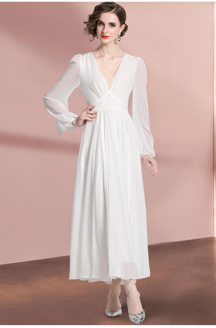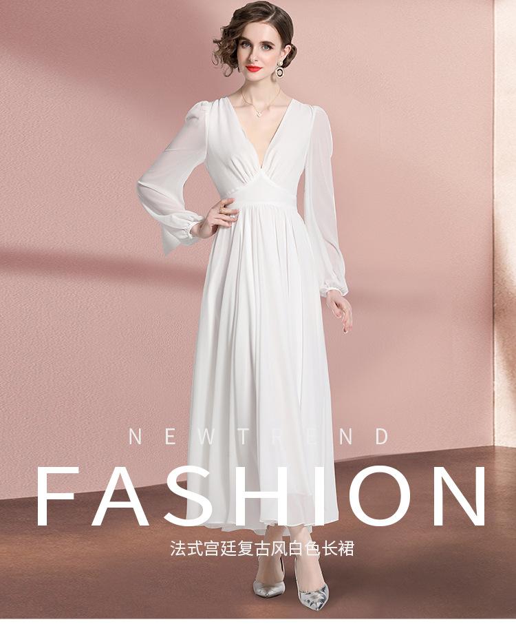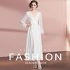 Vestido blanco ajustado retro de estilo francés con escote en V, vestido largo, elegante, dulce y sexy, vestido de hada.