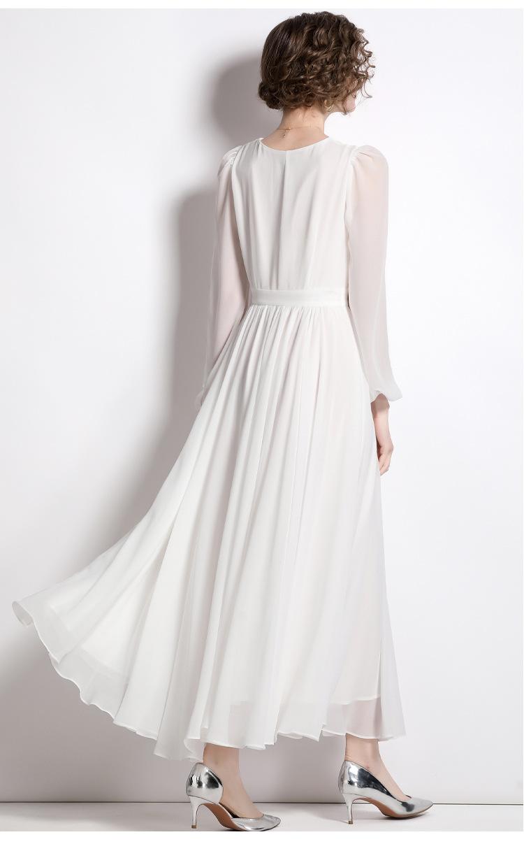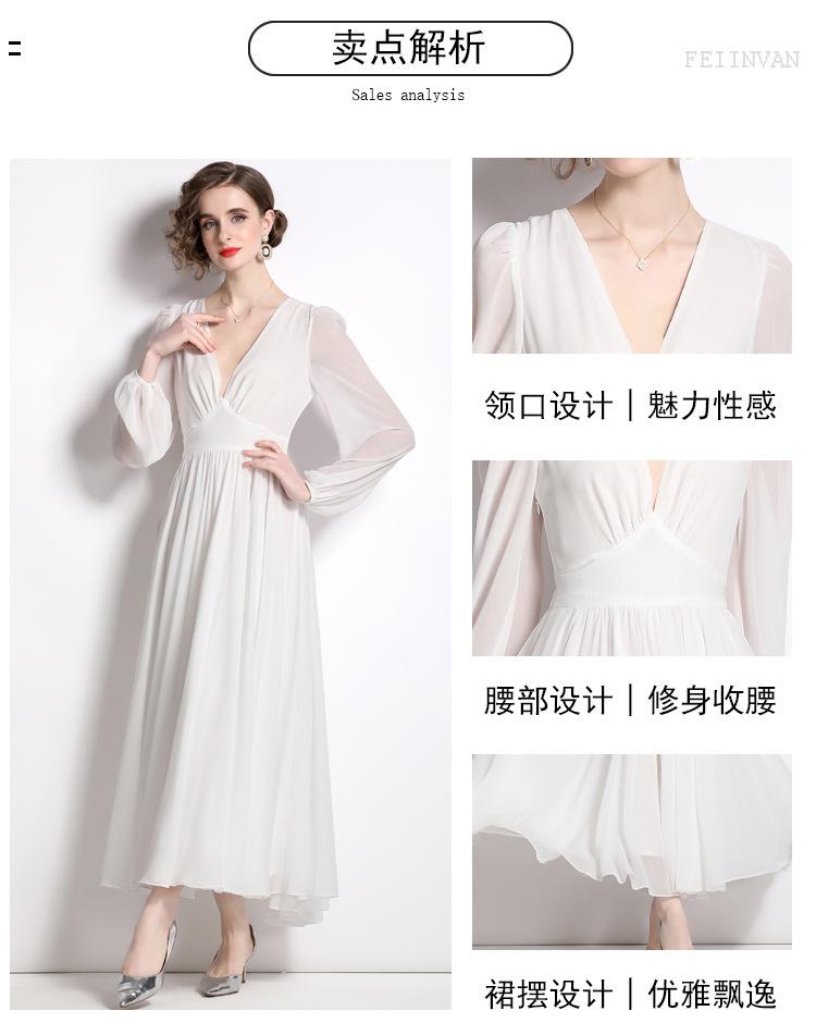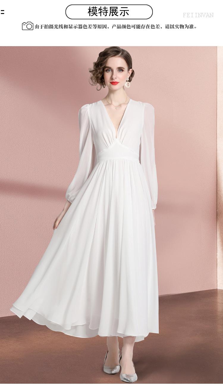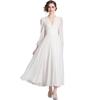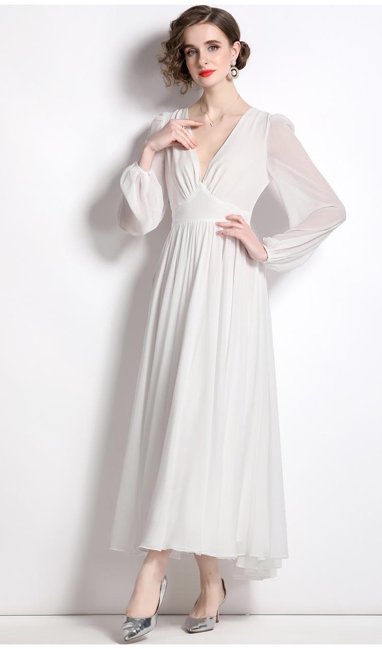 Vestido blanco ajustado retro de estilo francés con escote en V, vestido largo, elegante, dulce y sexy, vestido de hada.