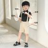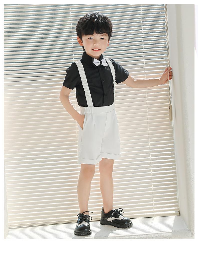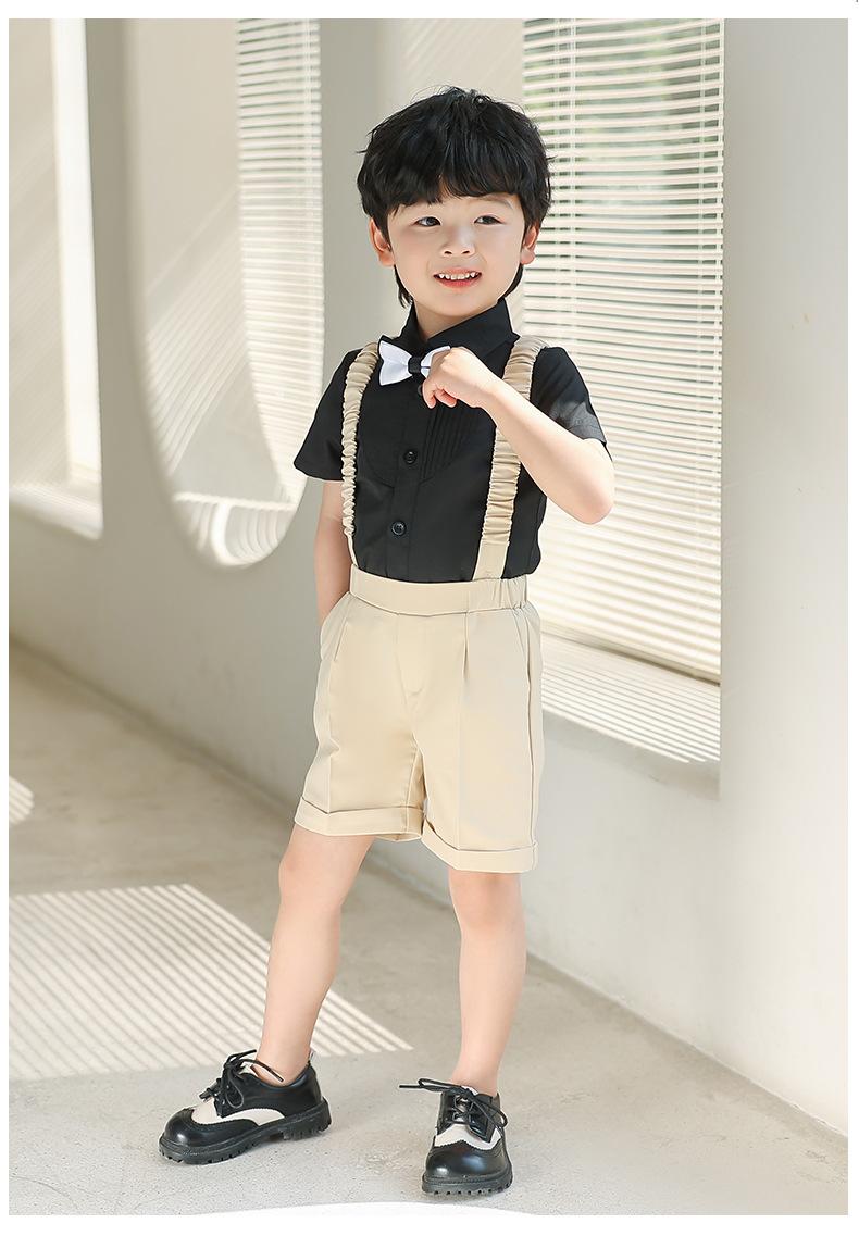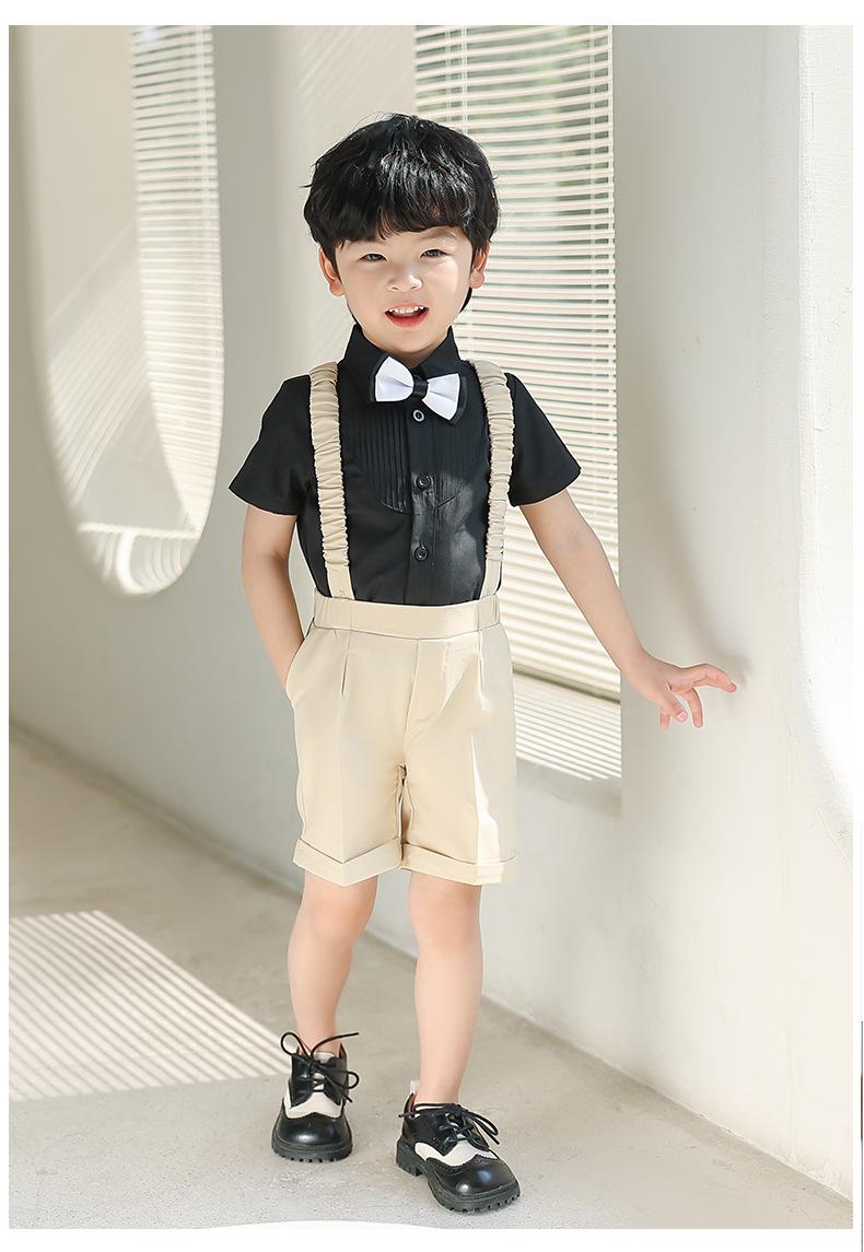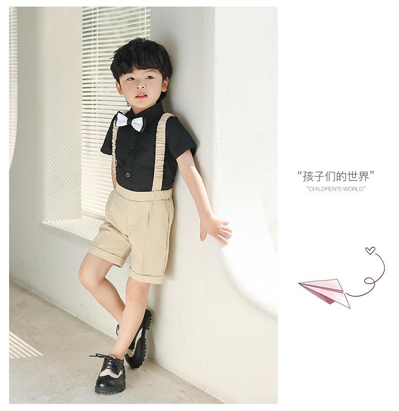 Khaki (shorts + new black pleated short sleeve shirt + elastic strap + white black bow tie)