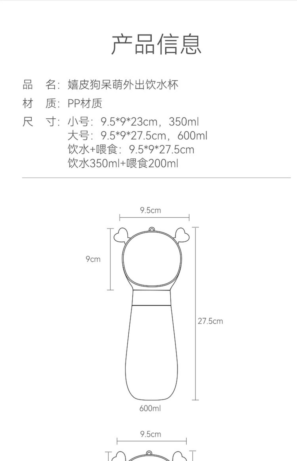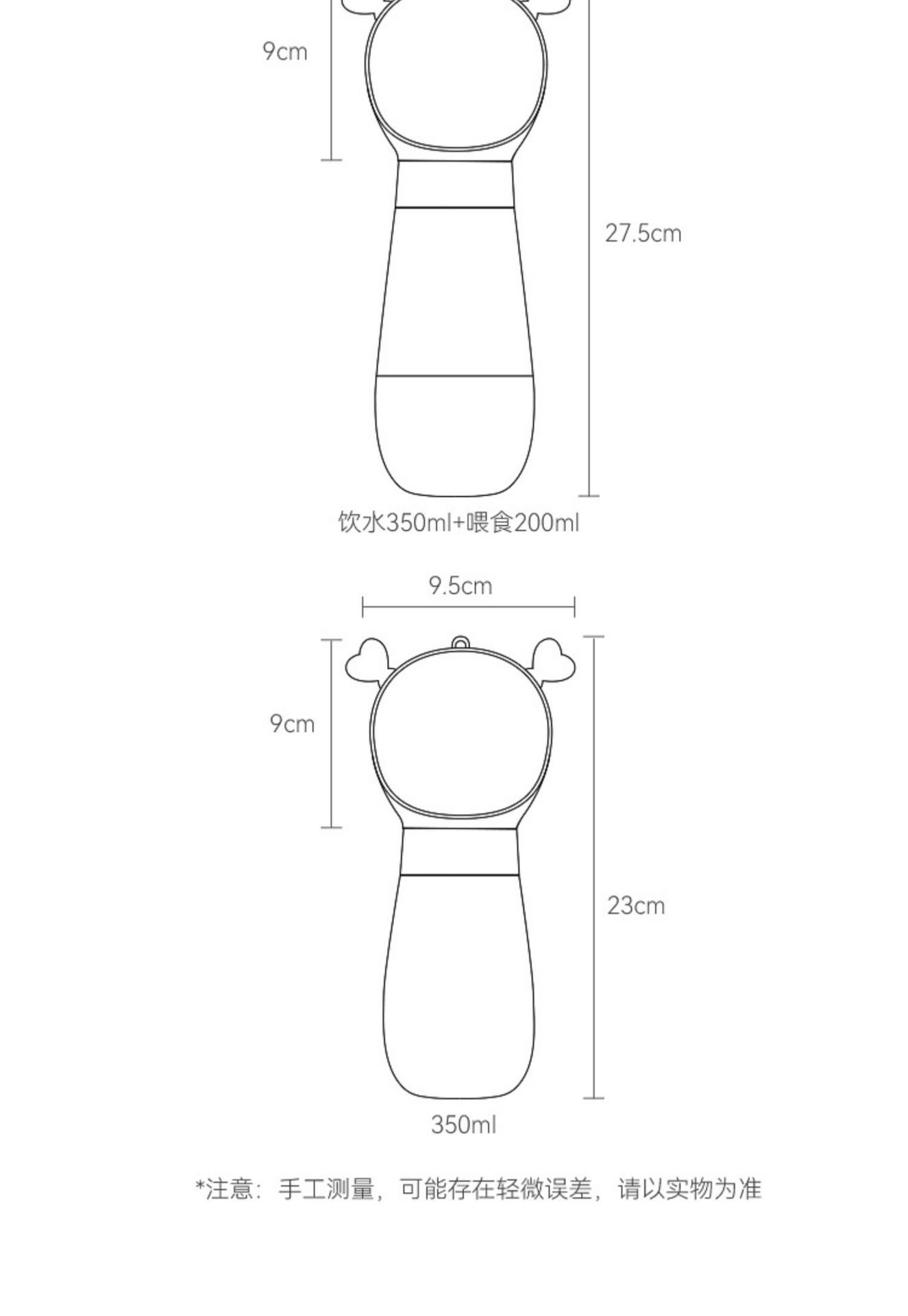 Capacidad: tamaño pequeño 350ml, tamaño grande 600ml, agua para beber + alimentación (350ml agua para beber + 200ml alimentación)