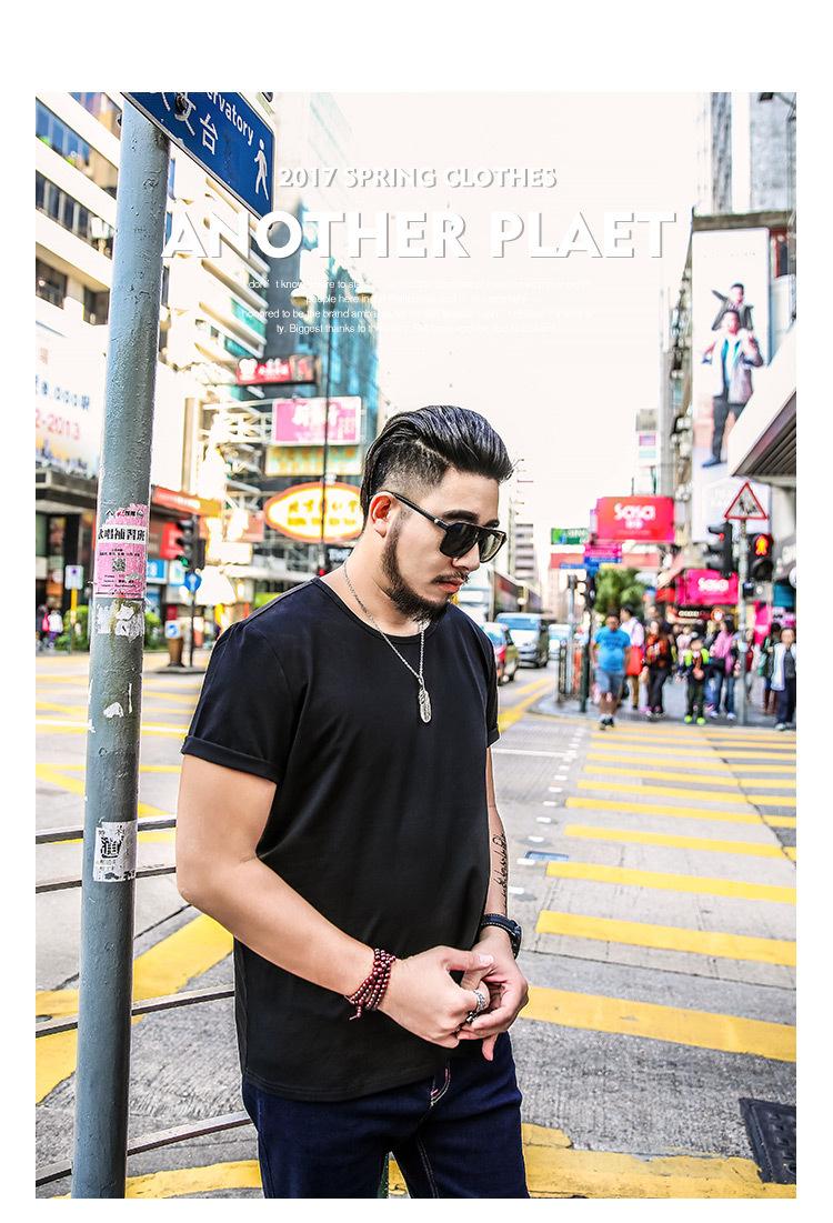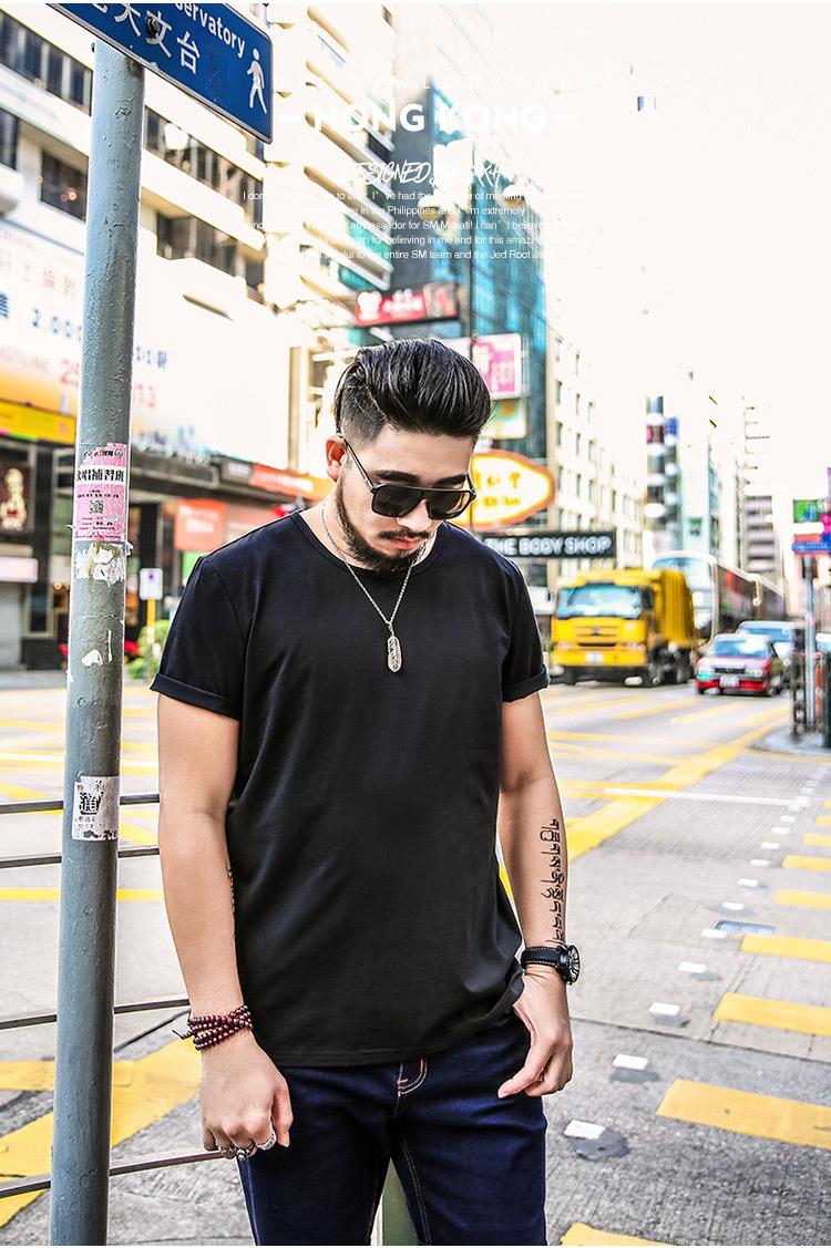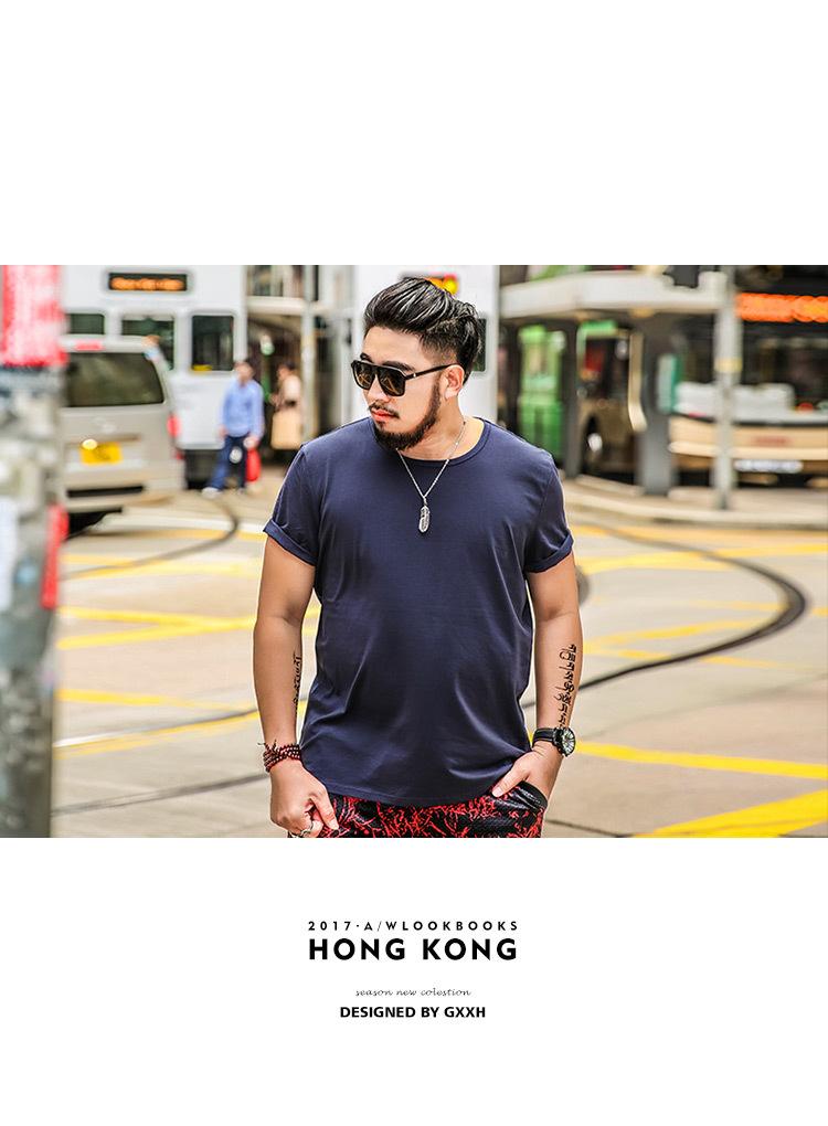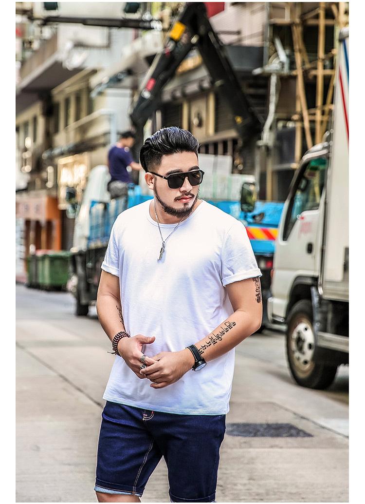 Camiseta de manga corta para hombre de talla grande, holgada, con cuello redondo, color liso, moderna, de media manga para hombre de talla grande
