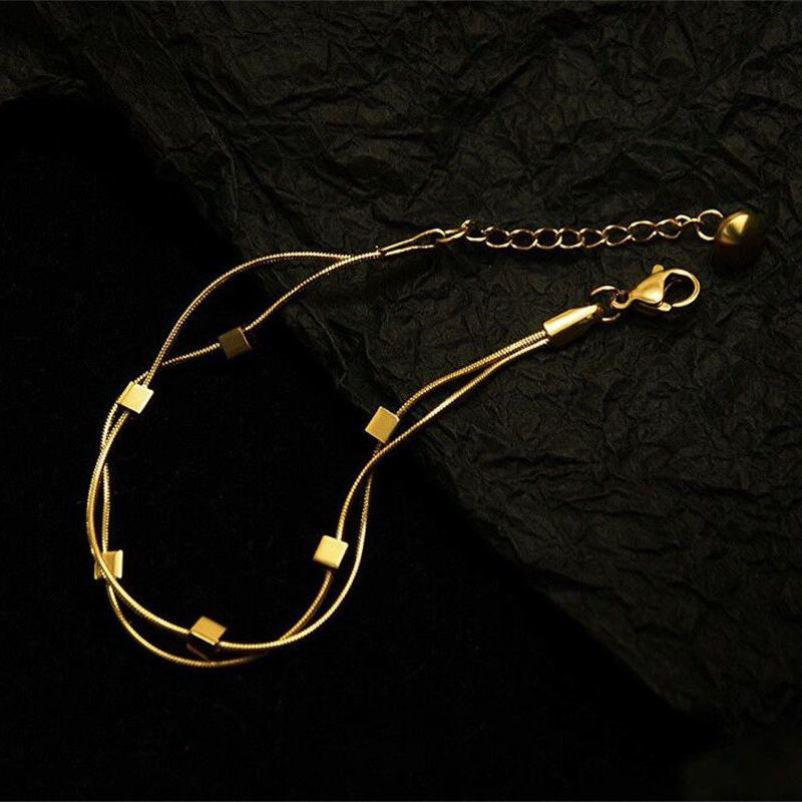 Pulsera Silin Corea del Sur lujo ligero avanzada para mujer simple acero de titanio oro 18K cuadrado doble capa diseño cadena hueso de serpiente sentido del diseño