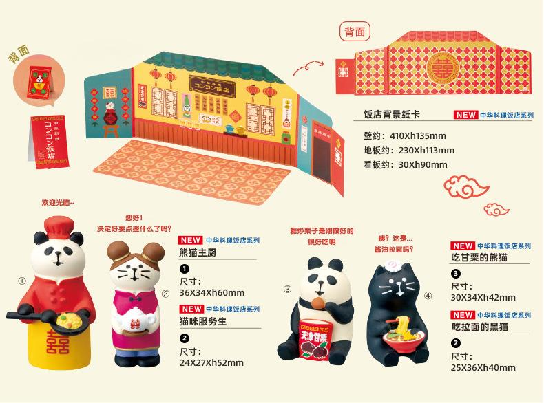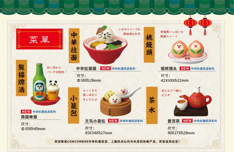 Ball-headed cat (16), Chinese panda chef (14), Munia steamed buns (12), Chinese chair (17), Pu'er tea (64), Ta...