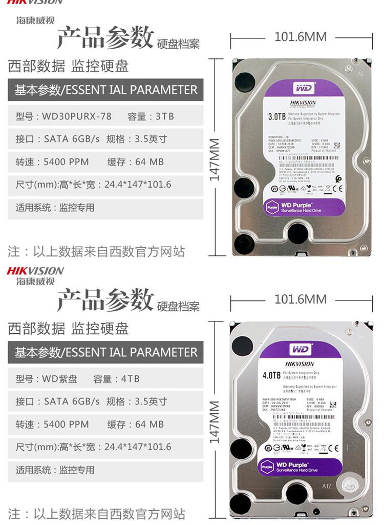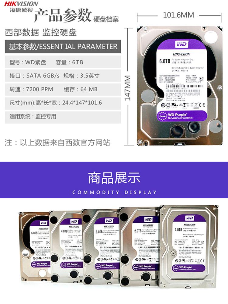 Hikvision Wd/Western Digital Wd60Purx Disco Duro Especial para Vigilancia Western Digital 6t Disco Morado 6Tb