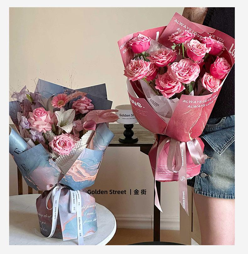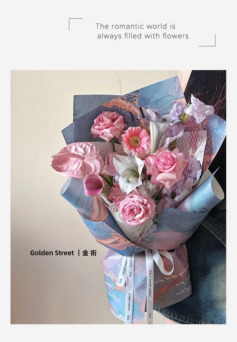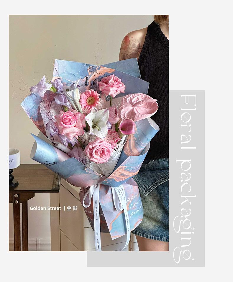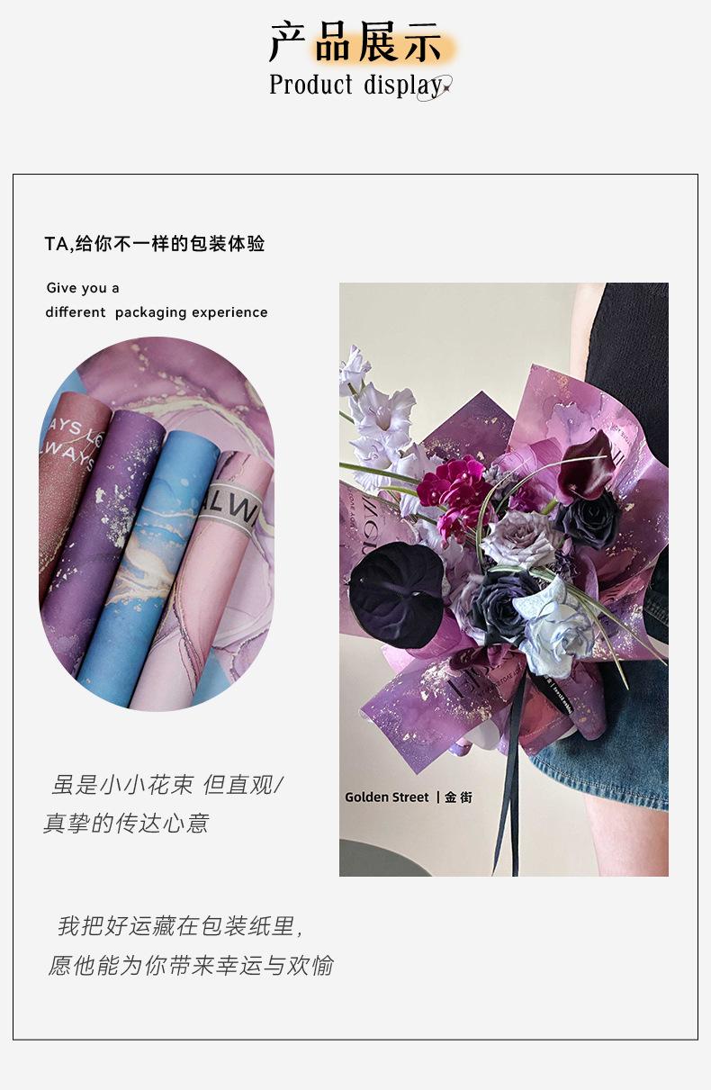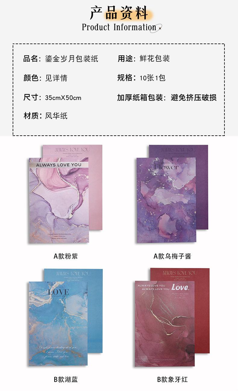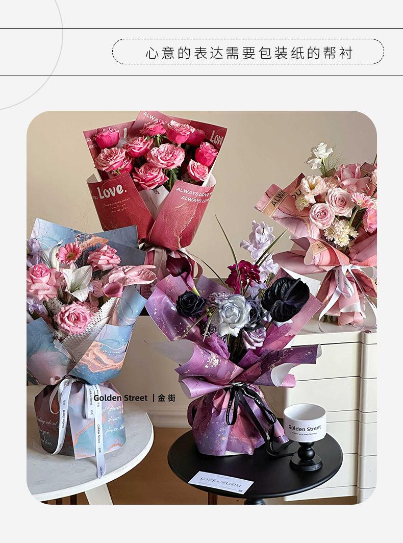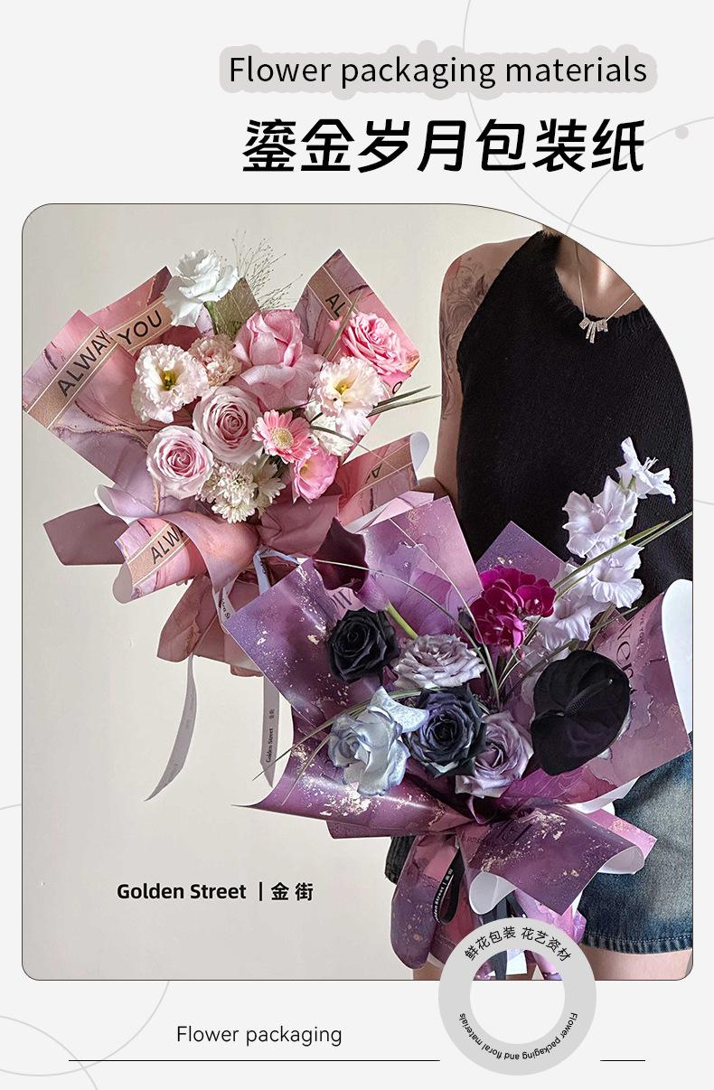 Papel de regalo con diseño de flores y sombras doradas para años dorados, papel de regalo con salsa de ciruela negra, papel de arte Fenghua resistente al agua, material para ramo de flores