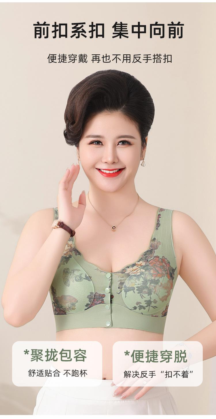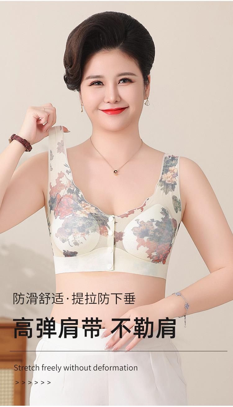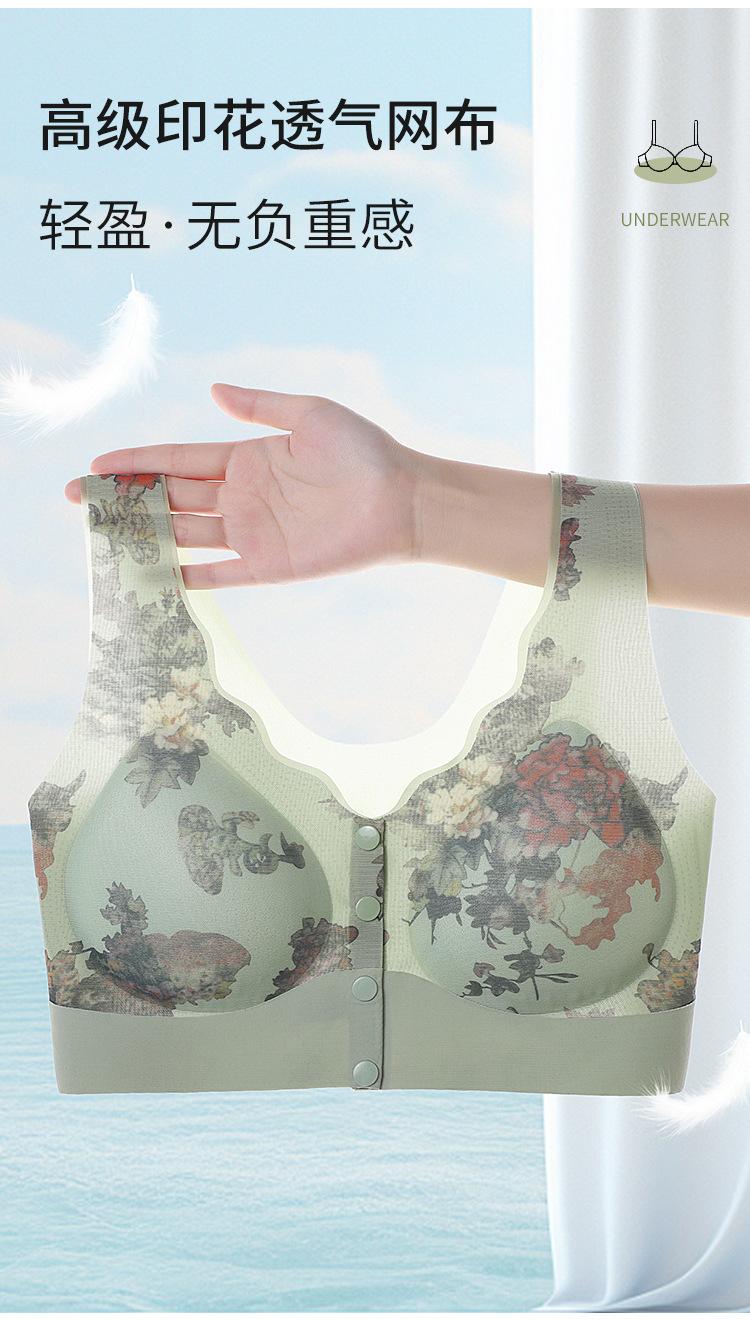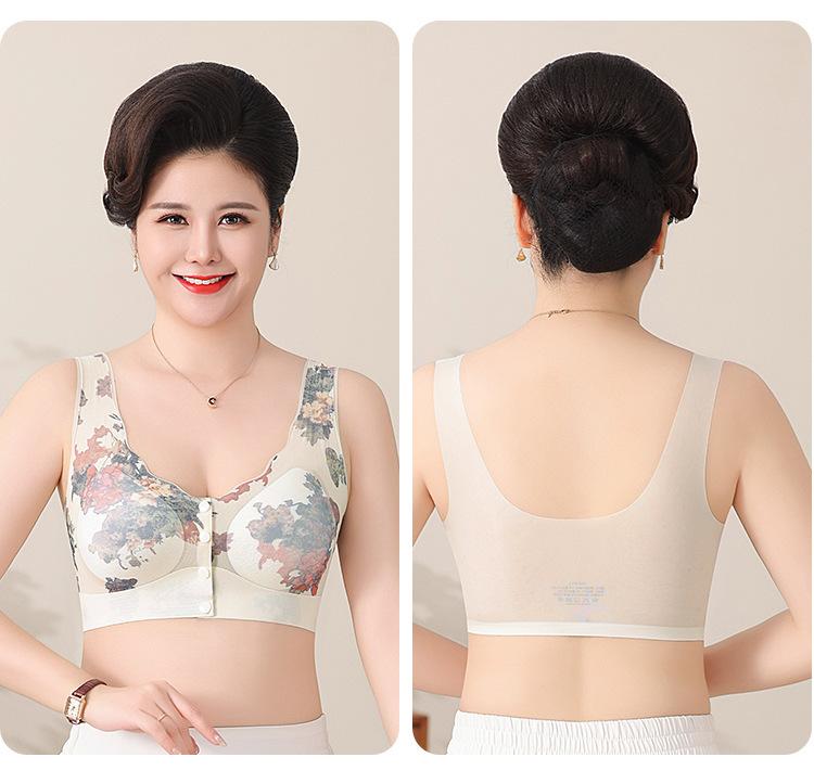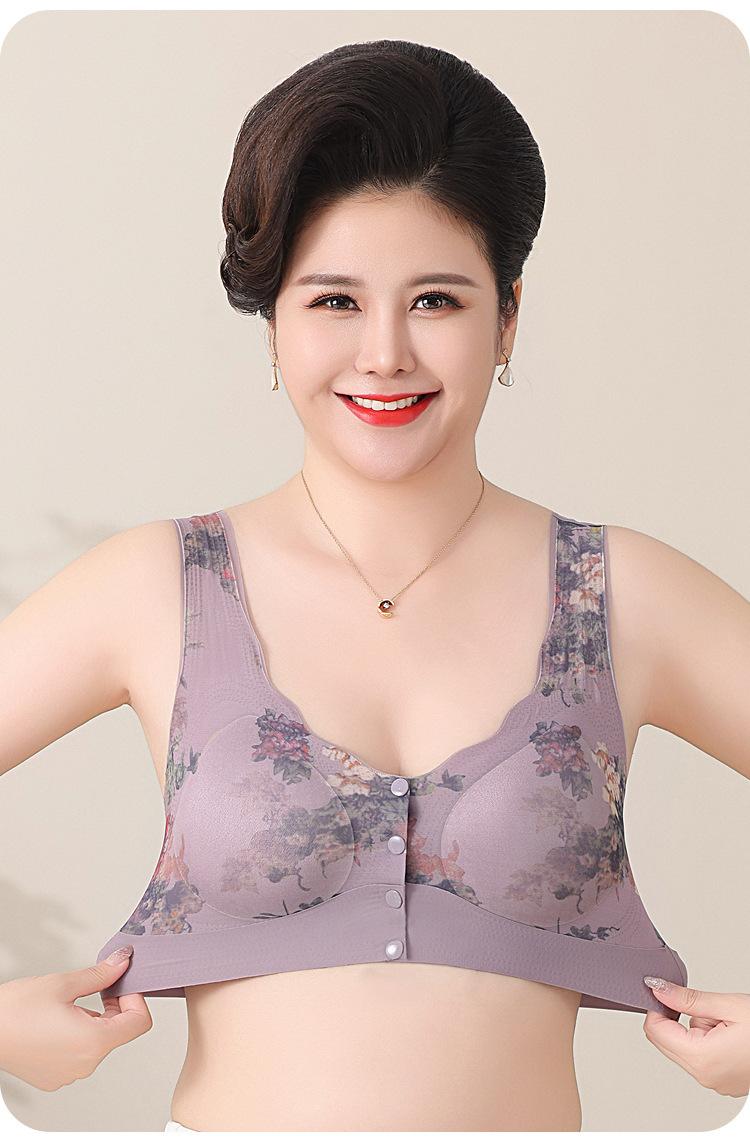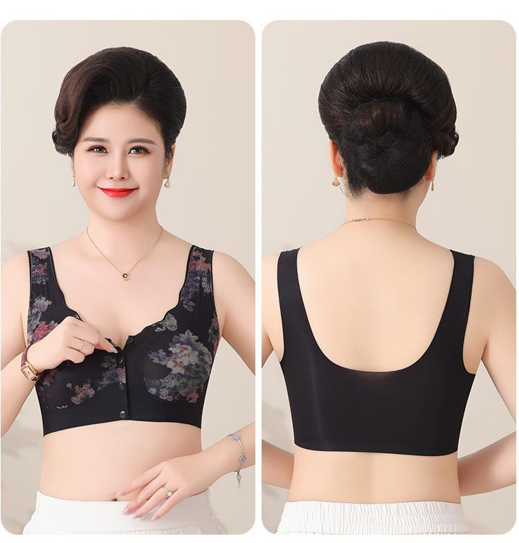 Ropa Interior para Mujeres de Mediana Edad y Adultas Mayores con Botón de Apertura Frontal Talla Grande Push-up Anticaída Sostén Sin Marcas Ropa Interior Estampada Top para Mujeres Cómodo