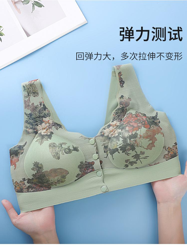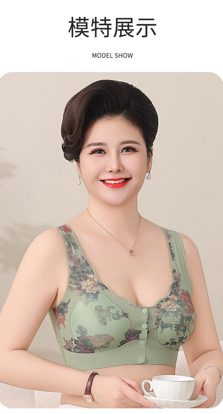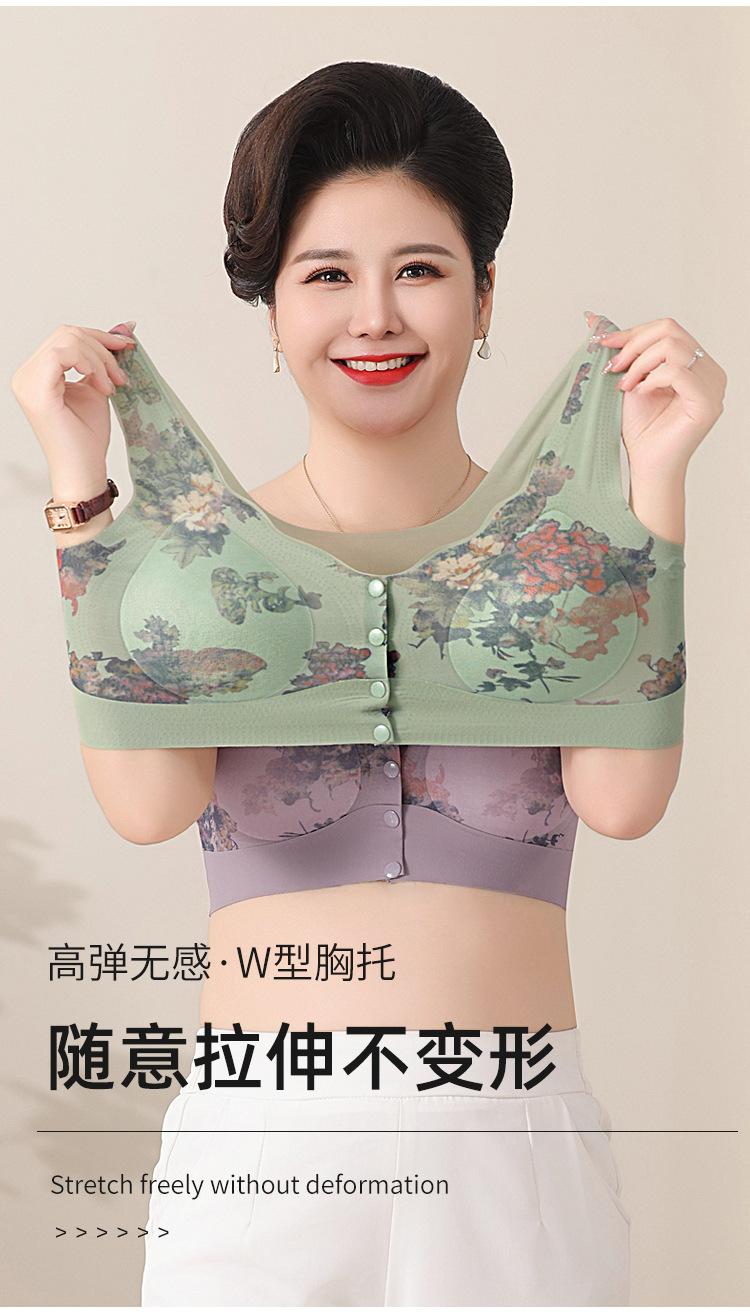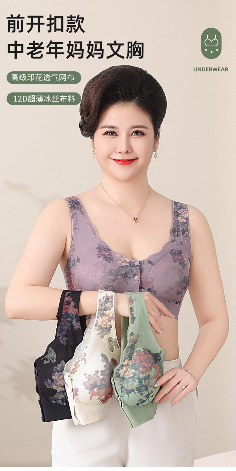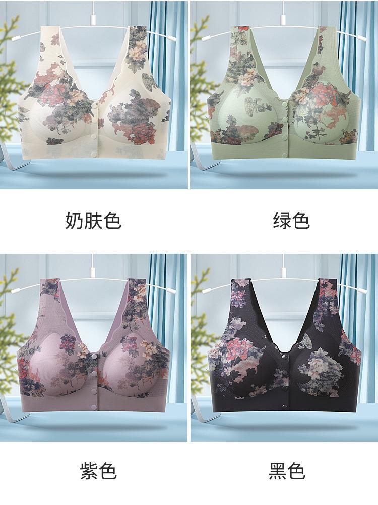 Ropa Interior para Mujeres de Mediana Edad y Adultas Mayores con Botón de Apertura Frontal Talla Grande Push-up Anticaída Sostén Sin Marcas Ropa Interior Estampada Top para Mujeres Cómodo