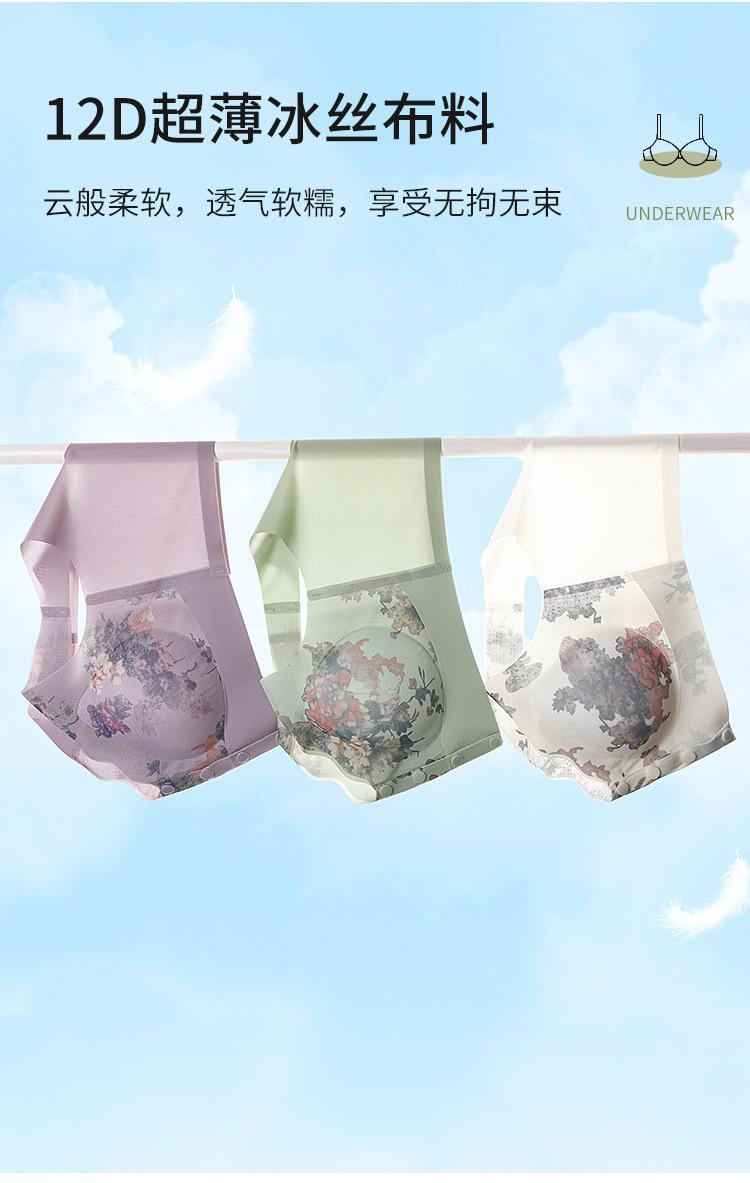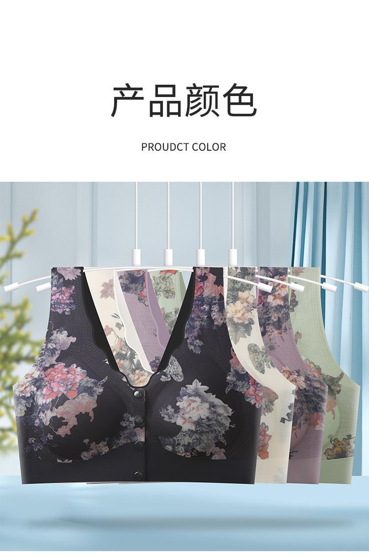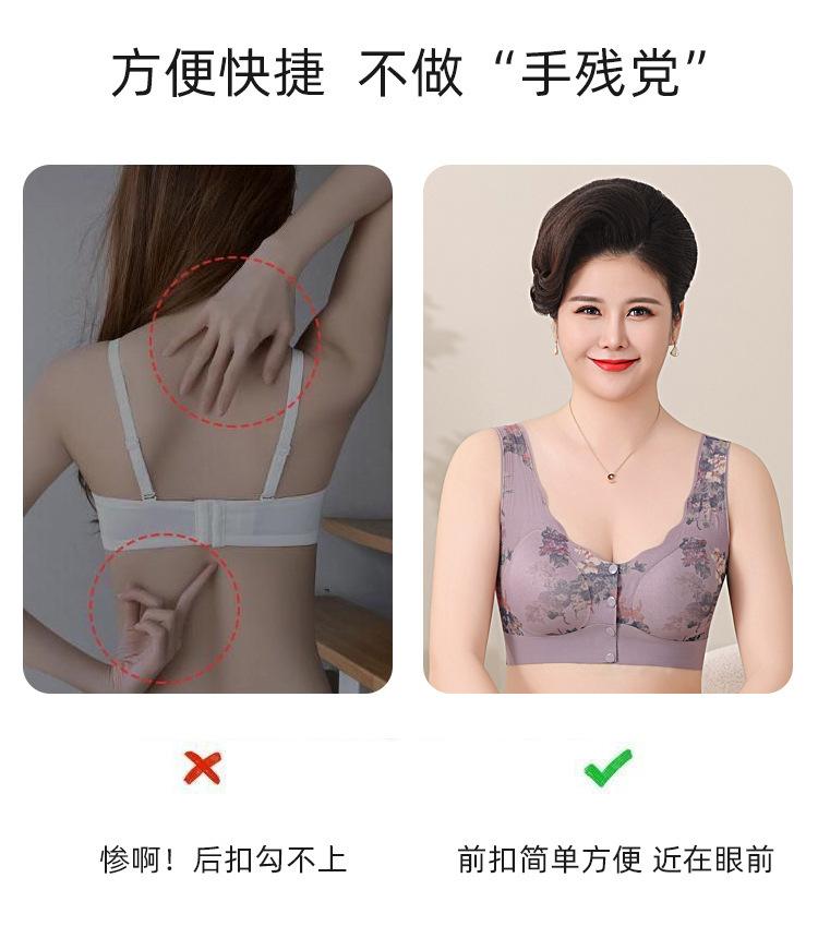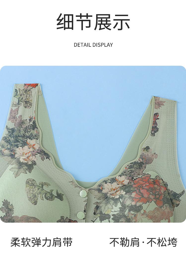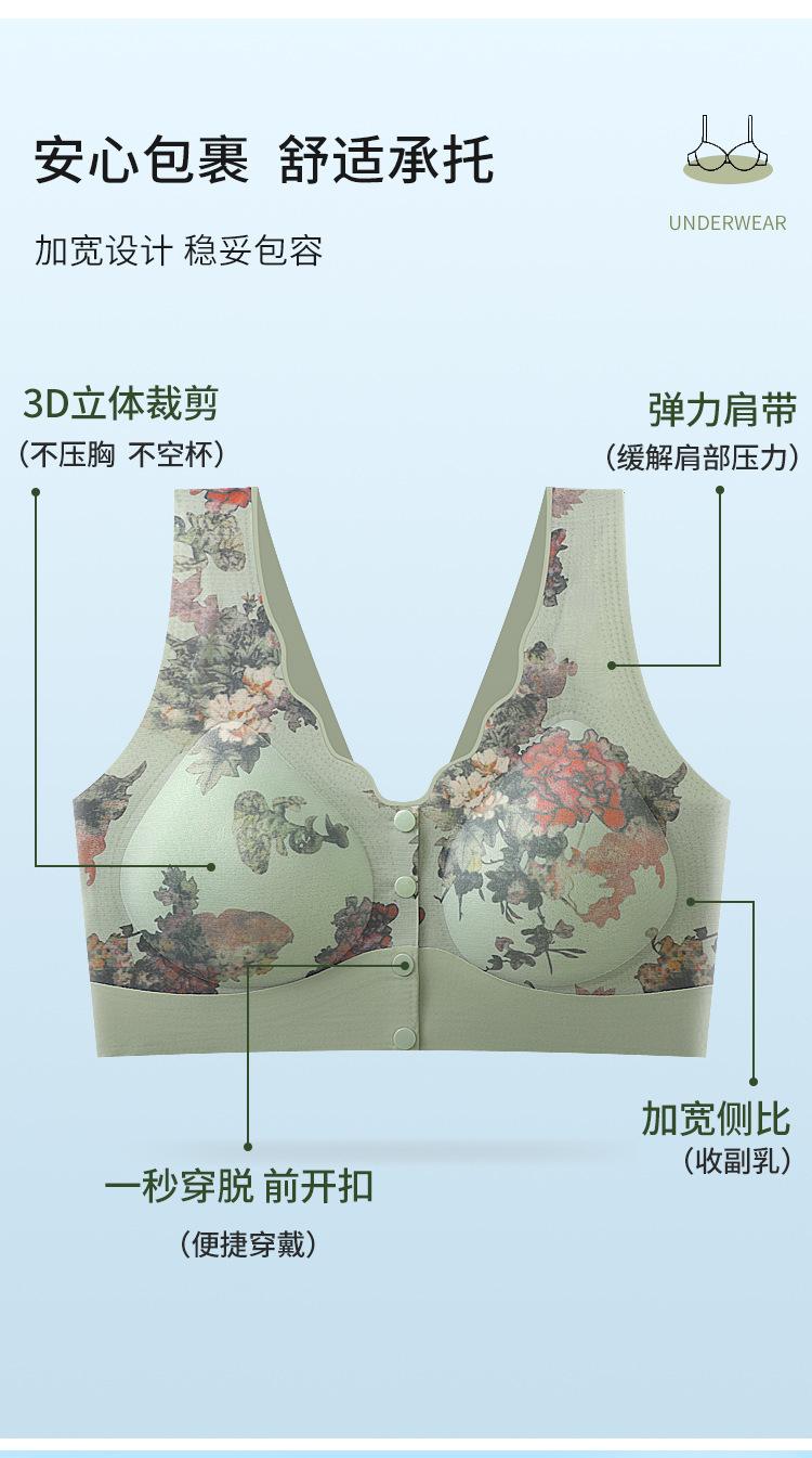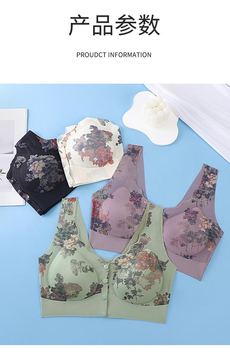 Ropa Interior para Mujeres de Mediana Edad y Adultas Mayores con Botón de Apertura Frontal Talla Grande Push-up Anticaída Sostén Sin Marcas Ropa Interior Estampada Top para Mujeres Cómodo
