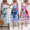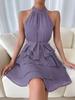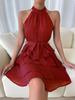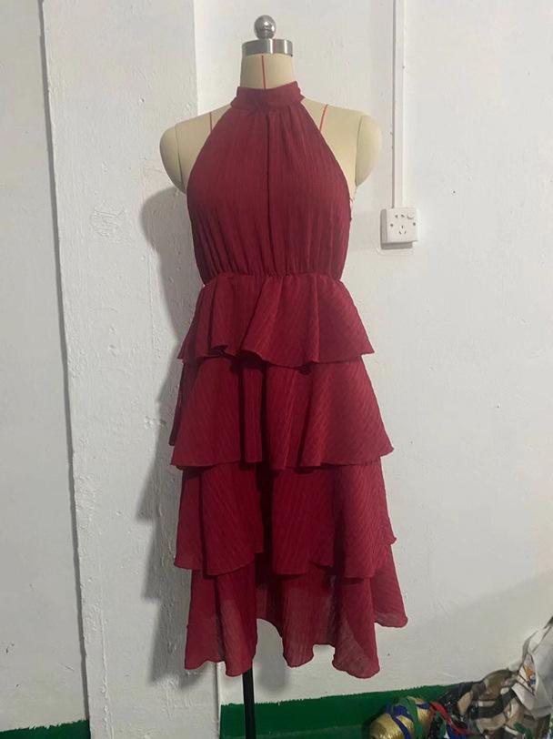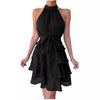 Comercio Exterior Transfronterizo Ropa Europea y Americana Amazon 2024 Verano Vestido de Encaje con Cordones Halter de Empalme Sin Mangas con Volantes