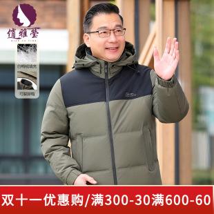 Chaqueta de plumón de pato blanca de talla grande para hombre de mediana edad, nueva, informal, de negocios, de invierno, con capucha desmontable, chaqueta de plumón de papá