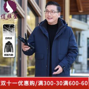 Chaqueta de plumón de pato blanco con capucha para hombre de mediana edad de 50 años, chaqueta de plumón de abuelo con forro desmontable, abrigo de papá