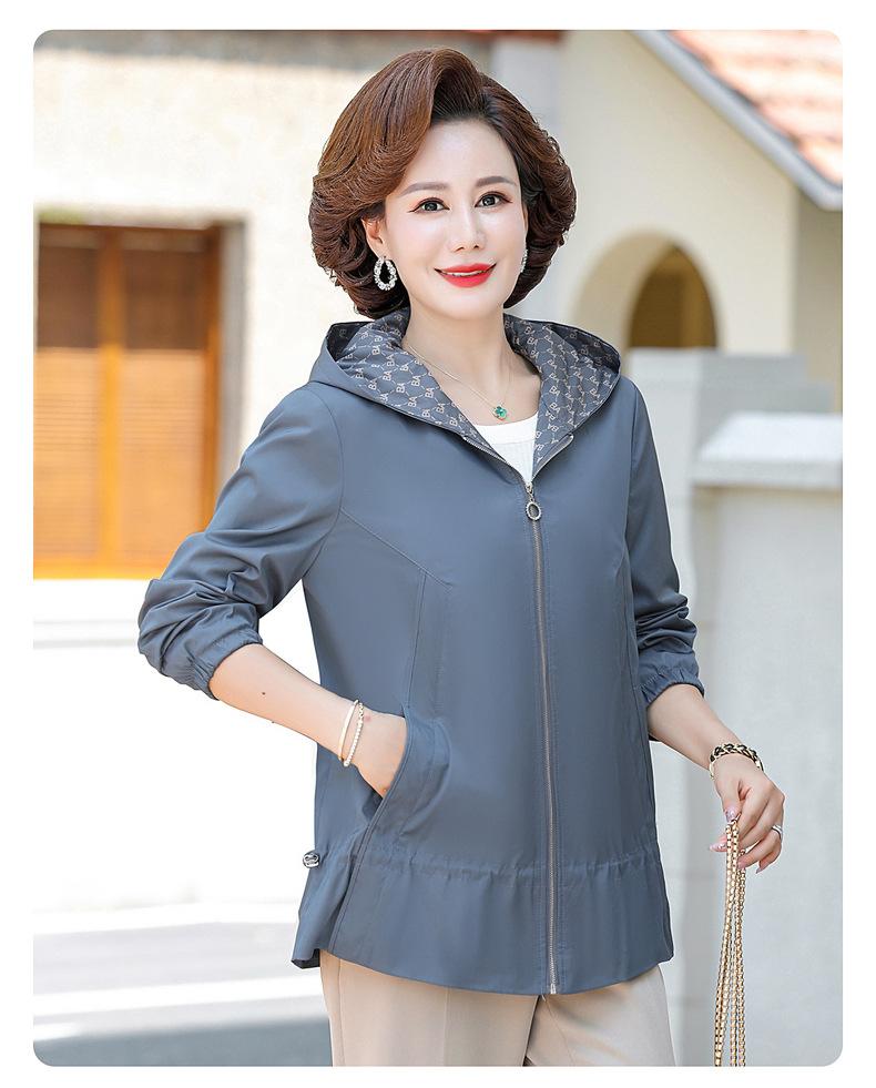 Chaqueta Nueva de Otoño 2024 Ropa de Mamá Chaqueta Casual con Capucha Color Sólido Talla Grande Holgada Ropa para Mujeres de Mediana Edad y Ancianas